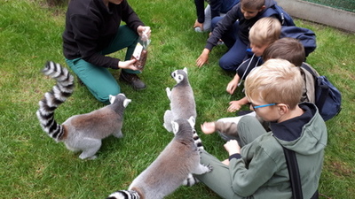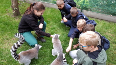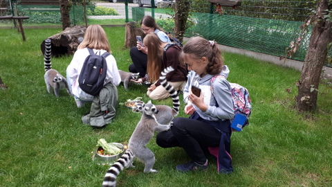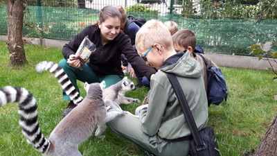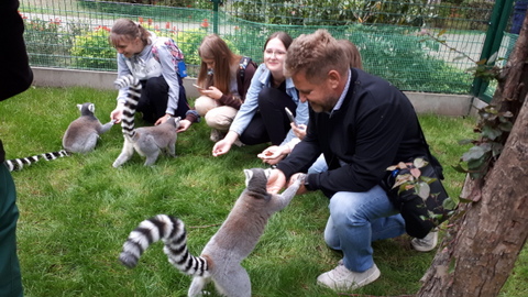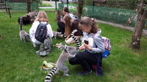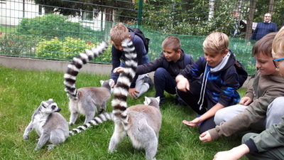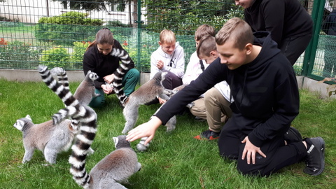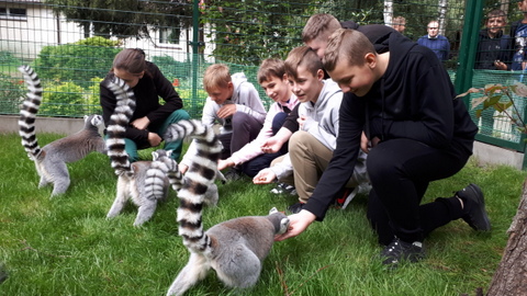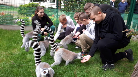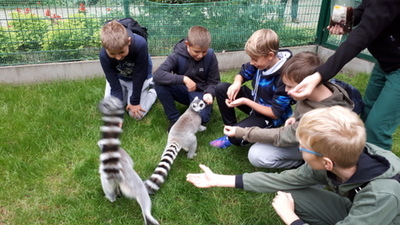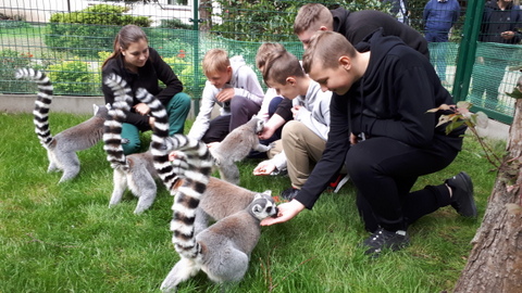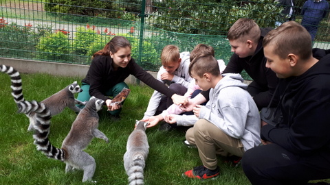 Dnia 15 września 2022 uczniowie klas 6 i 8 wraz z wychowawcami uczestniczyli w niezwykle ciekawej wycieczce do nowotomyskiego Zoo. Młodzież miała okazję posłuchać, w fascynujący sposób opowiadanych, historii o poszczególnych gatunkach zwierząt m.in. wielbłądach, strusiach, papugach oraz nakarmić daniele. Jednakże największą atrakcją, niespodzianką dla uczniów, była okazja do nakarmienia i „przytulenia” lemurów, które niezmiernie ochoczo przyjęły uczestników wycieczki. Wyjazd wszystkim niezmiernie się spodobał i stworzył plany na nowe wycieczki do kolejnych ogrodów zoologicznych ;)