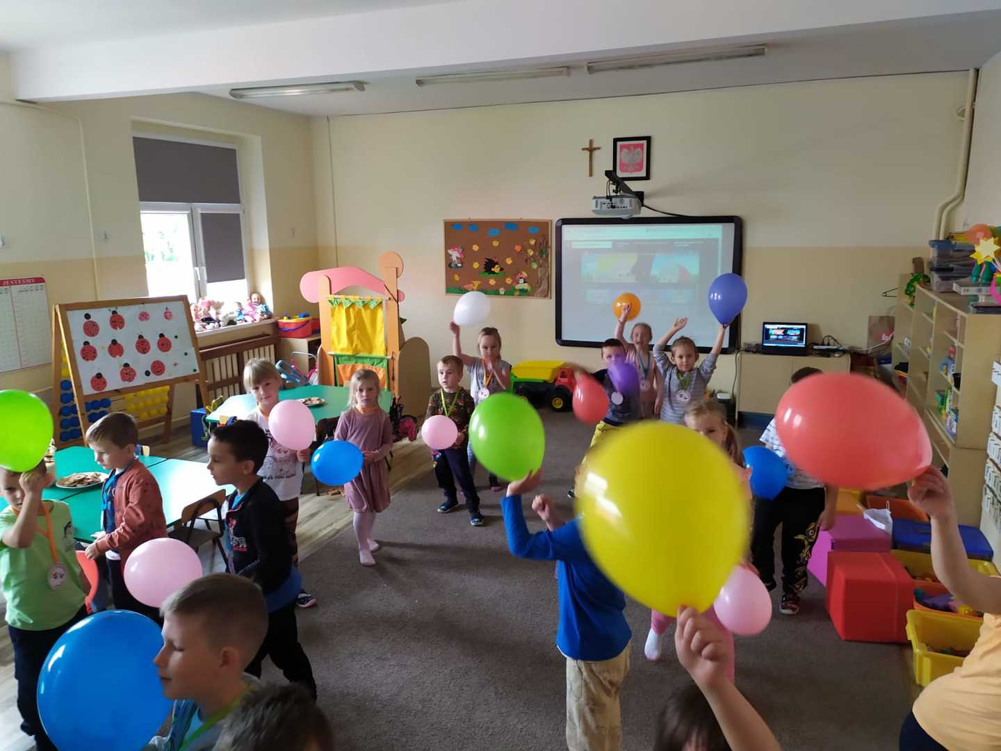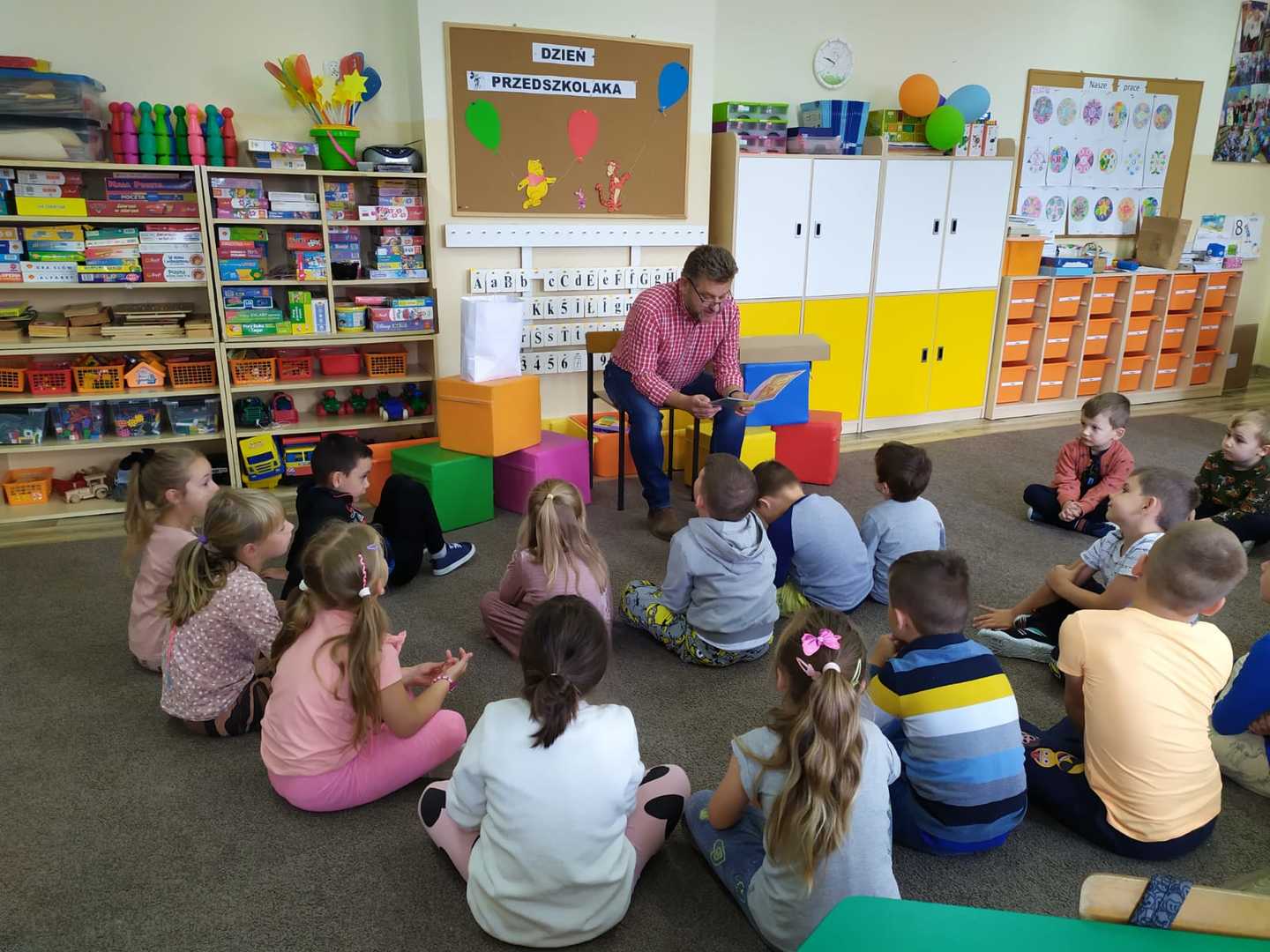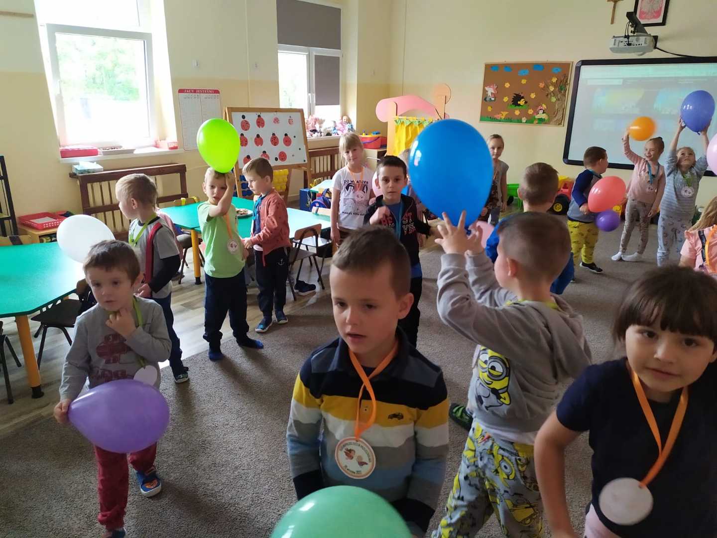 Ogólnopolski Dzień Przedszkolaka to święto, które obchodzone jest w całej Polsce, 20 września. Tego dnia przedszkolaki celebrują swój dzień. Tak też było i u nas… Po śniadaniu pan Dyrektor złożył dzieciom życzenia, wręczył nowe zabawki do sal i wcielił się w rolę bajarza, przybliżając treść bajki pt.: „Jesteś wyjątkowy Tygrysku". Po wysłuchaniu przygód tygryska dzieci doszły do wniosku, że każdy jest wyjątkowy i to jest „super”. Po wspólnych zabawach z balonami panie kucharki poczęstowały wszystkich kolorowymi, owocowymi szaszłykami. Do przedszkola zawitali także pozostali nauczyciele z życzeniami dla najmłodszych. Na zakończenie Dnia przedszkolaka pani Klaudia wręczyła dzieciom medale. Było to święto pełne radości i uścisków.