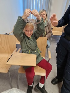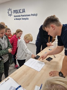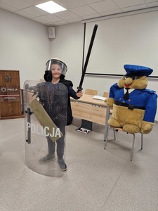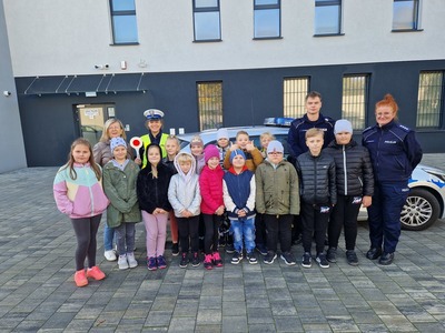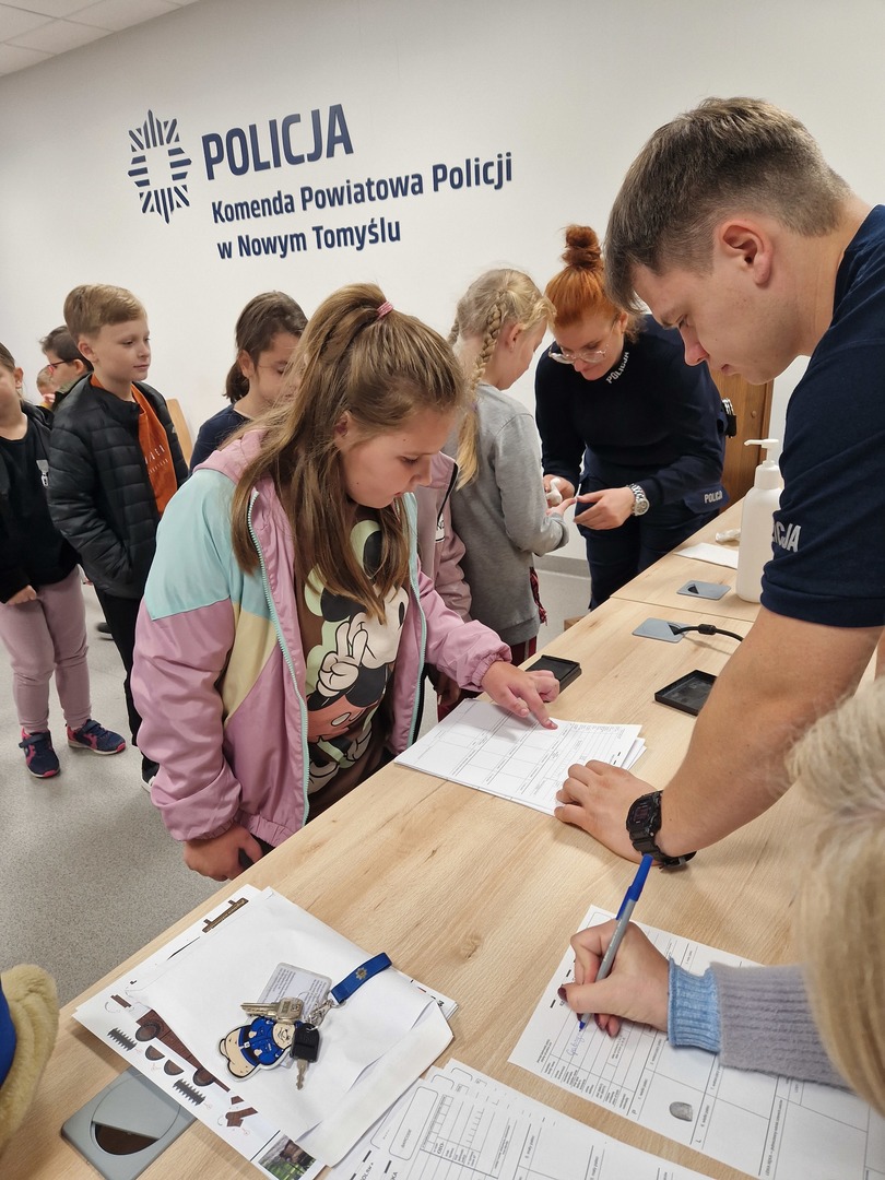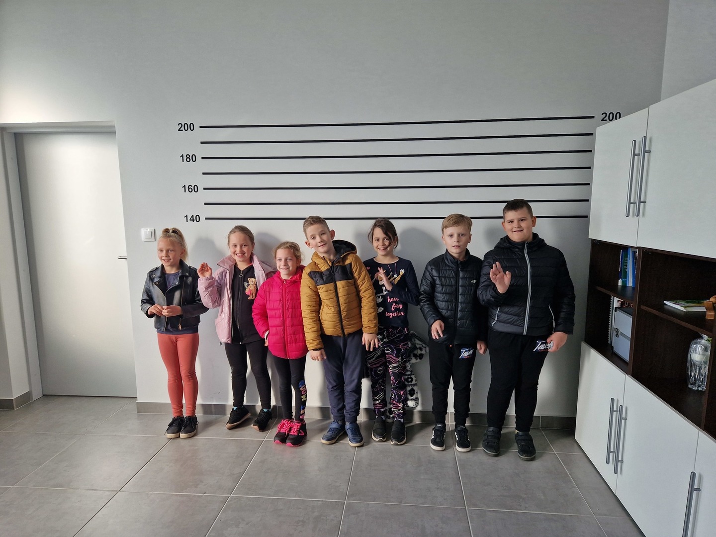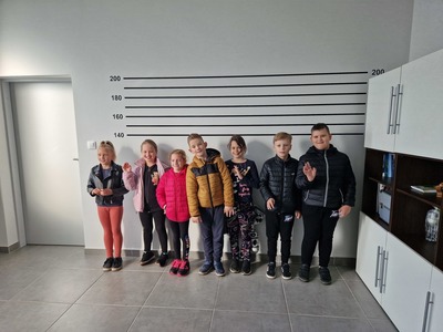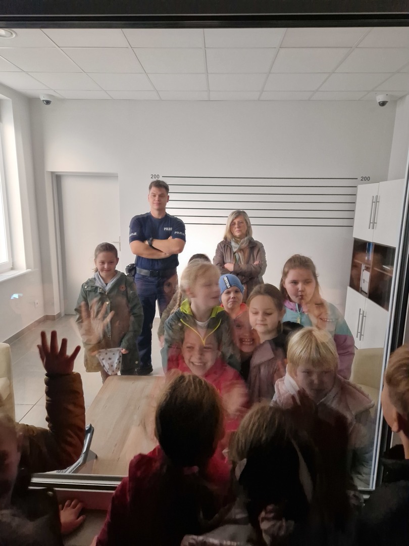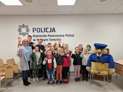 We wtorek 11 października klasy 1-3 wybrały się na wycieczkę do Nowego Tomyśla.Na początku mieliśmy okazję zwiedzić KPP w Nowym Tomyślu gdzie przemili policjanci oprowadzili nas po wielu pomieszczeniach i zapoznali ze swoją pracą oraz bezpieczeństwem na drodze. Dzieci miały okazję zobaczyć pokój okazań w którym za weneckim lustrem w tajemnicy obserwowali koleżanki i kolegów a następnie zrobili swoje odciski palców. Z zaciekawieniem oglądali pomieszczenie dla zatrzymanych i dyżurkę. Dużo radości sprawiło im też przebranie się za policjantów oraz zakucie w kajdanki.