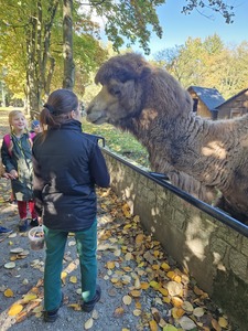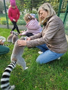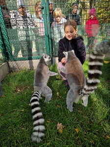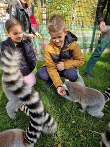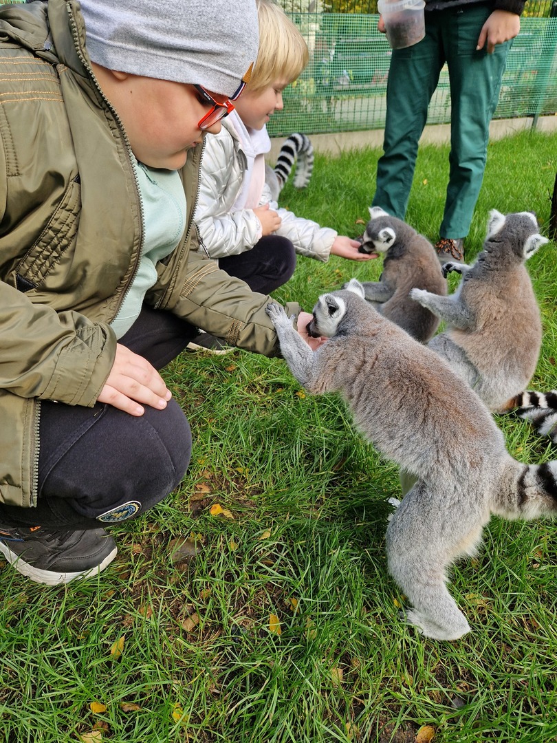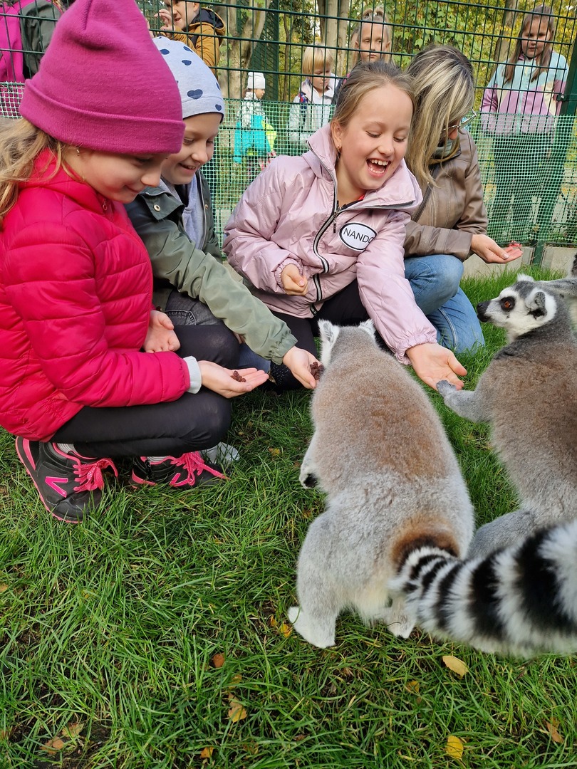 Następnie uczniowie pojechali do nowotomyskiego Zoo. Tam Pani, która opiekuje się zwierzętami oprowadziła nas po Zoo, ciekawie opowiadając o zwierzętach. Dzieci mogły nakarmić kozy i wielbłąda,ale największą niespodzianką było karmienie lemurów. Dzieci wróciły pełne wrażeń.
