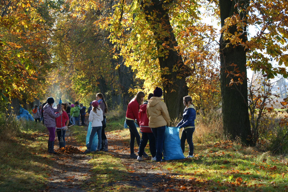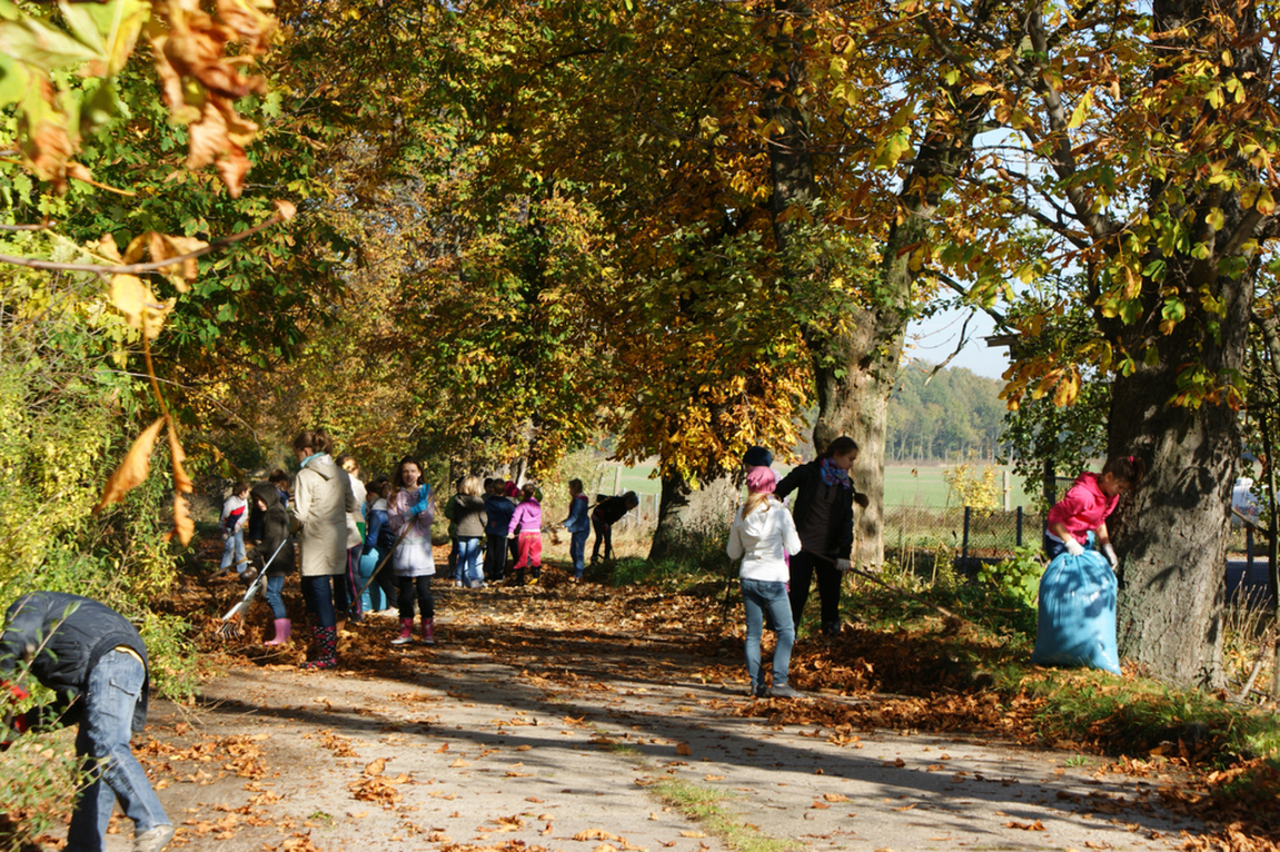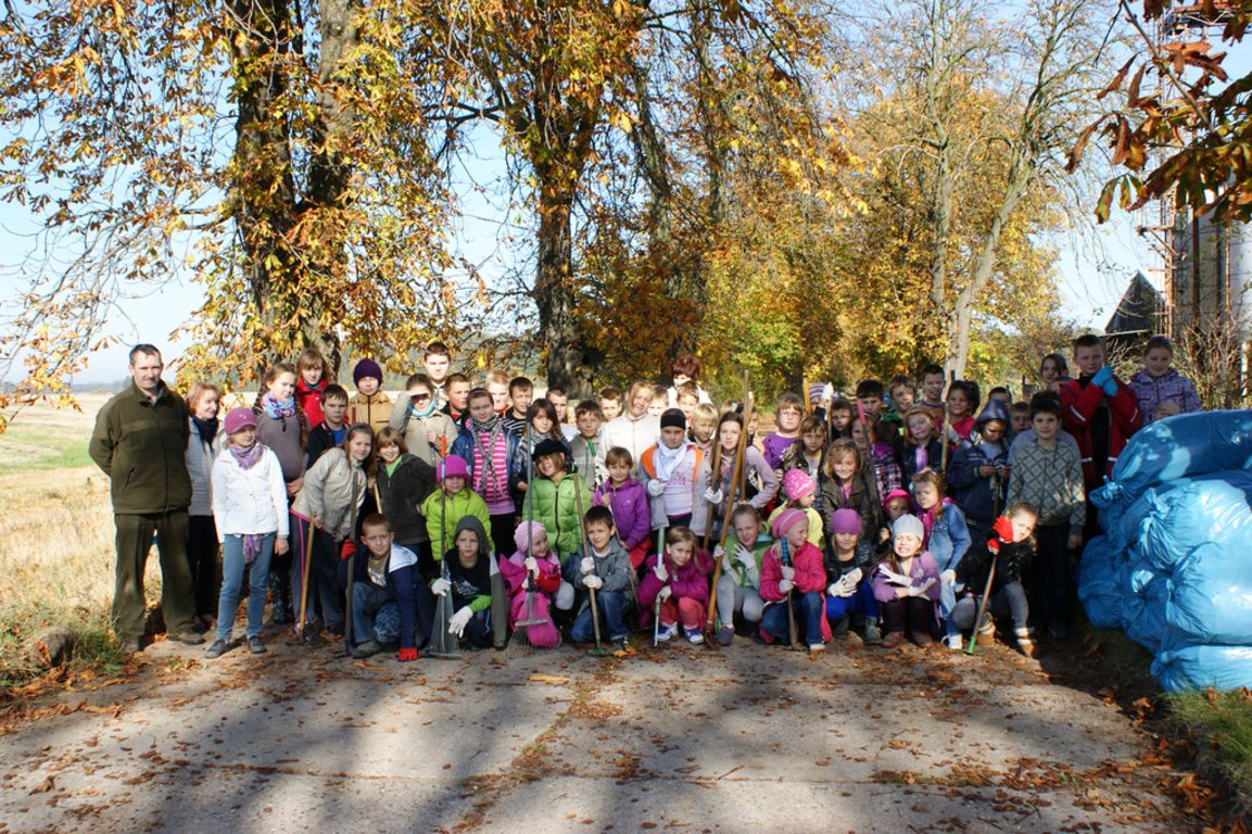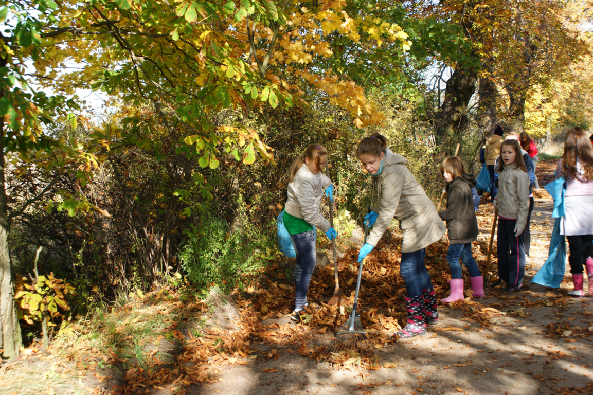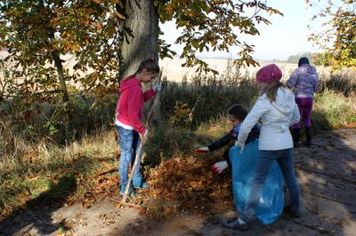 18 października 2012r. uczniowie klas I-VI grabili liście na alei kasztanowców przy drodze do „Wielkiego Lasu”. Zgrabione i zapakowane w worki liście zostały zabrane do utylizacji.