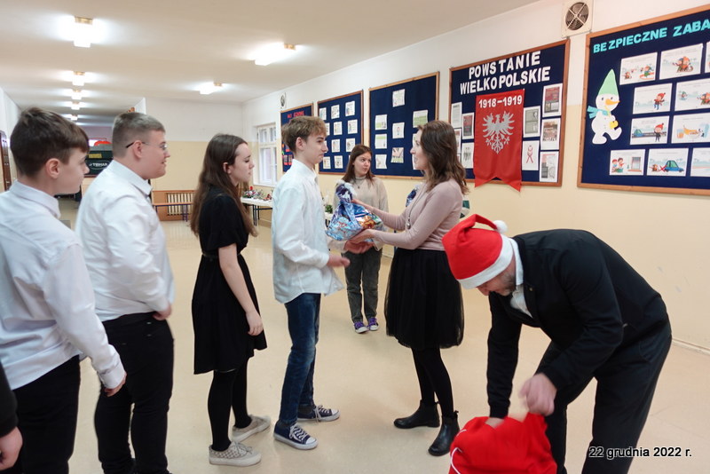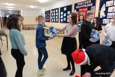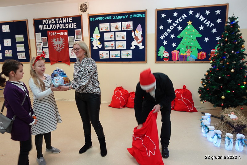 22 grudnia w ostatni dzień przed przerwą świąteczną był dniem świątecznym. Wszystkie dzieci otrzymały piękne paczki ufundowane przez Radę Rodziców, a następnie udały się do klas gdzie odbyły się klasowe wigilie. Podczas klasowych spotkań uczniowie złożyli sobie świąteczne życzenia, śpiewali kolędy i obdarowywali się symbolicznymi upominkami.