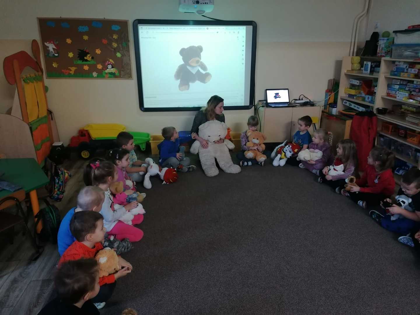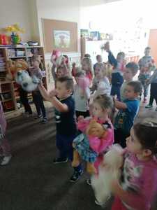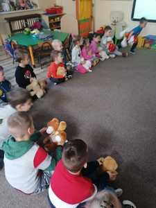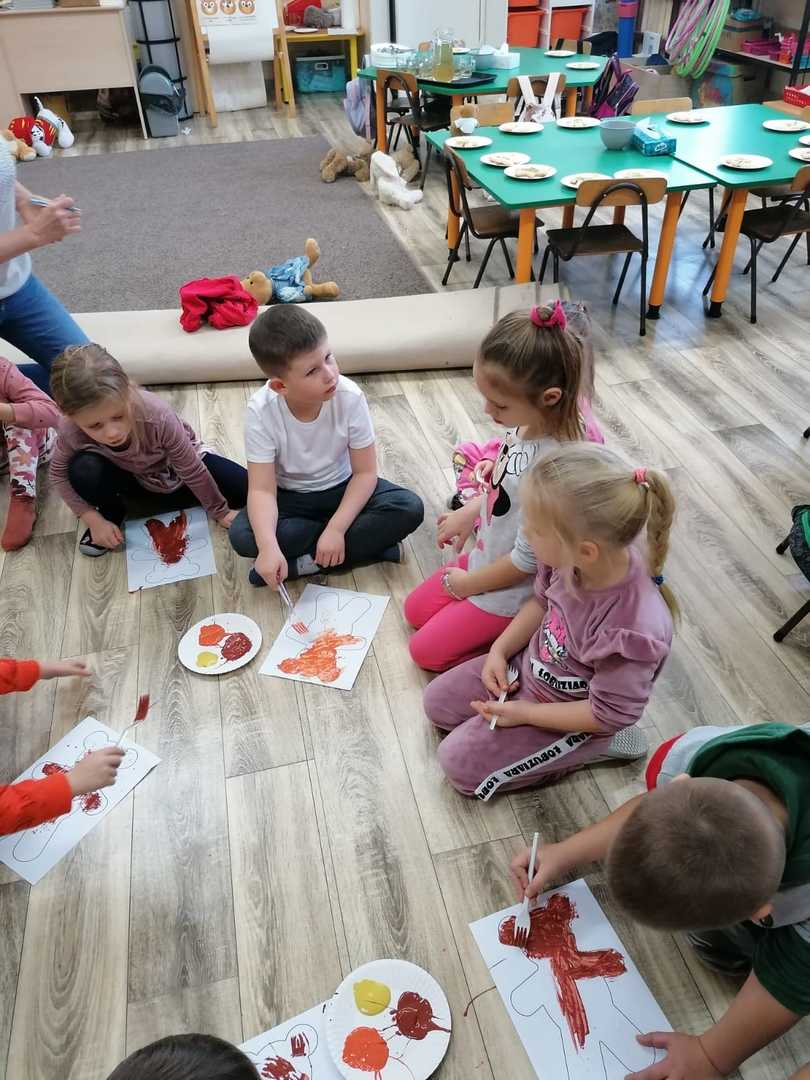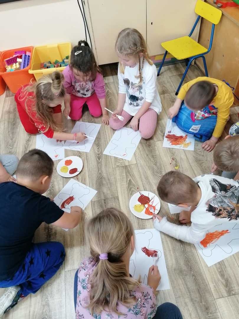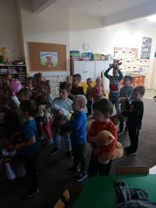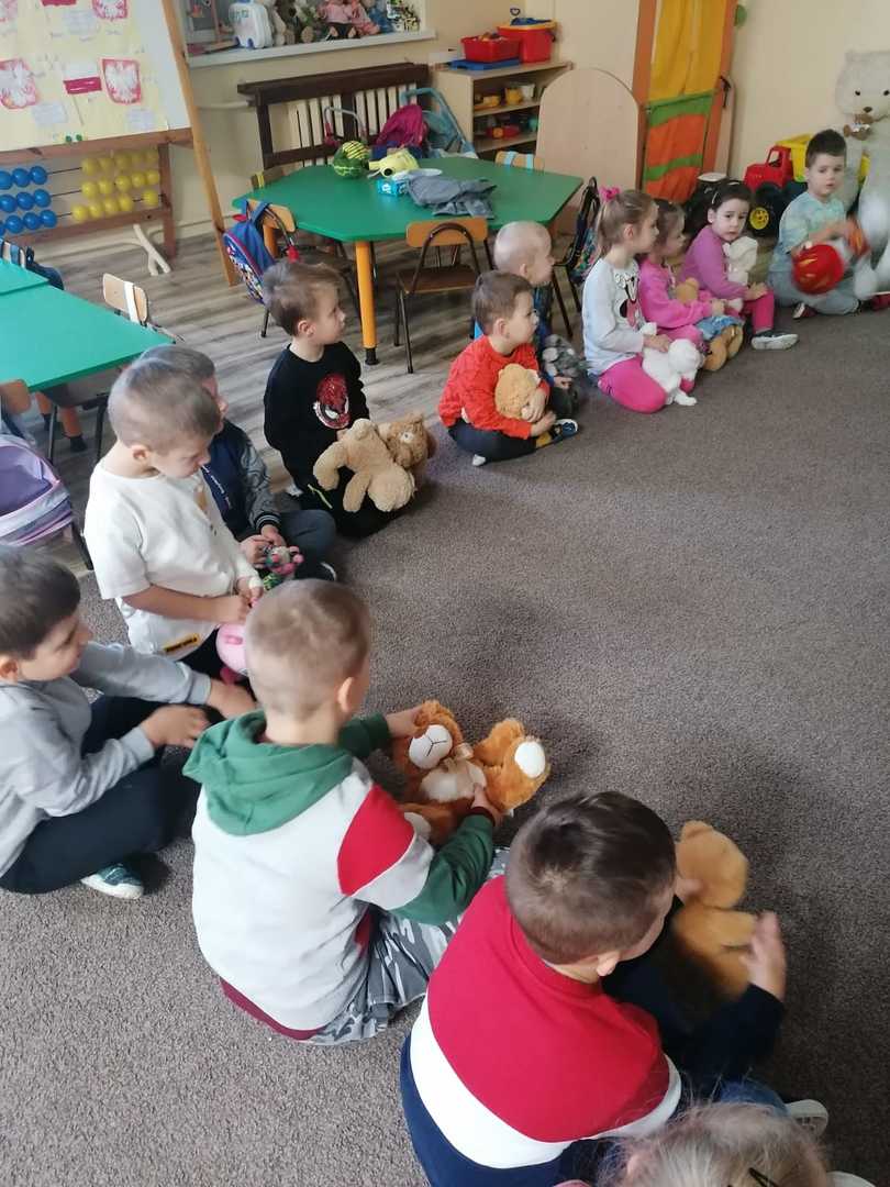 W piątek 25.11.2022 r. dzieci przyszły do przedszkola ze swoimi pluszowymi przyjaciółmi. Każdy z towarzyszy został przedstawiony i przywitany przez dzieci.Następnie odbyły się wspólne zabawy i tańce. Przedszkolacy miały możliwość poznania nowej techniki malarskiej i wykonały misia przy użyciu widelca i farb.Panie kucharki zadbały o słodką niespodziankę.Był to dzień pełen radości.