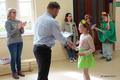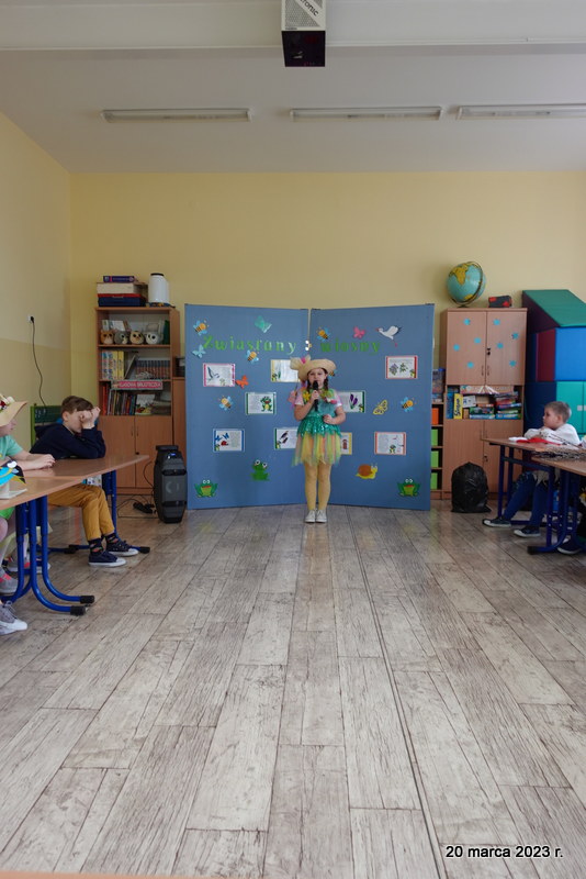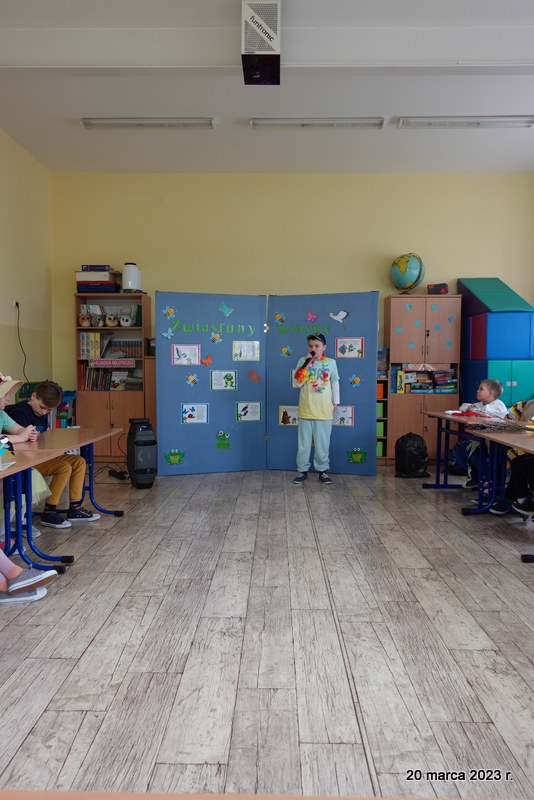 20 marca 2023 r. w naszej szkole odbył się konkurs recytatorski dla klas I-III. Wzięło w nim udział 14 uczniów z naszej szkoły. Celem konkursu było rozwijanie zdolności i umiejętności recytatorskich dzieci. Przy ocenie występów konkursowych zwracano uwagę na pamięciowe opanowanie tekstu, dykcję i interpretację utworu oraz ogólny wyraz artystyczny – strój, gest sceniczny. Wszyscy uczestnicy doskonale przygotowali się do występu i pięknie zaprezentowali swoje umiejętności recytatorskie. Każdy z laureatów konkursu otrzymał dyplom i nagrodę rzeczową w postaci książki. Pozostali uczestnicy otrzymali dyplomy. Spotkaniu towarzyszyła radość i wiele pozytywnych emocji.