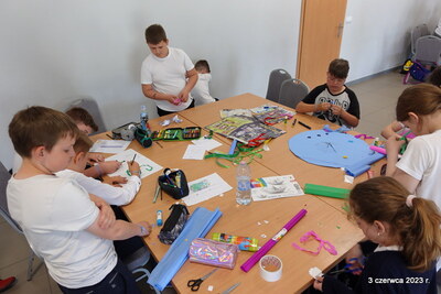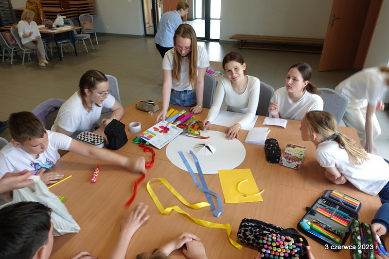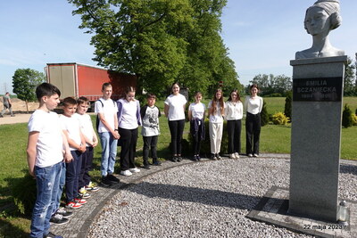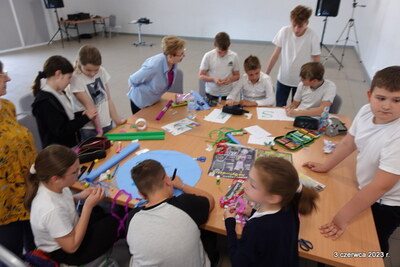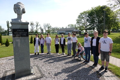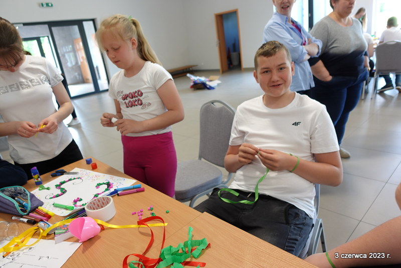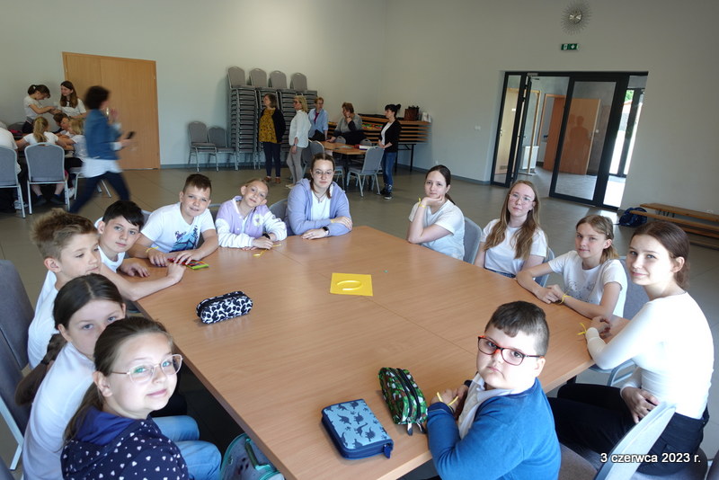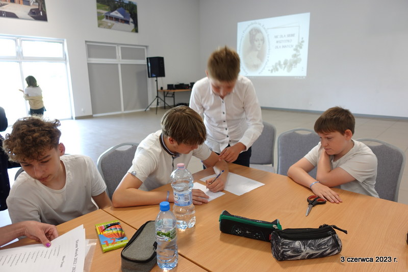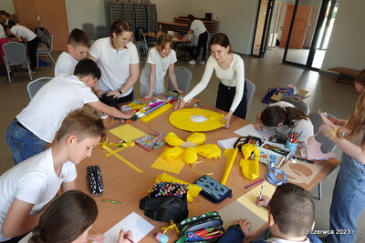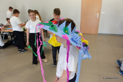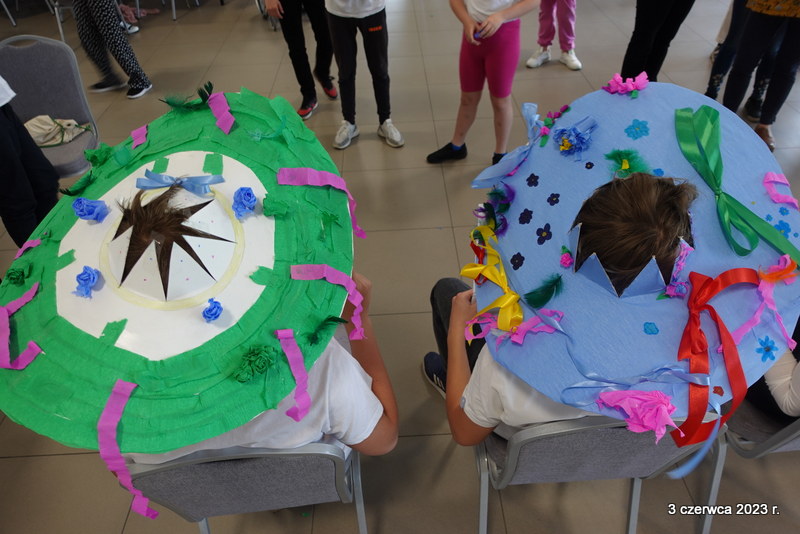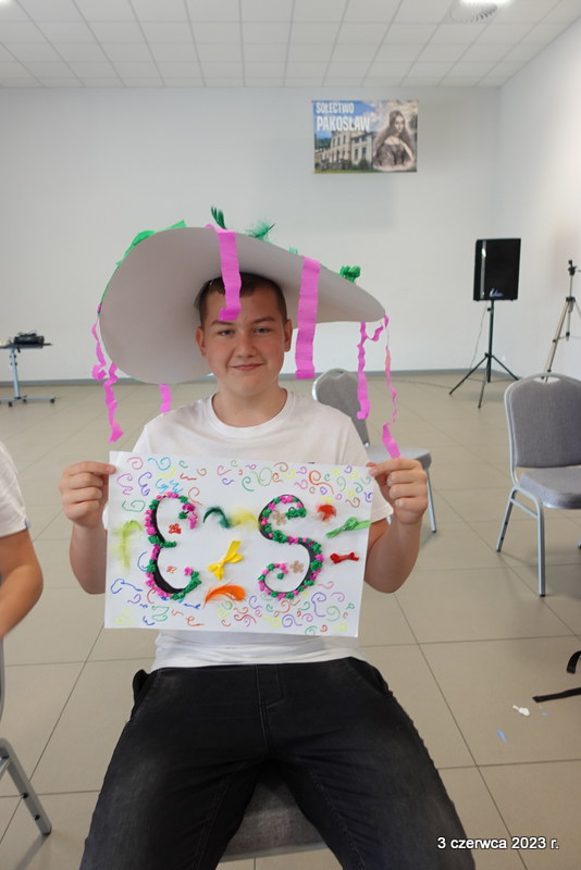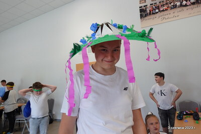 Drugą część Święta Patrona spędziliśmy na grach i zabawach. Uczniowie klas 1 – 8 podzieleni na cztery „kolorowe” grupy wykonywali zadania wymagające wiedzy, np. napisanie w języku angielskim notatki encyklopedycznej o naszej Patronce. Młodzież wykazała się również talentami plastycznymi projektując i wykonując monogram E. Sczanieckiej oraz kapelusz „dla Emilki”.