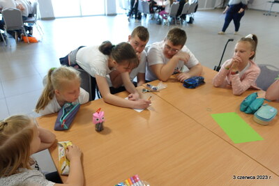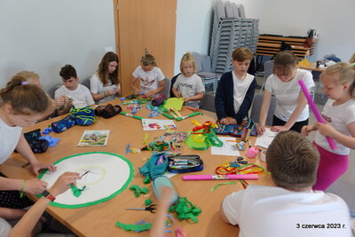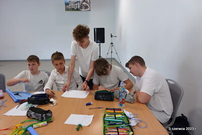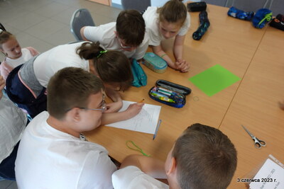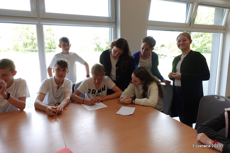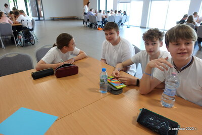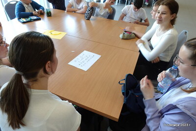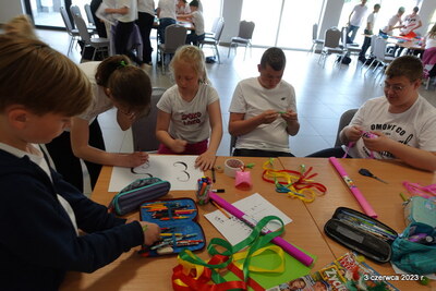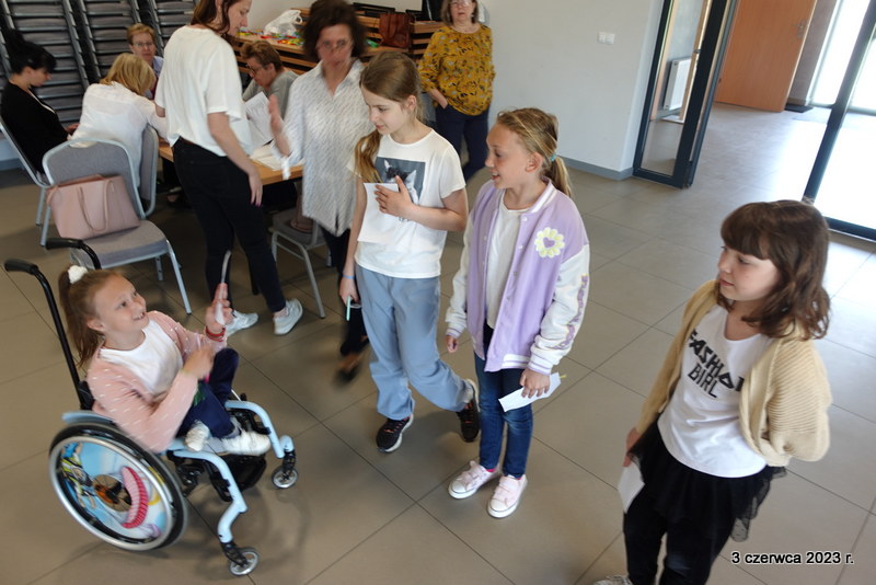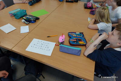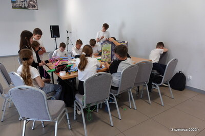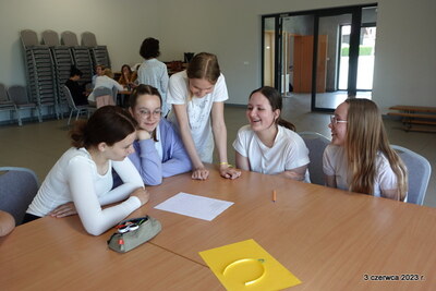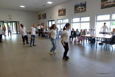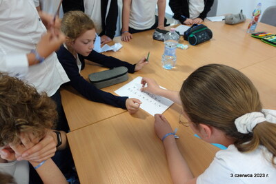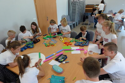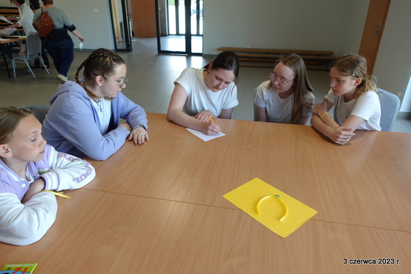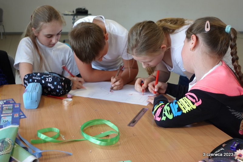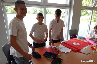 Drugą część Święta Patrona spędziliśmy na grach i zabawach. Uczniowie klas 1 – 8 podzieleni na cztery „kolorowe” grupy wykonywali zadania wymagające wiedzy, np. napisanie w języku angielskim notatki encyklopedycznej o naszej Patronce. Młodzież wykazała się również talentami plastycznymi projektując i wykonując monogram E. Sczanieckiej oraz kapelusz „dla Emilki”.