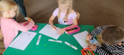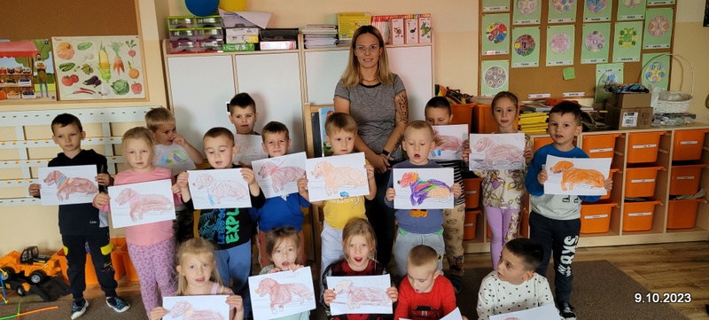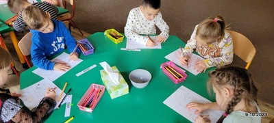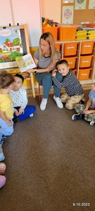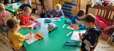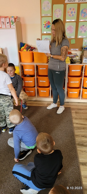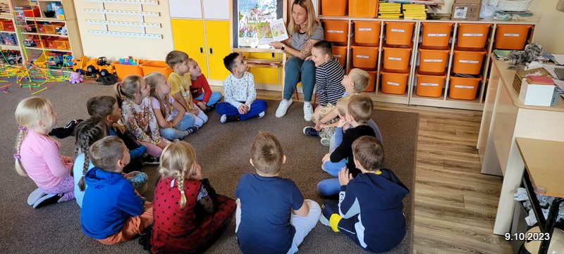 W ramach rozwoju czytelnictwa, raz w miesiącu zaproszeni rodzice będą czytać dzieciom bajki. W poniedziałek 9.10.23 r. grupę starszaków odwiedziła mama Kuby. Pani Natalia przeczytała dzieciom bajkę pt. " Pies tropiciel i chciwa Nina". Po poznaniu przygód Niny i jej psa przedszkolacy wykonali pracę plastyczną. Ich zadaniem było połączenie kropek i kolorowanie ilustracji psa. Już dziś zapraszamy rodziców do przeczytania bajki.