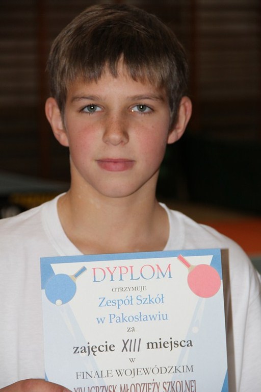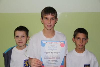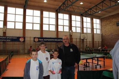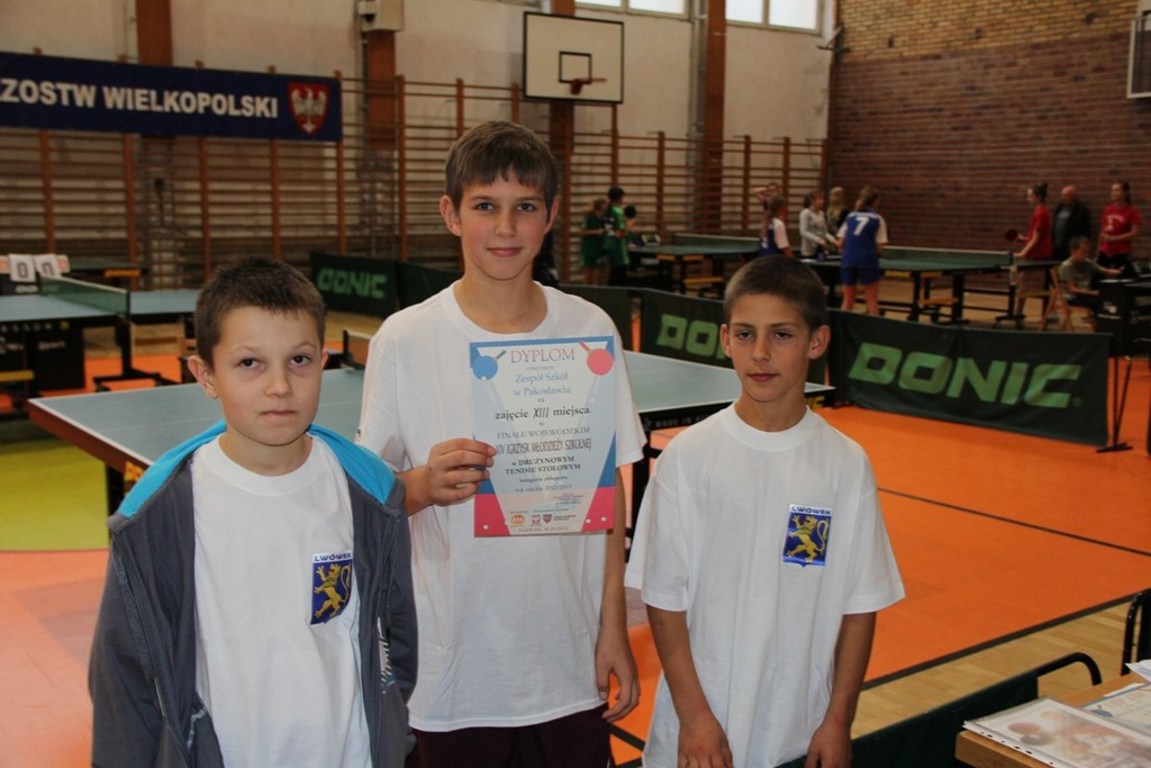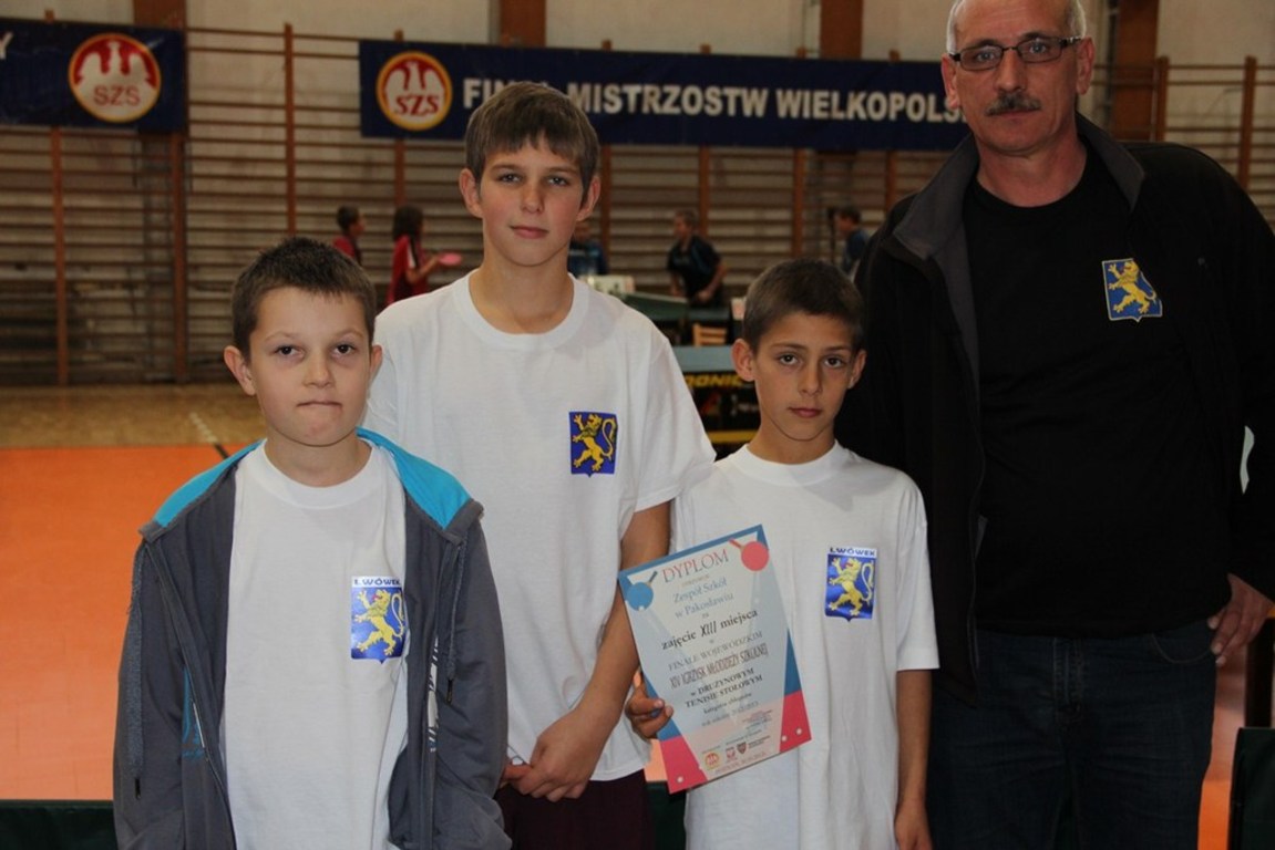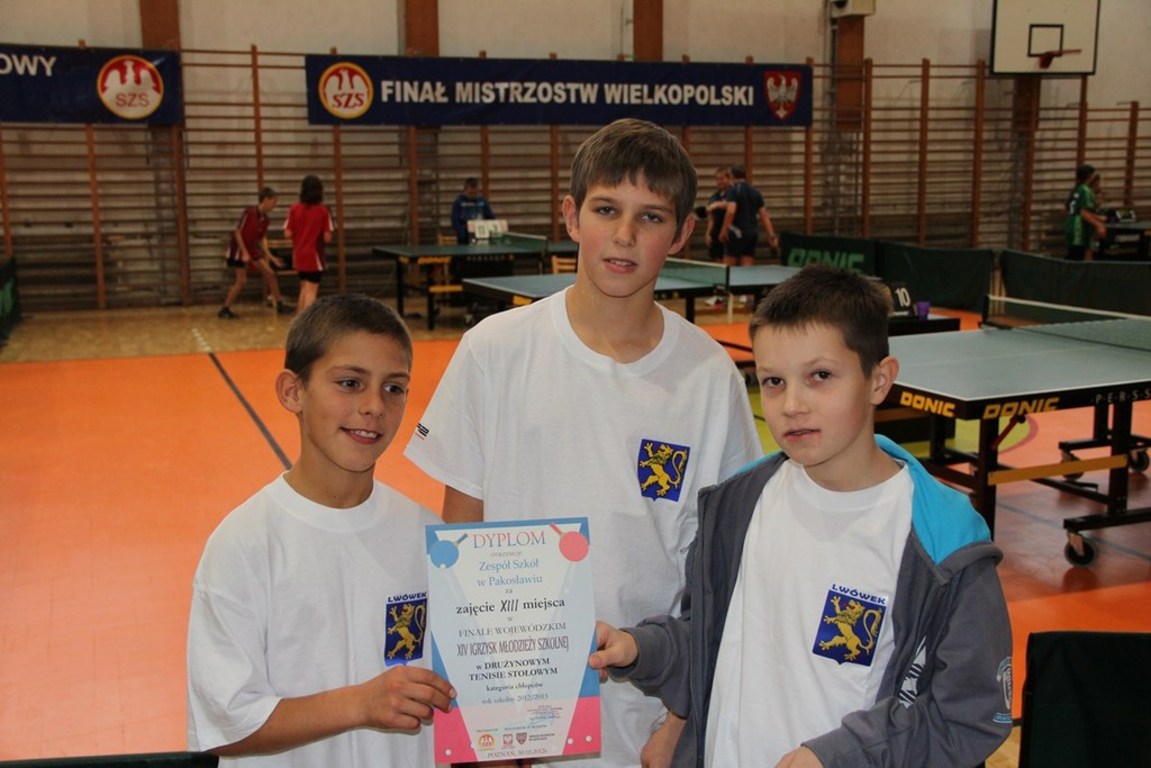 Sam udział w Finale Mistrzostw Wielkopolski Drużynowych Mistrzostwach w Tenisie Stołowym, jest sukcesem dla naszych uczniów. Nasza drużyna w składzie: Kacper Hała, Marcin Stachowiak i Paweł Czaprański, po zwycięstwie w Gminie Lwówek, zwyciężyła w rozgrywkach powiatowych, a następnie zajęła II miejsce w zawodach Rejonu Poznańskiego, kwalifikując się do Mistrzostw Wielkopolski. Chociaż w Poznaniu nasi uczniowie walczyli z bardzo wielkim zaangażowaniem, zdobyli XIII miejsce w Wielkopolsce. Naszym uczniom w imieniu Dyrekcji Szkoły, Rodziców oraz Rady Podagogicznej za reprezentowanie naszej szkoły w Wielkopolsce serdecznie dziękujemy, życząc dlaszych sukcesów.