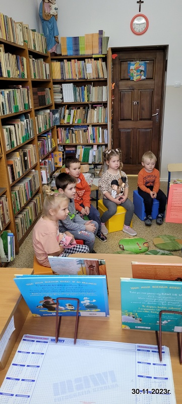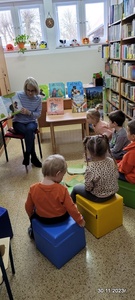 W kolejny czwartek 30.11 młodsza grupa przedszkolakow poznawała przygody Misia Tulisia. Pani Urszula Matuszewska przeczytała bajkę pt . "Kocham Cię, Misiu Tulisiu".Dzieci chętnie opowiadały o przyjaciołach misia. Pani Matuszewska przygotowała dla wszystkich kolorowankę i słodką niespodziankę.