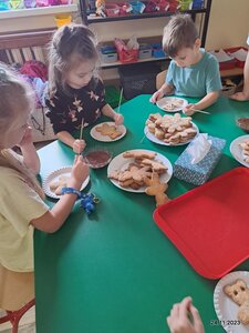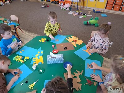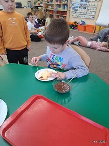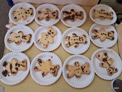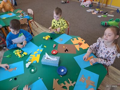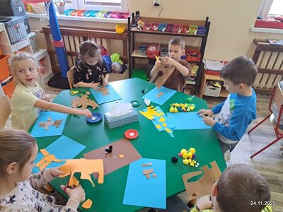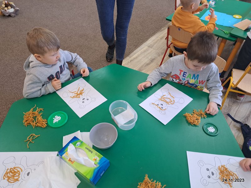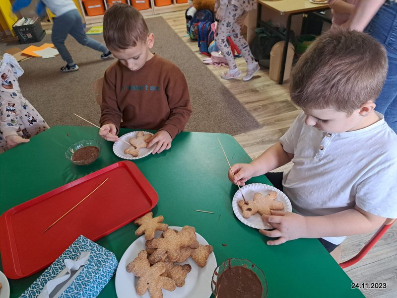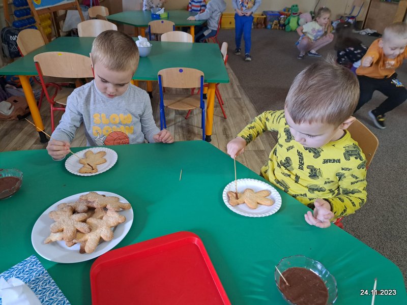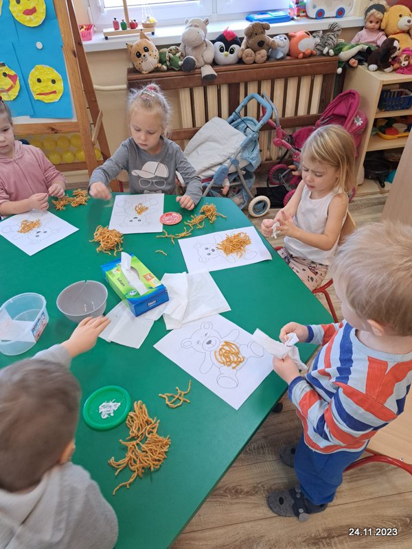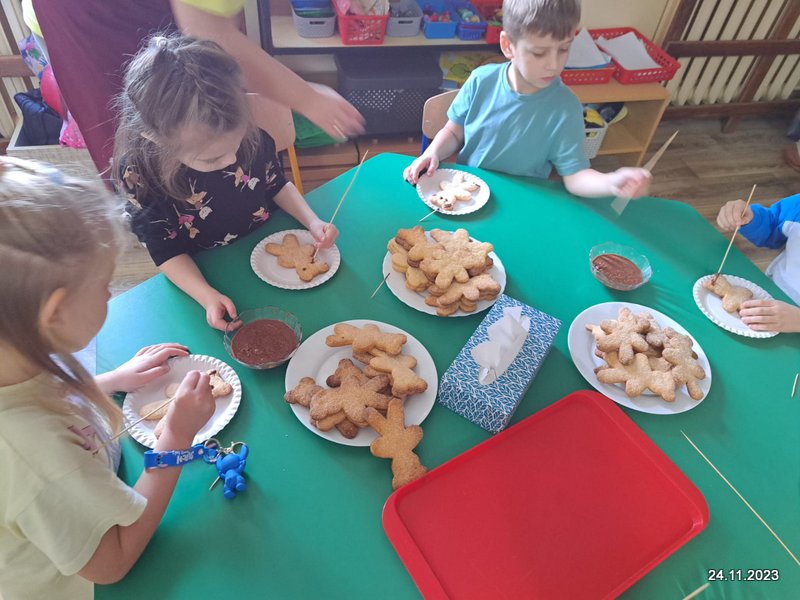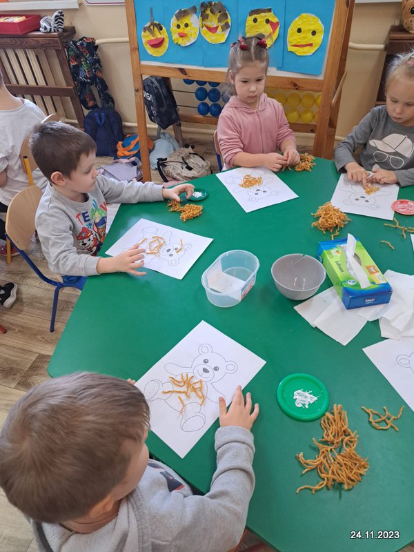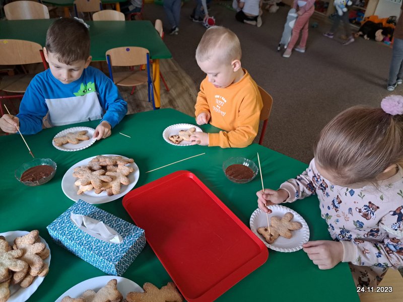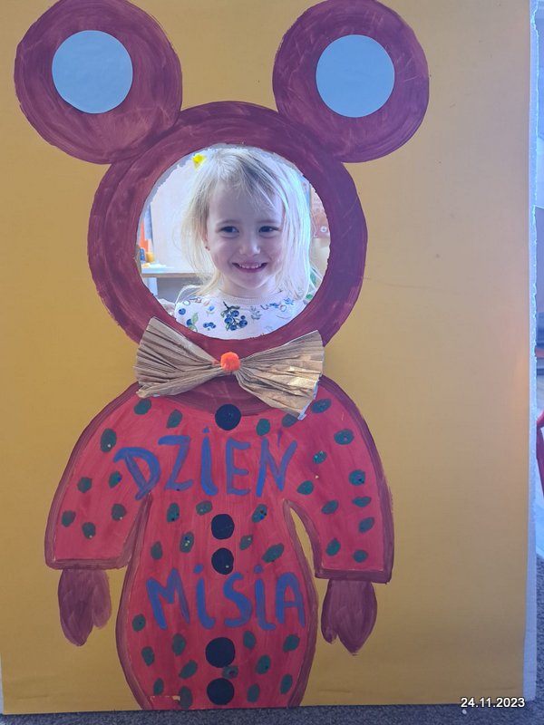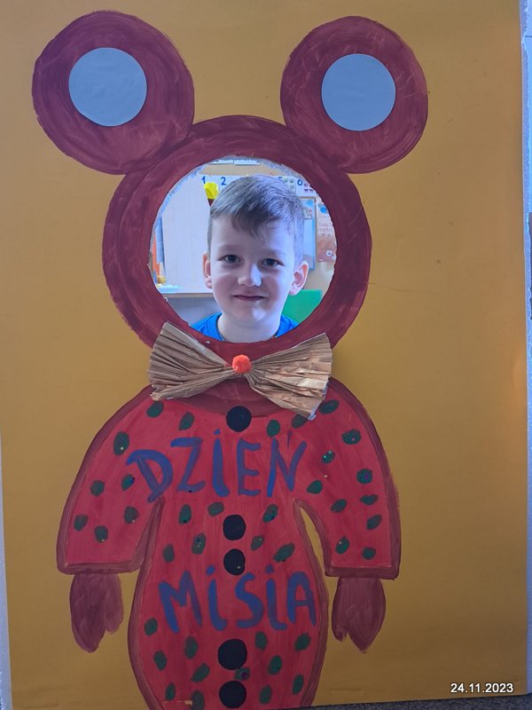 Dzień pluszowego misia to jeden z najbardziej wyczekiwanych dni przez dzieci. W tym dniu wszyscy mogą przynieść do przedszkola swojego ulubionego pluszaka i o nim opowiedzieć. Tak było i tym razem. W piątek 24.11.2023r. z ogromną radością przedszkolacy przedstawiali swojego przyjaciela. Była wspólna gimnastyka i zabawy z misiem. Dzieci wykonały pracę plastyczną pt." Miś " dowolną techniką. Panie kucharki upiekły ciasteczka w kształcie misia, które przedszkolacy udekorowali czekoladą. Na zakończenie zabaw odbyła się degustacja wypieków.