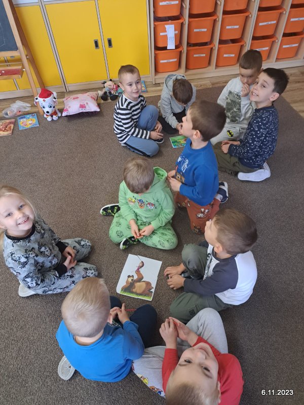 Poniedziałek 6.listopada w naszym przedszkolu był "Dniem postaci z bajek".Z tej okazji każdy przedszkolak przyniósł swoją ulubioną bajkę, lub pluszowego bohatera.Dzieci za pomocą magii przenosiły się w różne krainy bajek i rozwiązywały zagadki i rebusy.W tym dniu nie brakowało również tańców i konkurencji sprawnościowych. Był to miły i radosny dzień.