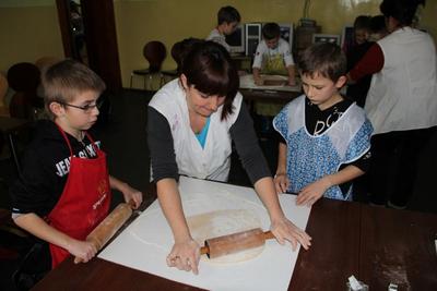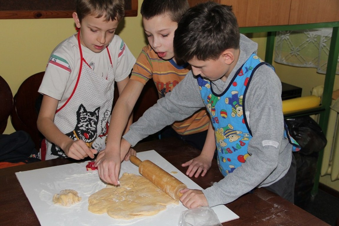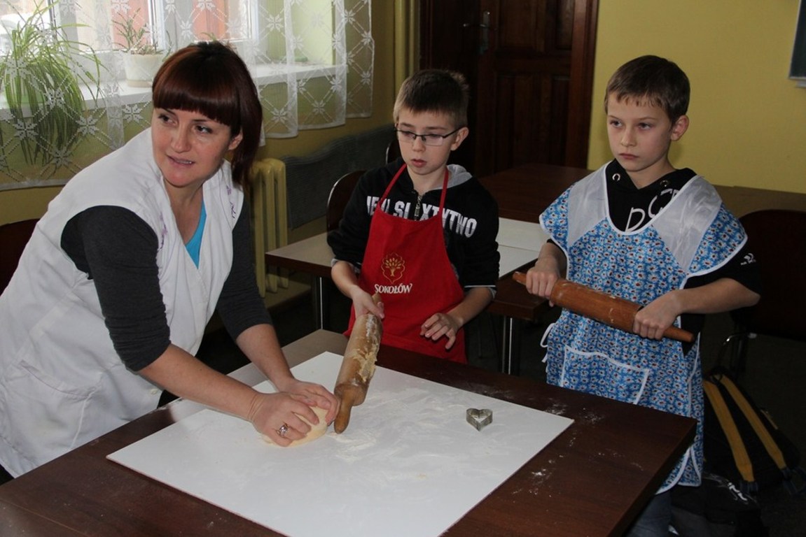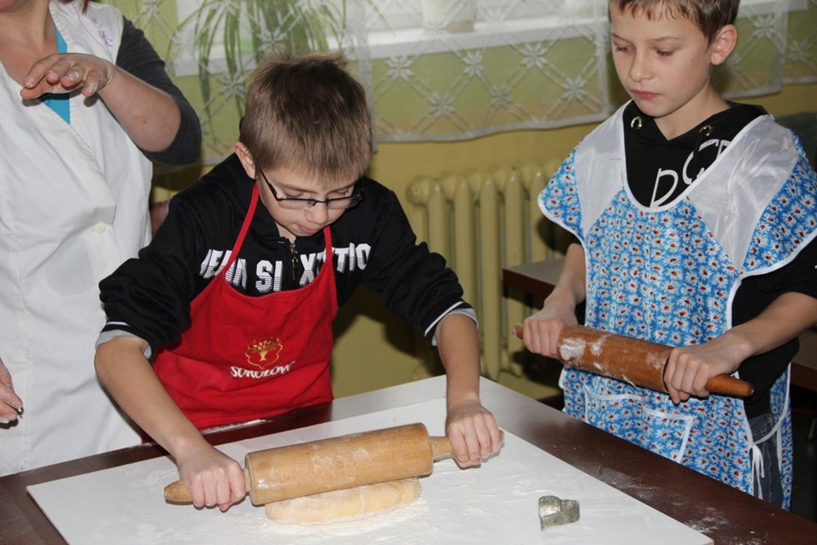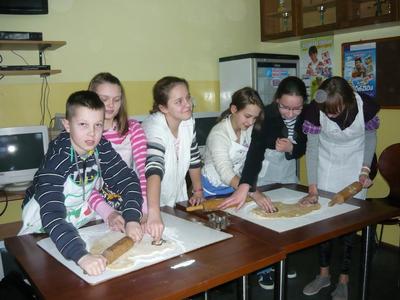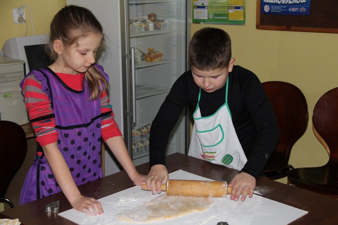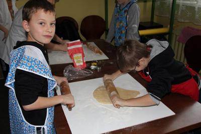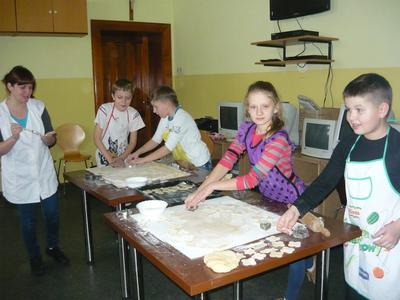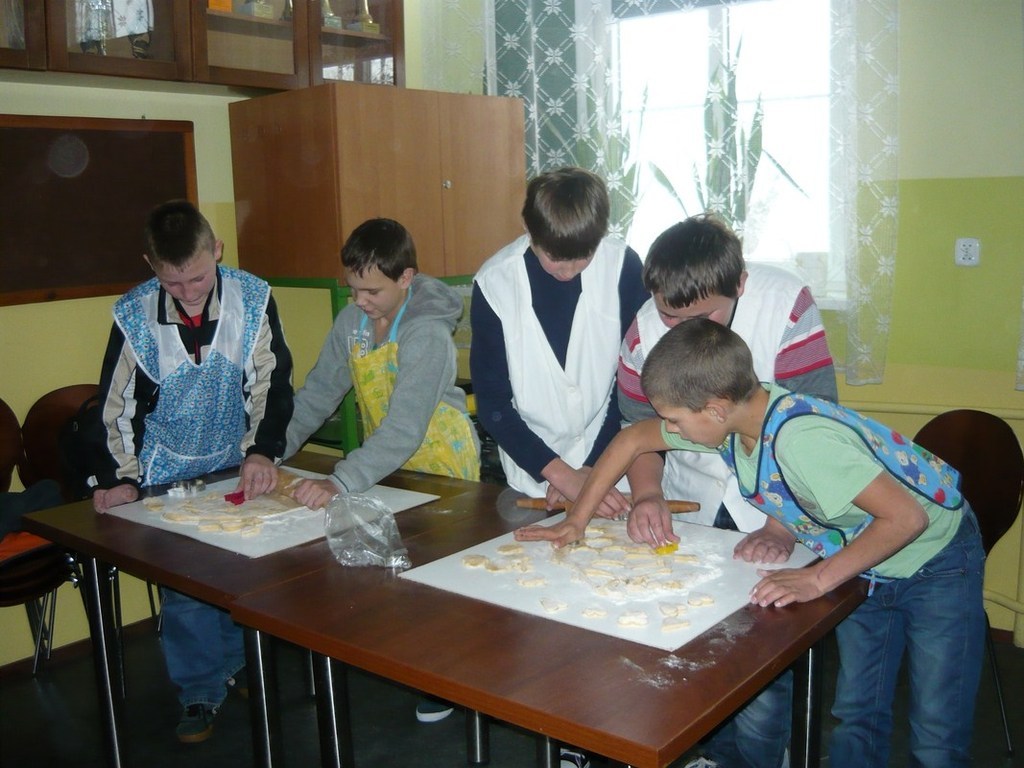 Klasa VI i IV przygotowywała i piekła przepyszne ciasteczka oraz stroiła pierniki, które mają być spożywane podczas klasowych wigilii oraz świąt. Przygotowaniem pieczenia zajęły się mamy uczniów: pani E. Stachowiak i p.A. Pruszkowska, które nadzorowały prace uczniów polegające na ugniataniu ciasta, wycinaniu foremkami w cieście różnych kształtów a następnie na cukrzeniu ciastek. Dodatkowo uczniowie zdobili pierniki lukrem oraz różnego rodzaju posypkami.
