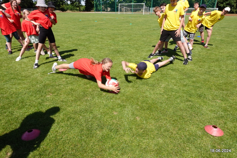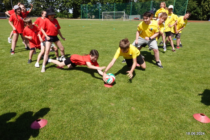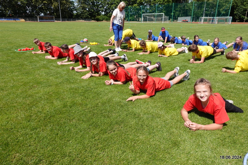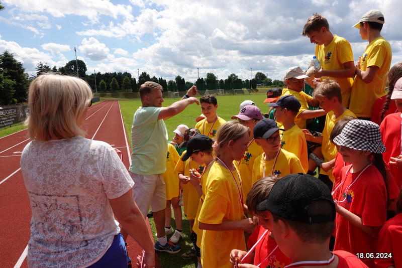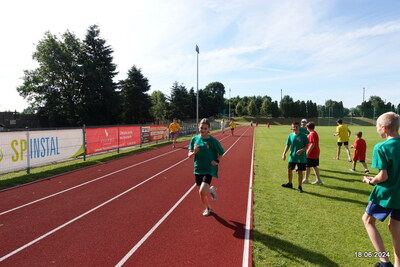 18 czerwca uczniowie naszej szkoły wybrali się do Lwówka na stadion, żeby konkurować w zawodach sportowych. Wszystkie dzieci były podzielone na 4 kolory. Uczniowie konkurowali między innymi w Biegu na 100m, 300m, w sztafecie 4×100m, w skoku w dal, w rzucie piłeczką palantową, w wyścigu szczurów oraz w wyścigu kropek. Po podliczeniu wszystkich punktów rywalizację wygrała drużyna żółtych. Wszyscy uczniowie otrzymali medale oraz słodkości.