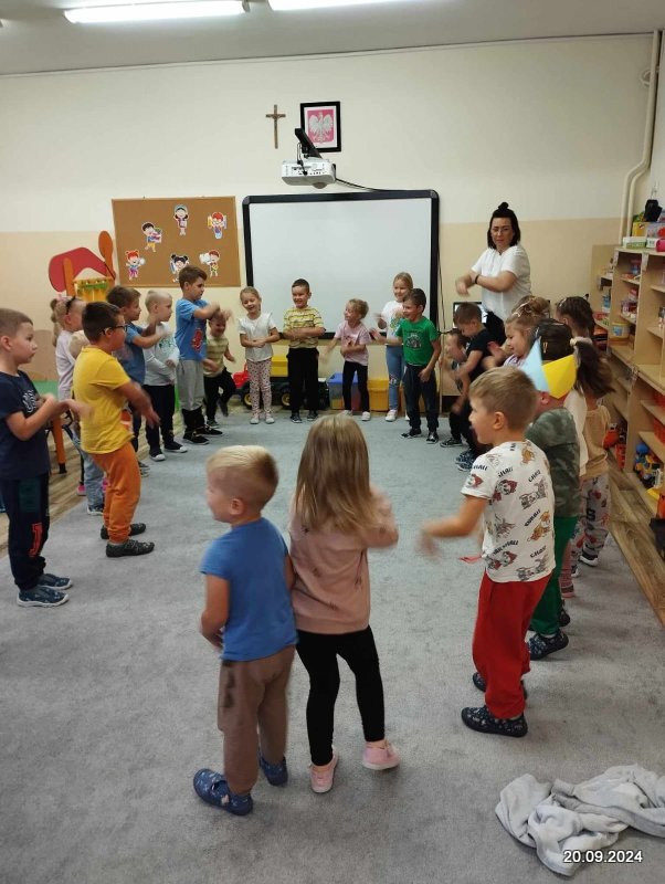 W naszym przedszkolu w piątek 20.09.2024 r. świętowaliśmy Ogólnopolski Dzień Przedszkolaka. Z tej okazji pan Dyrektor odwiedził dzieci. Złożył im życzenia i wręczył zabawki dla obu grup. Dzieci brały udział w zabawach i konkursach przygotowanych przez wychowawczynie. Po skończonej zabawie każdy otrzymał odznakę "super przedszkolaka."