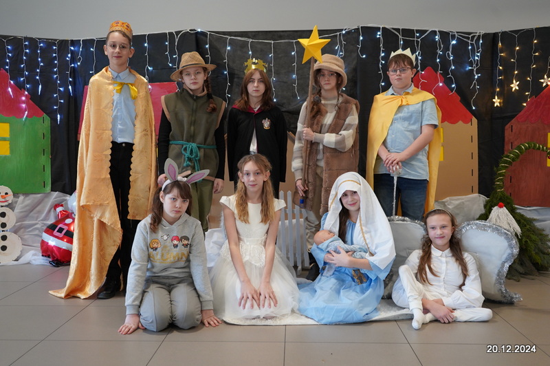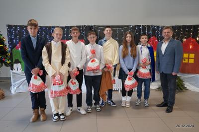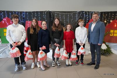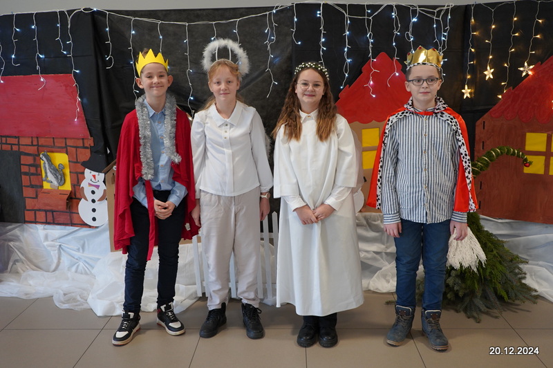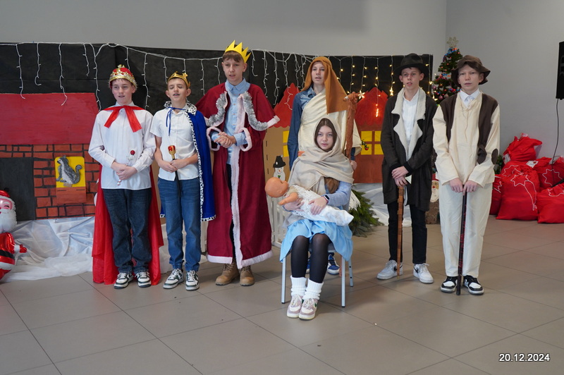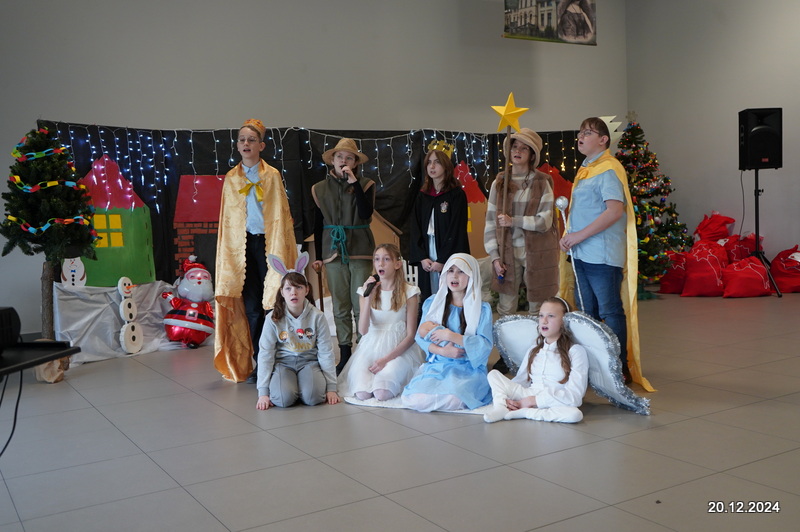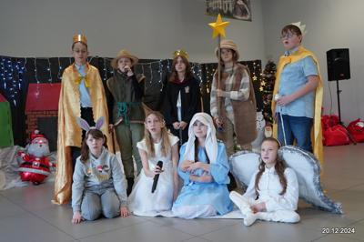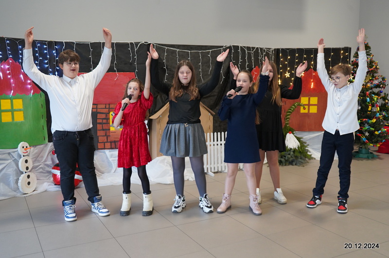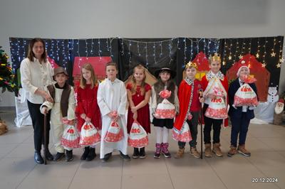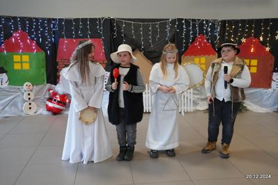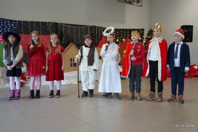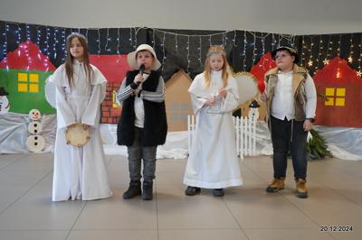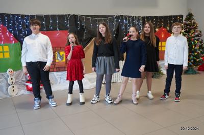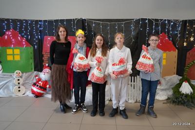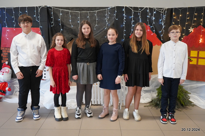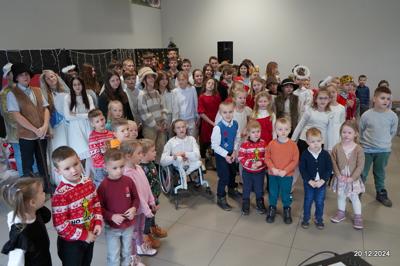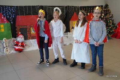 W dniu 20.12.2024 uczniowie naszej szkoły wspólnie kolędowali przygotowując się do obchodów świąt Bożego Narodzenia. Każda klasa w świątecznych przebraniach zaśpiewała wylosowaną wcześniej kolędę. Komisja oceniająca miała trudne zadania, ale ostatecznie pierwsze miejsce w konkursie zajęła klasa 6. Po zakończonym konkursie wszyscy uczniowie zaśpiewali wspólnie kilka kolęd oraz piosenek świątecznych. Następnie Pan Dyrektor rozdał przyniesione przez Gwiazdora prezenty świąteczne. W świątecznym nastroju rozeszliśmy się do domów.