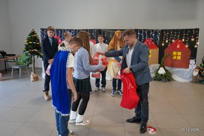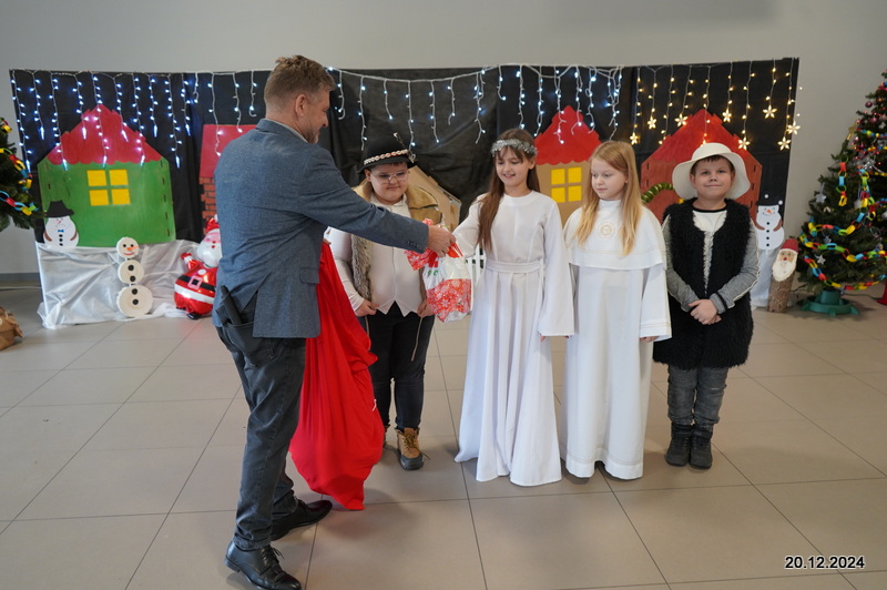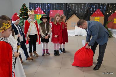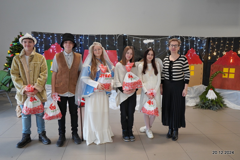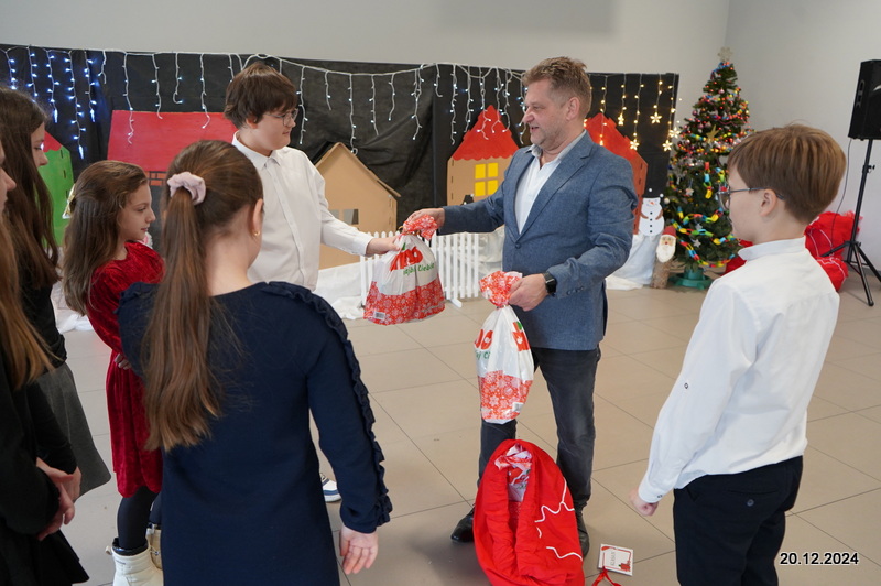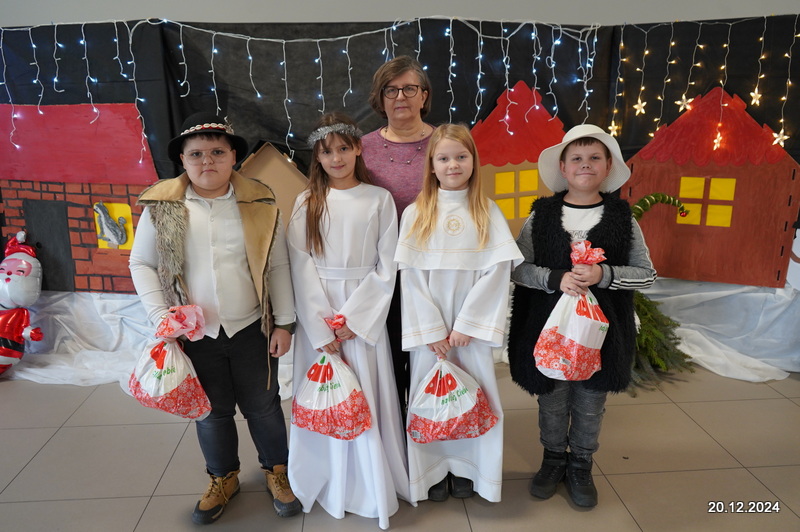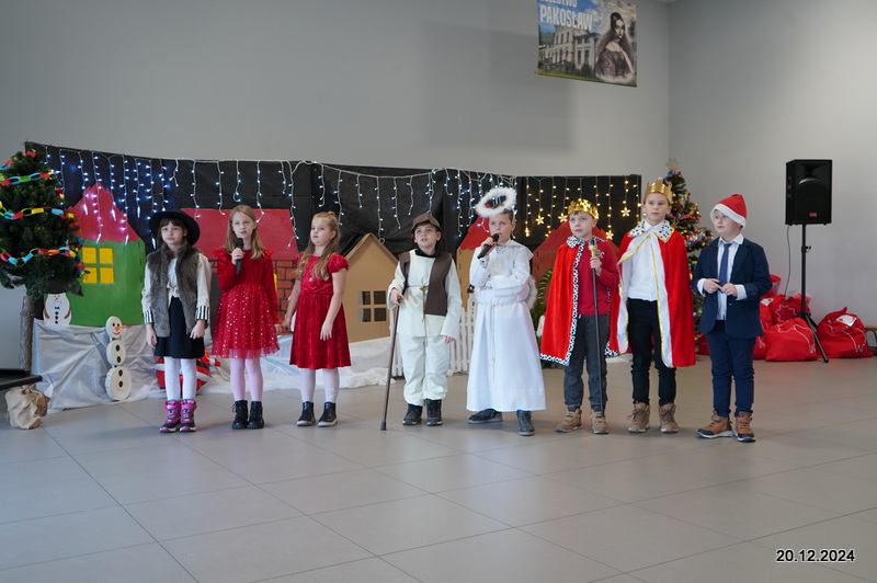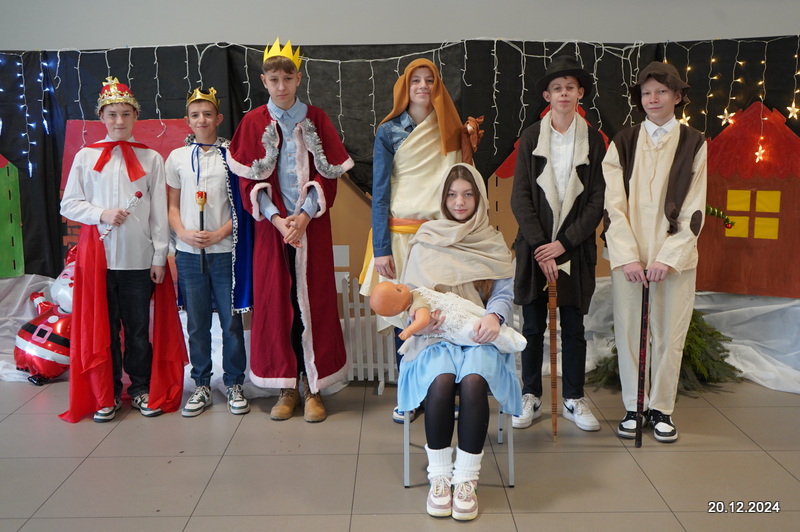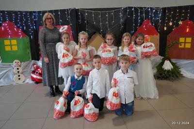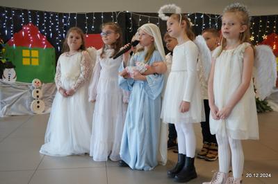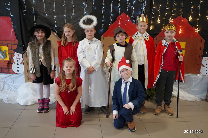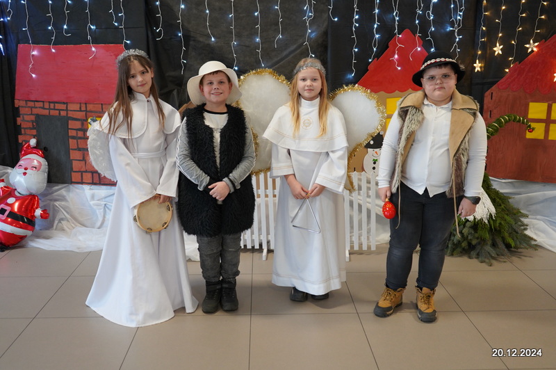 W dniu 20.12.2024 uczniowie naszej szkoły wspólnie kolędowali przygotowując się do obchodów świąt Bożego Narodzenia. Każda klasa w świątecznych przebraniach zaśpiewała wylosowaną wcześniej kolędę. Komisja oceniająca miała trudne zadania, ale ostatecznie pierwsze miejsce w konkursie zajęła klasa 6. Po zakończonym konkursie wszyscy uczniowie zaśpiewali wspólnie kilka kolęd oraz piosenek świątecznych. Następnie Pan Dyrektor rozdał przyniesione przez Gwiazdora prezenty świąteczne. W świątecznym nastroju rozeszliśmy się do domów.