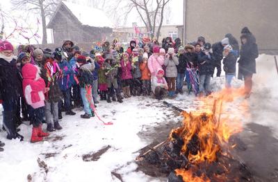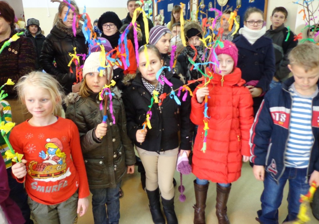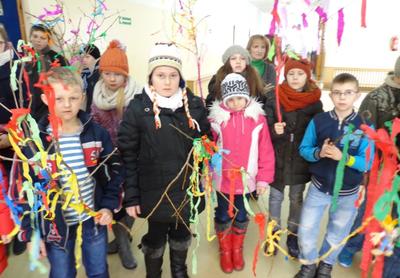 w Zespole Szkoły Podstawowej i Przedszkola w Pakosławiu były podporządkowane żegnaniu zimy i witaniu wiosny. Było to tym bardziej uzasadnione, że zima nie chce opuścić naszego kraju. Od rana miotały nami niepewności wynikające z pogody, ale ostatecznie postanowiliśmy nie przekładać zaplanowanych zajęć, a jedynie ograniczyć do minimum pobyt