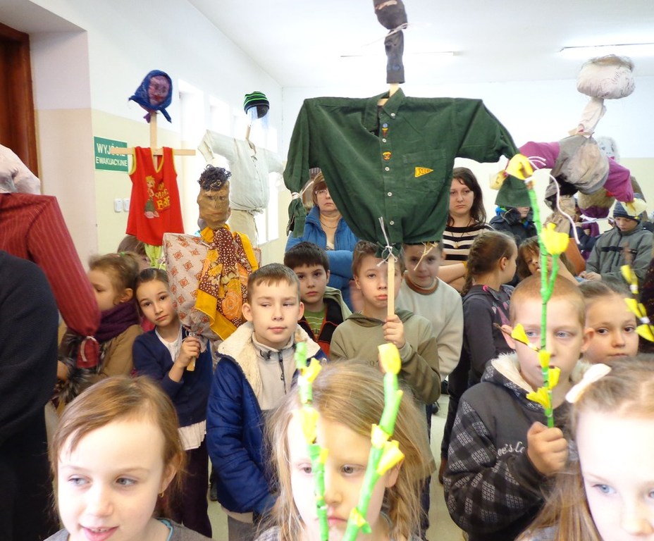 Dla uczniów klas IV-VI przygotowany był quiz pt: ,,Kilka słów o Marzannie.” Odbył się też konkurs wiedzy, w którym biorący udział musieli wykazać się znajomością tradycji związanych z wchodzeniem słońca w znak Barana. Były również: krzyżówki, zagadki, prace plastyczne i konstrukcyjne. Na koniec każdy oddział przygotował rymowanki, okrzyki i hasła, z którymi wyszliśmy spalić Marzanny, a powitać wiosnę gaikami. W klasach młodszych i przedszkolu przeprowadzone były całe bloki tematycznie, które pozwoliły połączyć realizację podstawy programowej, z nauką poprzez zabawę. W środę 27marca zostaną ogłoszone wyniki konkursów, a zwycięzcy otrzymają drobne upominki.