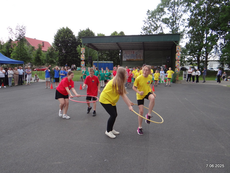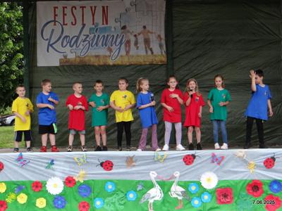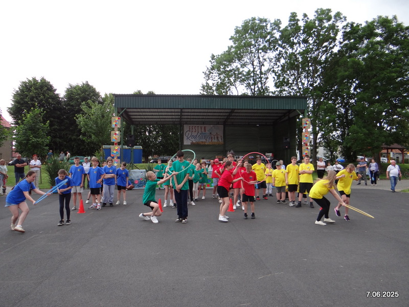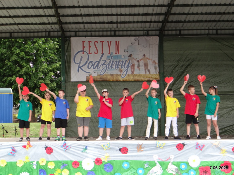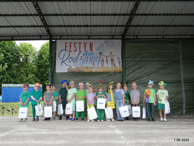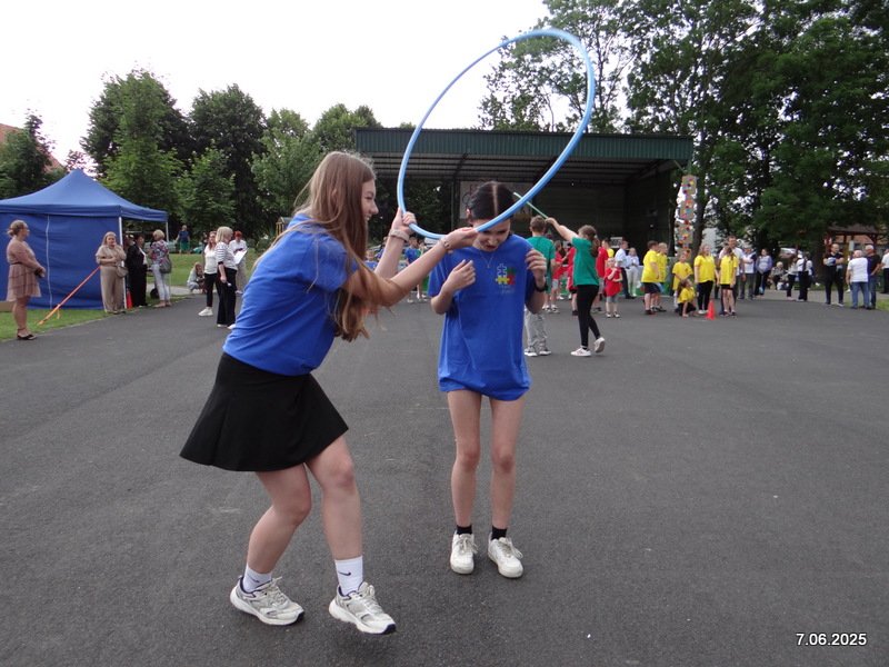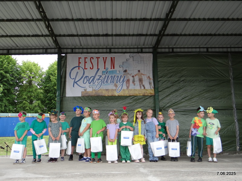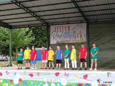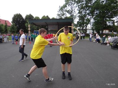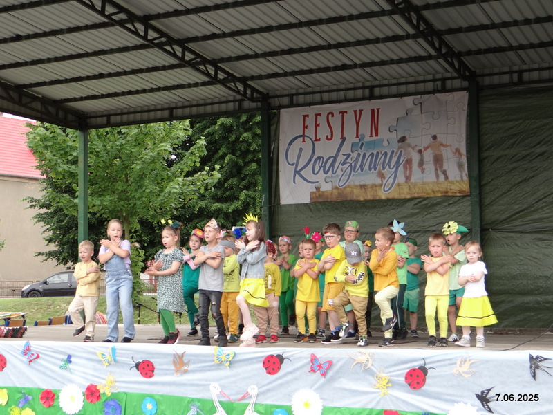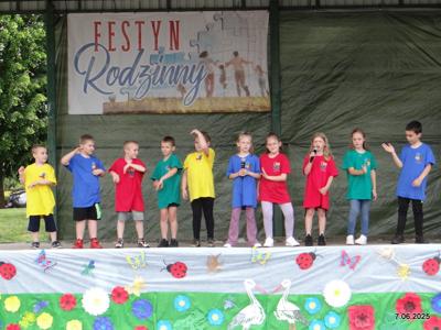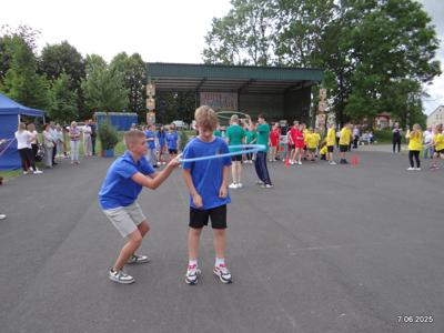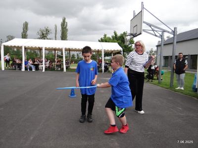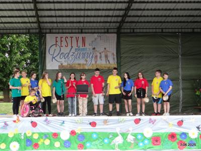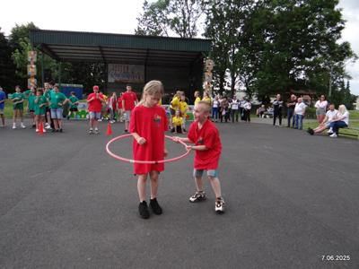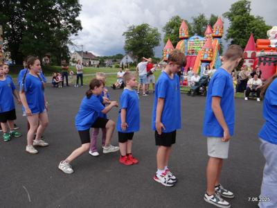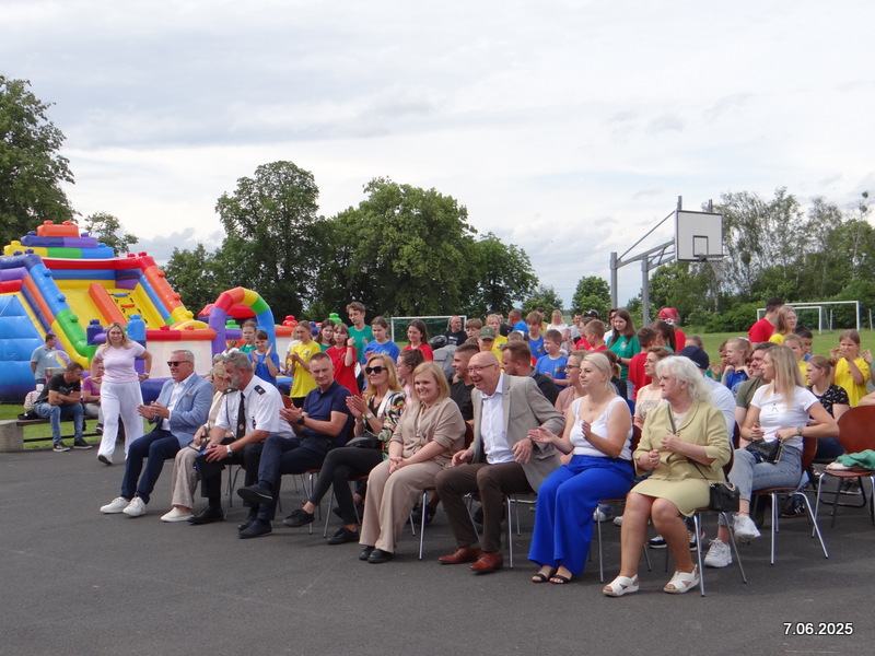 W sobotę 07.06.2025r. odbył się Festyn rodzinny zorganizowany przez Radę Pedagogiczną i Radę Rodziców. Uroczystego otwarcia festynu dokonał Dyrektor Zespołu pan Radosław Musiał. Na scenie wystąpiły przedszkolaki w przedstawieniu pt. „Cała łąka dla mamy i taty” przygotowanym przez panie: Monikę Kufel i Annę Przybył. Laureaci szkolnego konkursu recytatorskiego klas I-III przygotowanego przez panie: Joannę Czapracką, Małgorzatę Kucharską i Katarzynę Nowak przedstawili wybrane wiersze. Starsi uczniowie przy wsparciu p. Joanny Czaprackiej zagrali na instrumentach do znanych melodii muzyki klasycznej, zaśpiewali i po raz pierwszy pokazali swoje umiejętności gry na ukulele. Jakub Landy laureat konkursu „ Zachwyceni zabytkami” zorganizowanym przez Powiatową Bibliotekę Publiczną w Nowym Tomyślu wygłosił swój wiersz pt. „Moje miejsce”. Społeczność uczniowska podzielona na zespoły w czterech kolorach wzięła udział w rywalizacjach sportowych prowadzonych przez panią Małgorzatę Kucharską i pana Grzegorza Raczkowiaka. Rada Rodziców przeprowadziła loterię fantową. Wszyscy mogli skorzystać z atrakcji przygotowanych na boisku, dzięki wsparciu rady rodziców, lokalnych stowarzyszeń i sponsorów. Mimo kapryśnej pogody wszyscy z uśmiechem na twarzy spędzili sobotnie popołudnie.