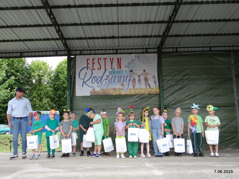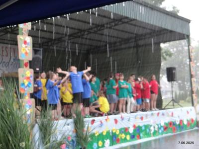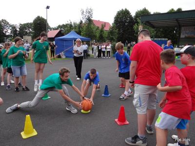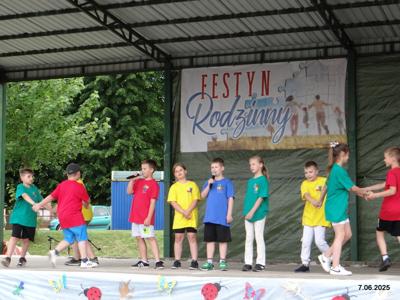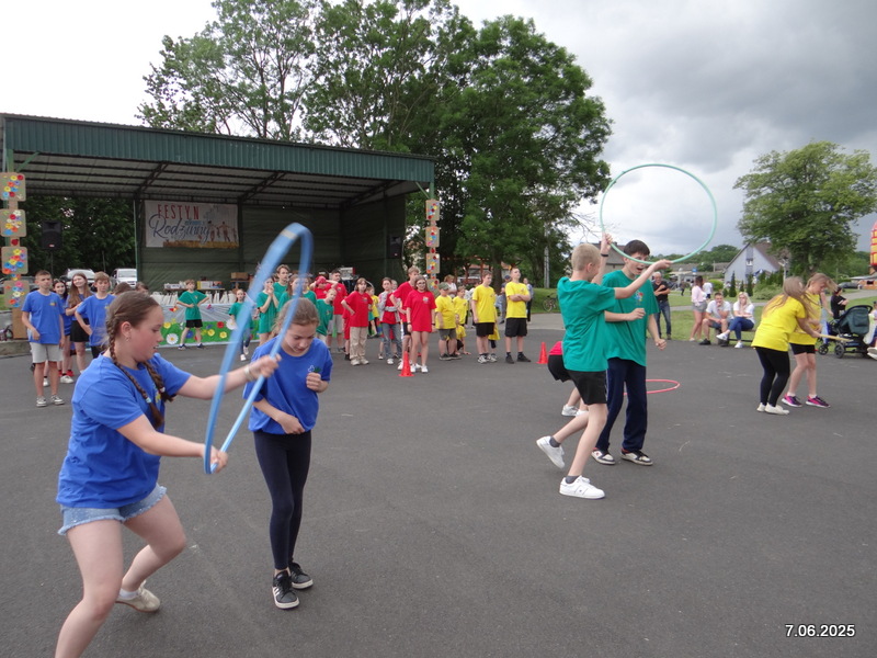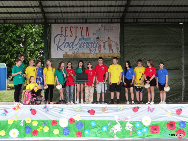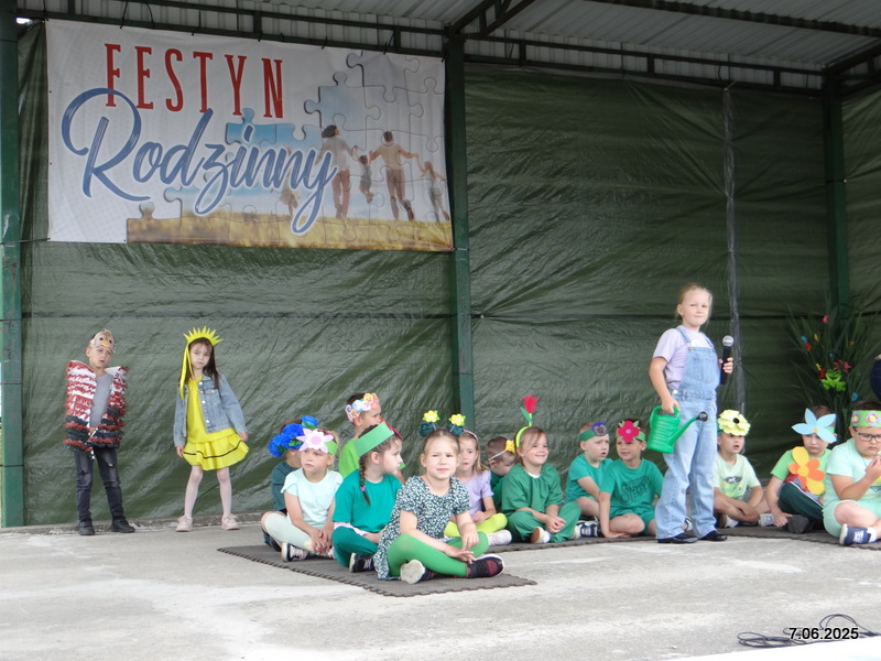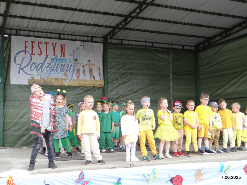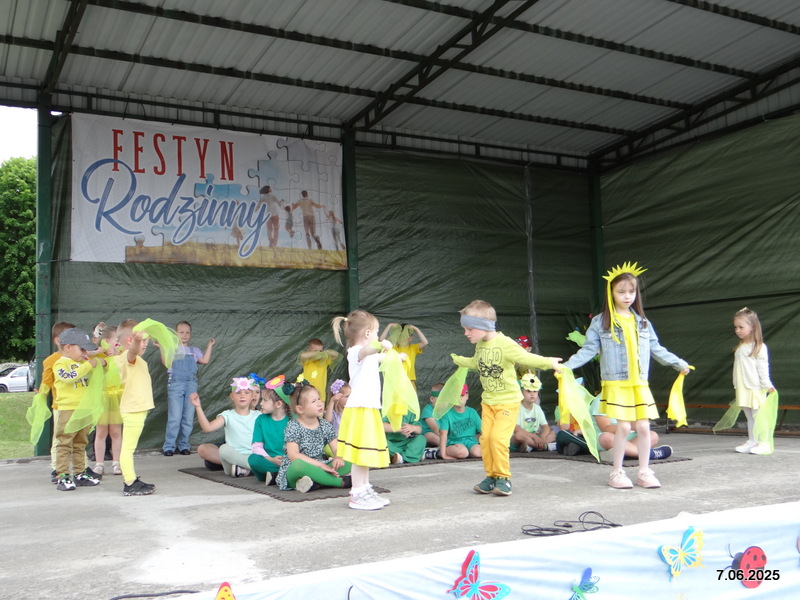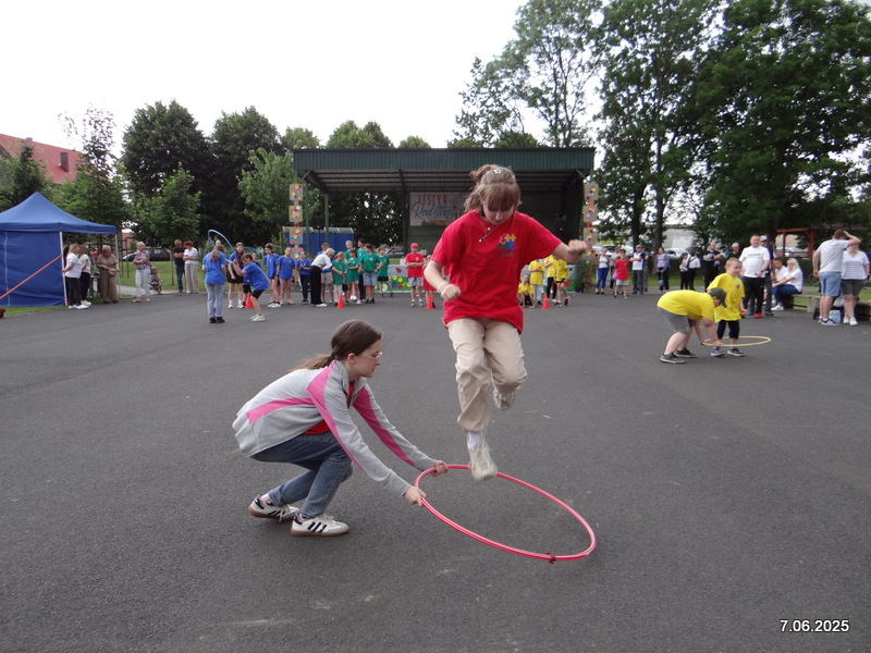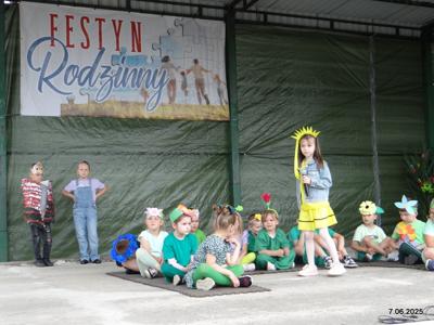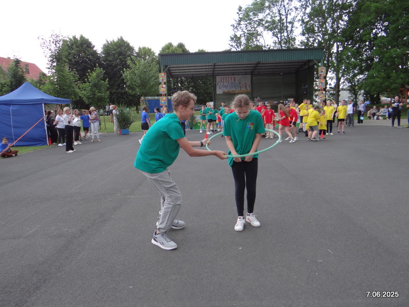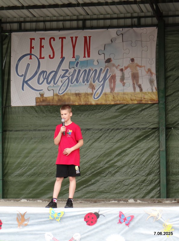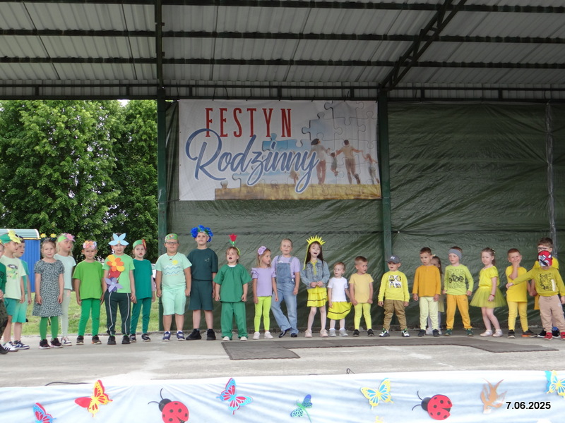 W sobotę 07.06.2025r. odbył się Festyn rodzinny zorganizowany przez Radę Pedagogiczną i Radę Rodziców. Uroczystego otwarcia festynu dokonał Dyrektor Zespołu pan Radosław Musiał. Na scenie wystąpiły przedszkolaki w przedstawieniu pt. „Cała łąka dla mamy i taty” przygotowanym przez panie: Monikę Kufel i Annę Przybył. Laureaci szkolnego konkursu recytatorskiego klas I-III przygotowanego przez panie: Joannę Czapracką, Małgorzatę Kucharską i Katarzynę Nowak przedstawili wybrane wiersze. Starsi uczniowie przy wsparciu p. Joanny Czaprackiej zagrali na instrumentach do znanych melodii muzyki klasycznej, zaśpiewali i po raz pierwszy pokazali swoje umiejętności gry na ukulele. Jakub Landy laureat konkursu „ Zachwyceni zabytkami” zorganizowanym przez Powiatową Bibliotekę Publiczną w Nowym Tomyślu wygłosił swój wiersz pt. „Moje miejsce”. Społeczność uczniowska podzielona na zespoły w czterech kolorach wzięła udział w rywalizacjach sportowych prowadzonych przez panią Małgorzatę Kucharską i pana Grzegorza Raczkowiaka. Rada Rodziców przeprowadziła loterię fantową. Wszyscy mogli skorzystać z atrakcji przygotowanych na boisku, dzięki wsparciu rady rodziców, lokalnych stowarzyszeń i sponsorów. Mimo kapryśnej pogody wszyscy z uśmiechem na twarzy spędzili sobotnie popołudnie.