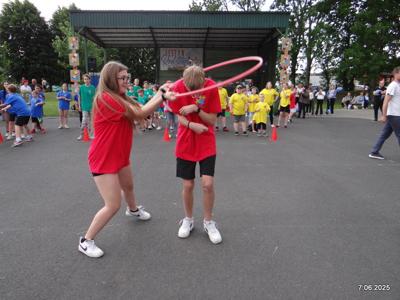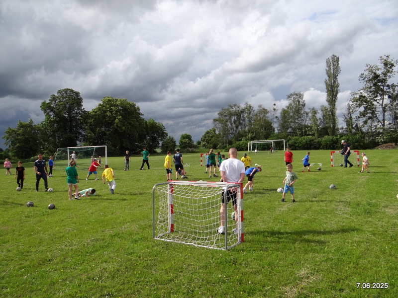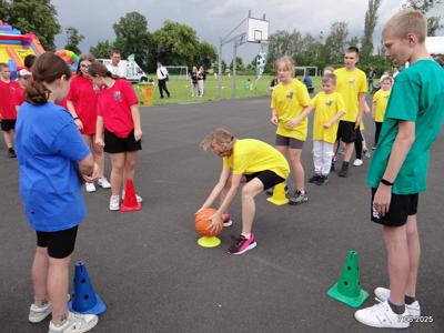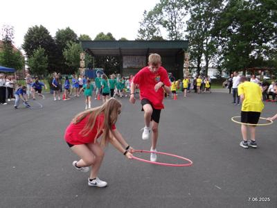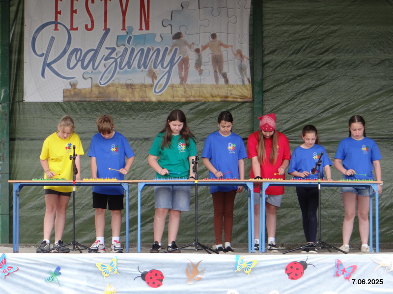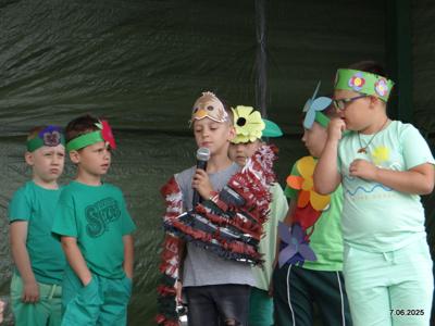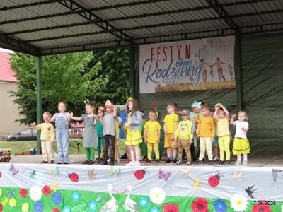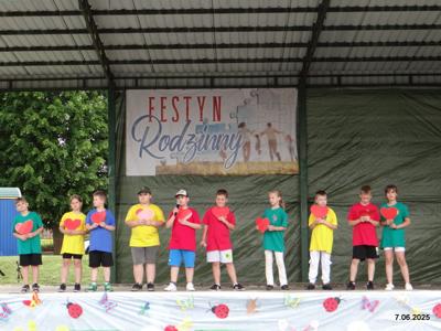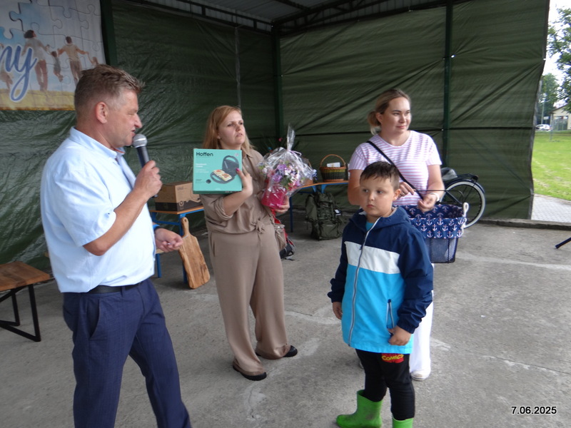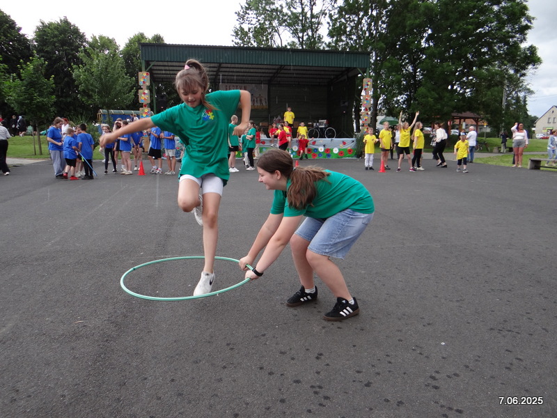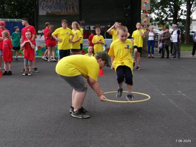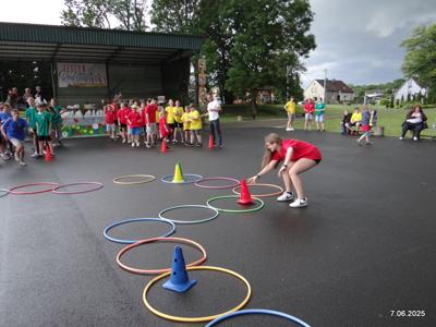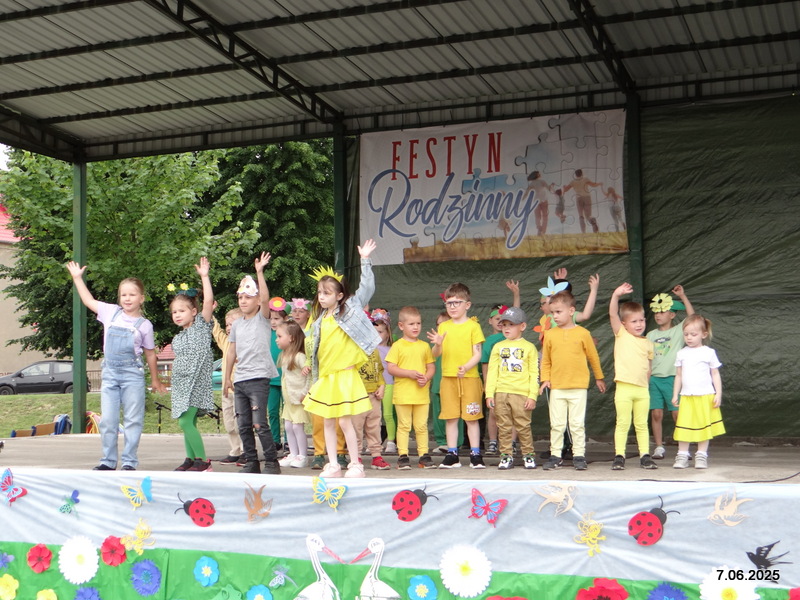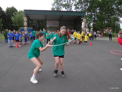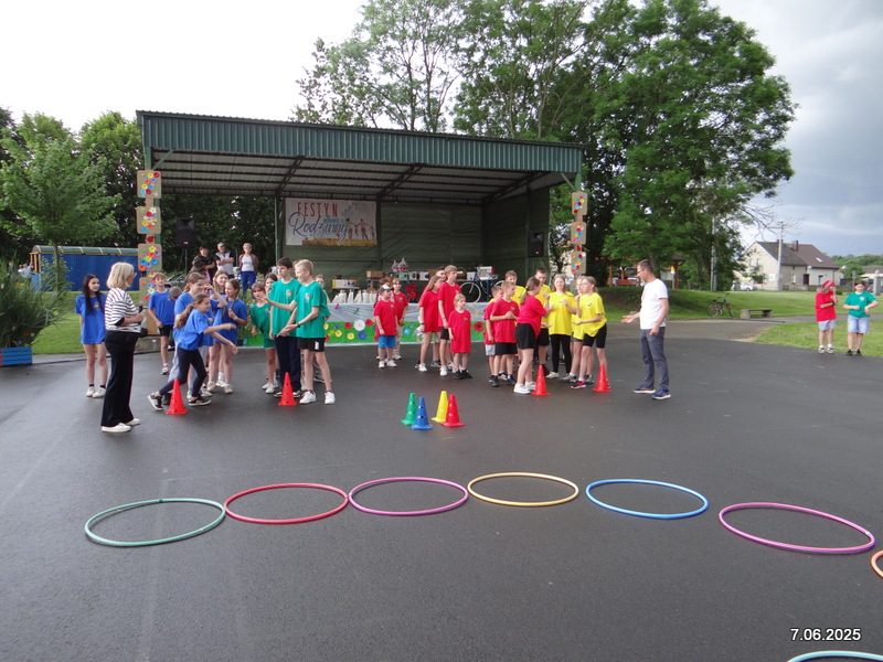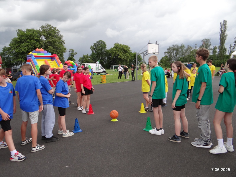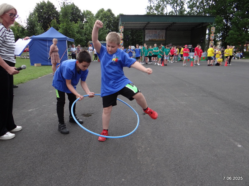 W sobotę 07.06.2025r. odbył się Festyn rodzinny zorganizowany przez Radę Pedagogiczną i Radę Rodziców. Uroczystego otwarcia festynu dokonał Dyrektor Zespołu pan Radosław Musiał. Na scenie wystąpiły przedszkolaki w przedstawieniu pt. „Cała łąka dla mamy i taty” przygotowanym przez panie: Monikę Kufel i Annę Przybył. Laureaci szkolnego konkursu recytatorskiego klas I-III przygotowanego przez panie: Joannę Czapracką, Małgorzatę Kucharską i Katarzynę Nowak przedstawili wybrane wiersze. Starsi uczniowie przy wsparciu p. Joanny Czaprackiej zagrali na instrumentach do znanych melodii muzyki klasycznej, zaśpiewali i po raz pierwszy pokazali swoje umiejętności gry na ukulele. Jakub Landy laureat konkursu „ Zachwyceni zabytkami” zorganizowanym przez Powiatową Bibliotekę Publiczną w Nowym Tomyślu wygłosił swój wiersz pt. „Moje miejsce”. Społeczność uczniowska podzielona na zespoły w czterech kolorach wzięła udział w rywalizacjach sportowych prowadzonych przez panią Małgorzatę Kucharską i pana Grzegorza Raczkowiaka. Rada Rodziców przeprowadziła loterię fantową. Wszyscy mogli skorzystać z atrakcji przygotowanych na boisku, dzięki wsparciu rady rodziców, lokalnych stowarzyszeń i sponsorów. Mimo kapryśnej pogody wszyscy z uśmiechem na twarzy spędzili sobotnie popołudnie.