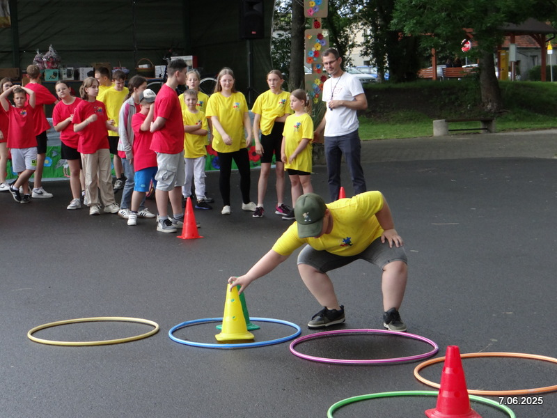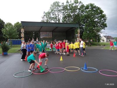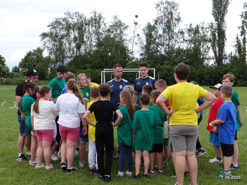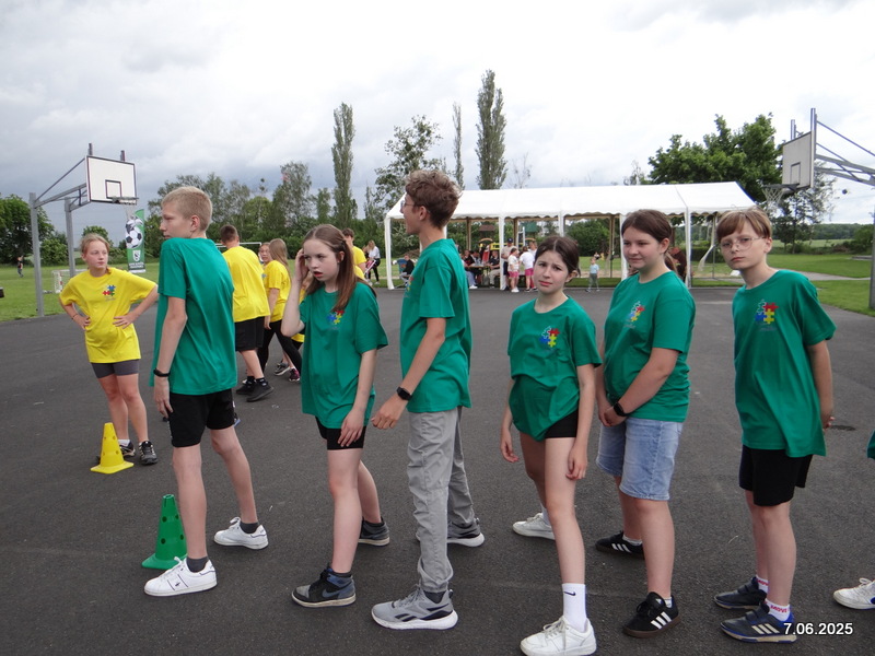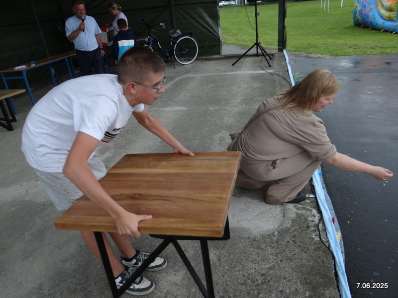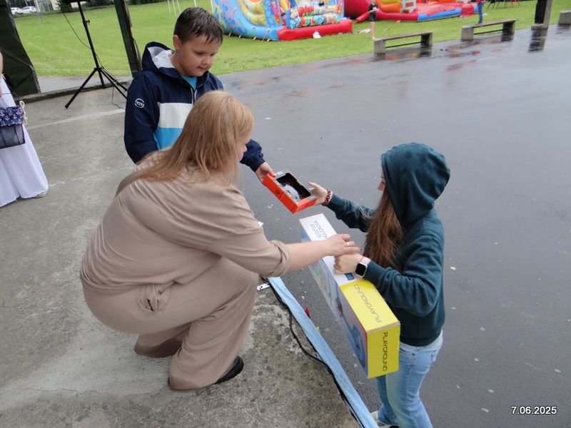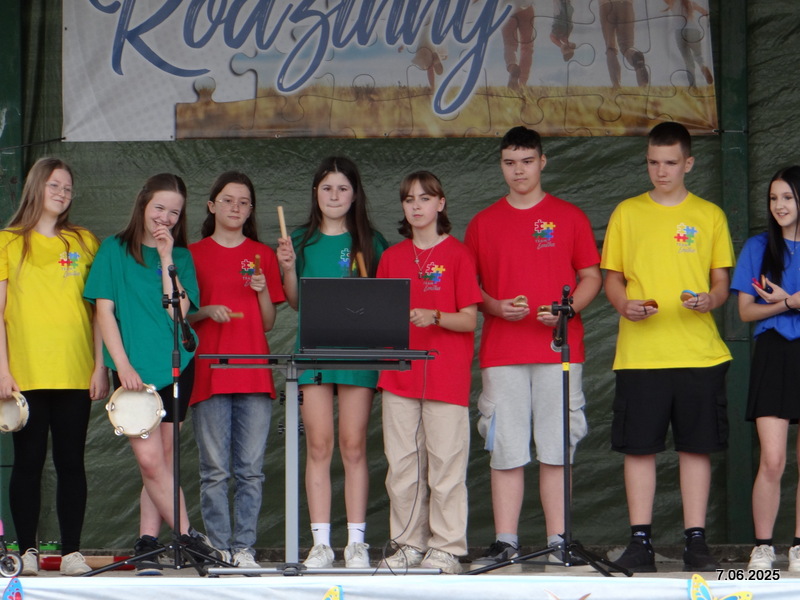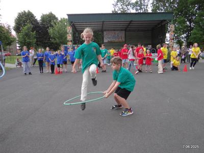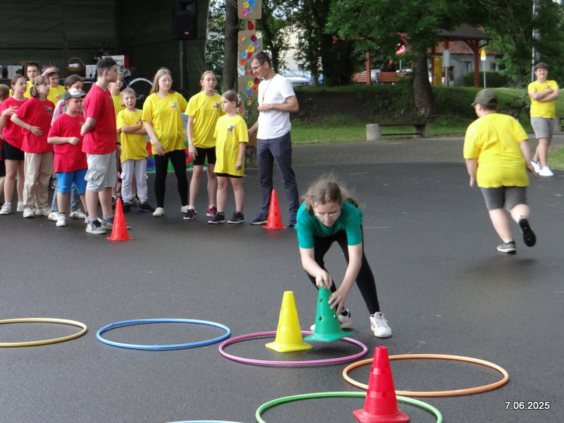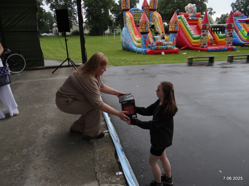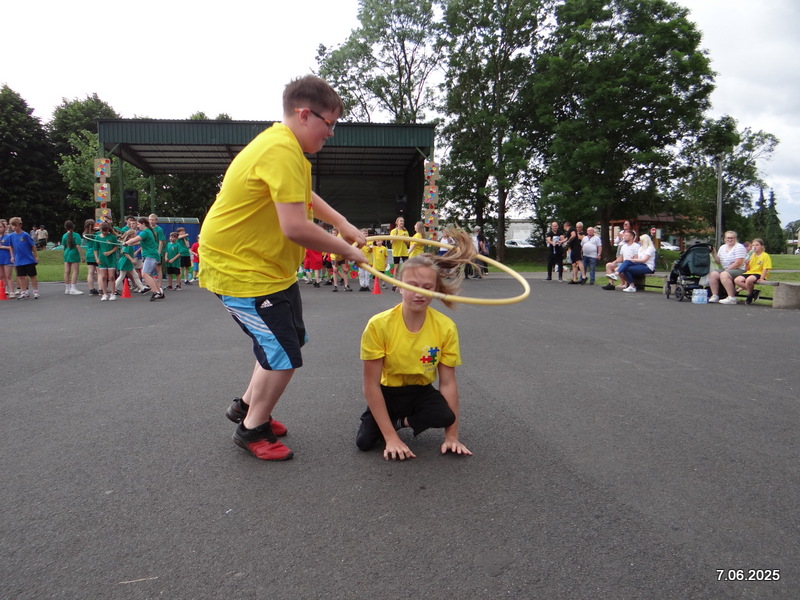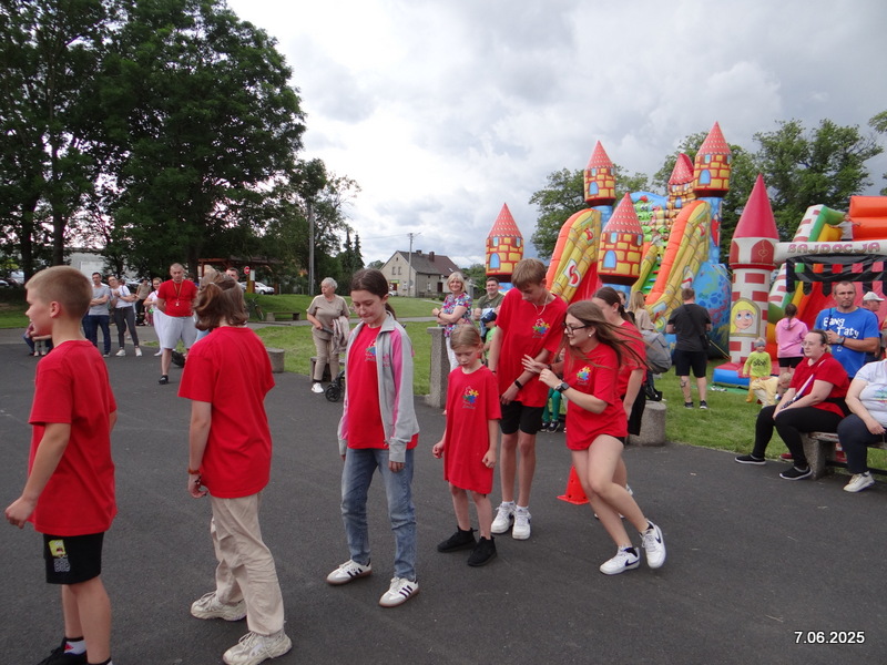 W sobotę 07.06.2025r. odbył się Festyn rodzinny zorganizowany przez Radę Pedagogiczną i Radę Rodziców. Uroczystego otwarcia festynu dokonał Dyrektor Zespołu pan Radosław Musiał. Na scenie wystąpiły przedszkolaki w przedstawieniu pt. „Cała łąka dla mamy i taty” przygotowanym przez panie: Monikę Kufel i Annę Przybył. Laureaci szkolnego konkursu recytatorskiego klas I-III przygotowanego przez panie: Joannę Czapracką, Małgorzatę Kucharską i Katarzynę Nowak przedstawili wybrane wiersze. Starsi uczniowie przy wsparciu p. Joanny Czaprackiej zagrali na instrumentach do znanych melodii muzyki klasycznej, zaśpiewali i po raz pierwszy pokazali swoje umiejętności gry na ukulele. Jakub Landy laureat konkursu „ Zachwyceni zabytkami” zorganizowanym przez Powiatową Bibliotekę Publiczną w Nowym Tomyślu wygłosił swój wiersz pt. „Moje miejsce”. Społeczność uczniowska podzielona na zespoły w czterech kolorach wzięła udział w rywalizacjach sportowych prowadzonych przez panią Małgorzatę Kucharską i pana Grzegorza Raczkowiaka. Rada Rodziców przeprowadziła loterię fantową. Wszyscy mogli skorzystać z atrakcji przygotowanych na boisku, dzięki wsparciu rady rodziców, lokalnych stowarzyszeń i sponsorów. Mimo kapryśnej pogody wszyscy z uśmiechem na twarzy spędzili sobotnie popołudnie.