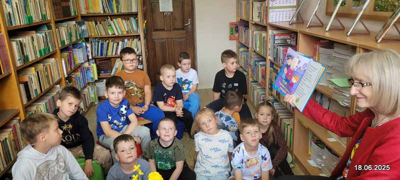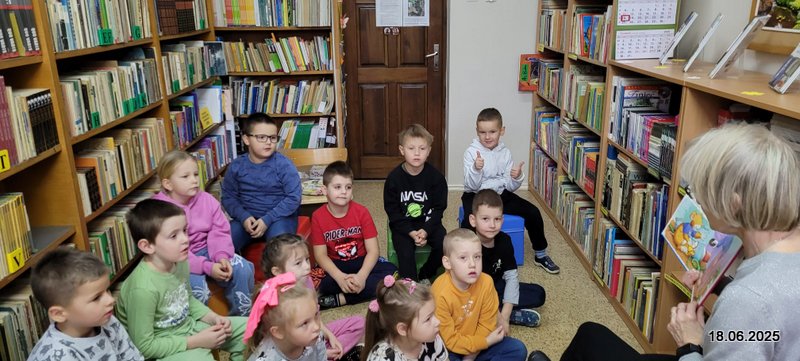 Przez cały rok szkolny, co miesiąc grupa starszaków odwiedzała bibliotekę szkolną, aby posłuchać bajek czytanych przez panią Ulkę Matuszewską. Były to przygody „ Tupcia Chrupcia”, podczas których dzieci poznawały sposoby radzenia sobie w różnych sytuacjach. „ Tajemnica zielonej skarpetki” i „Franklin i duch z jeziora”. Dzieci chętnie poznawały przygody bohaterów i uczestniczyły w rozmowach. Pani Ulka zadbała o słodkie niespodzianki na zakończenie spotkania.