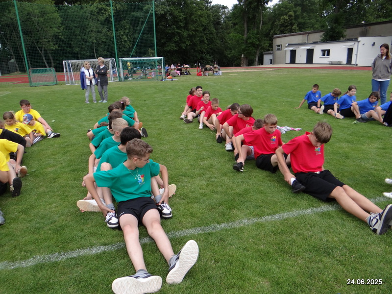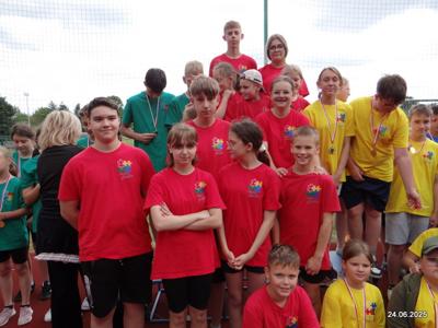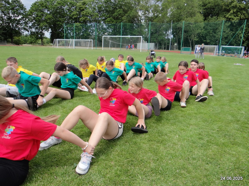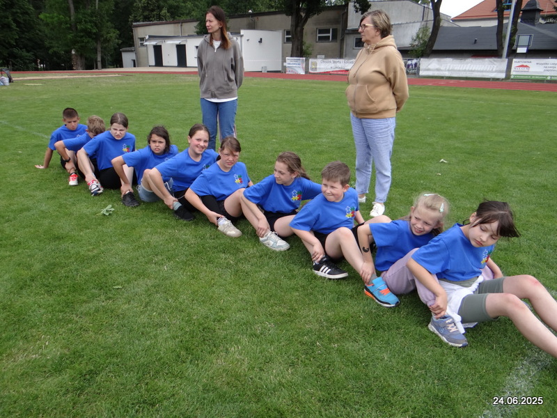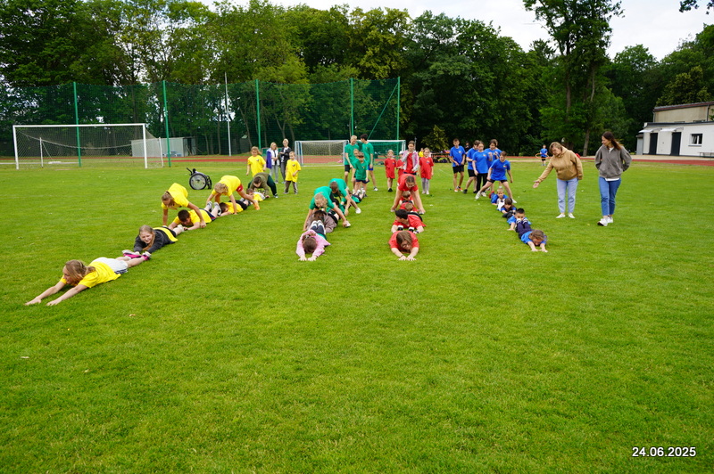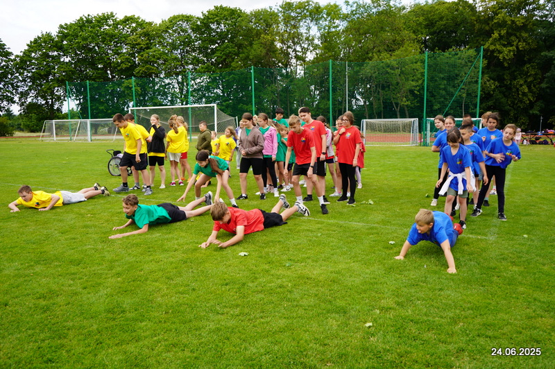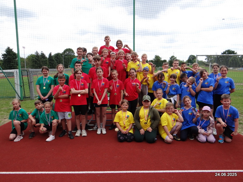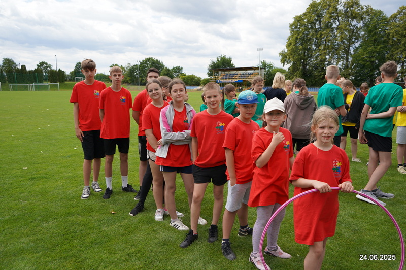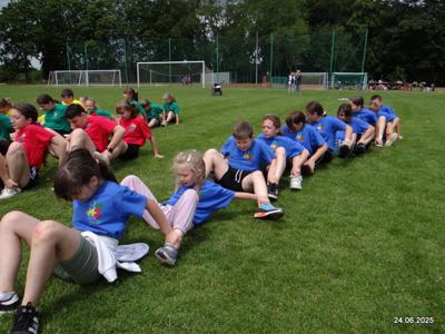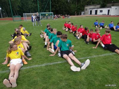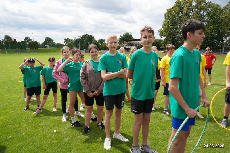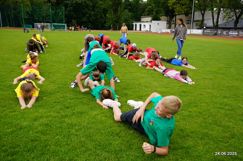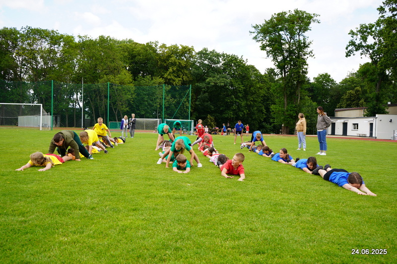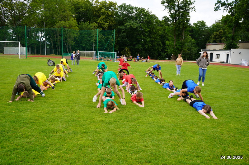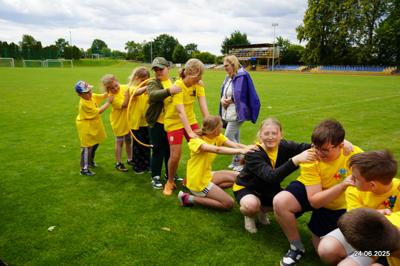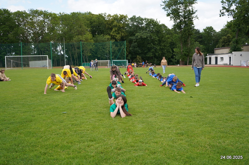 24 czerwca uczniowie naszej szkoły wzięli udział w Kolorowych Zmaganiach Sportowych. Dzieci podzielone na cztery kolory rywalizowały w konkurencjach lekkoatletycznych oraz zabawach sportowych tj.: wyścig gąsienic, wspinaczka czy zdobądź trzy piłki. Uczniowie z wielkim zaangażowaniem starali się o jak najlepsze wyniki dla swojej grupy. Najlepszą drużyną okazała się grupa czerwonych. Na koniec wszyscy uczniowie otrzymali pamiątkowe medale oraz słodki poczęstunek sponsorowany przez Radę Rodziców.
