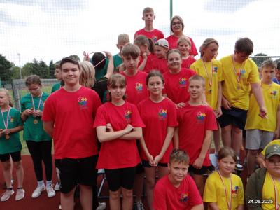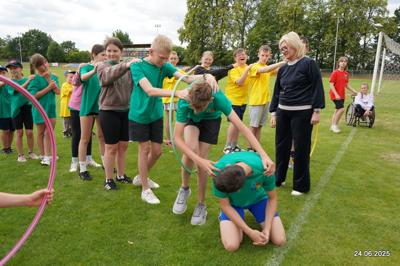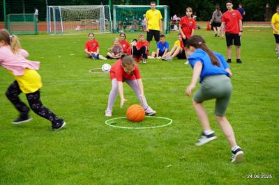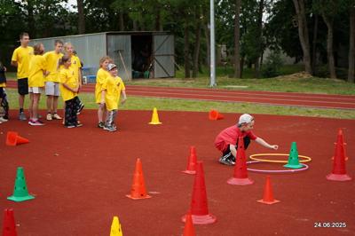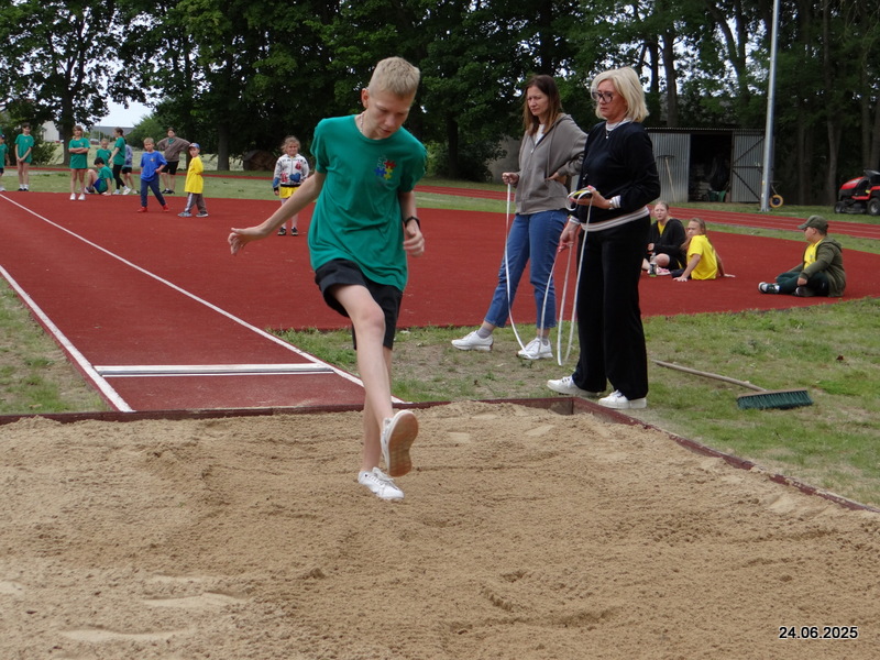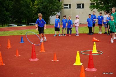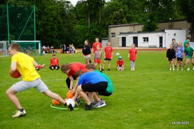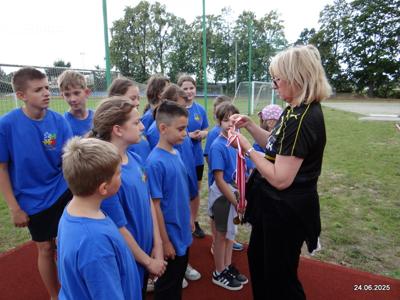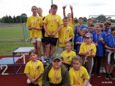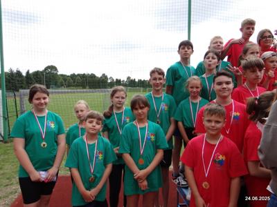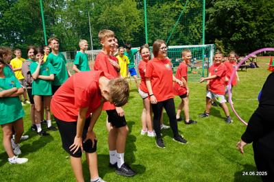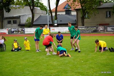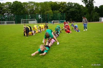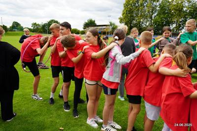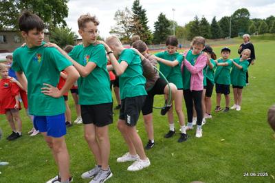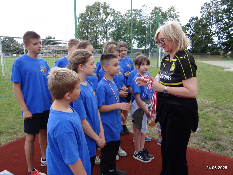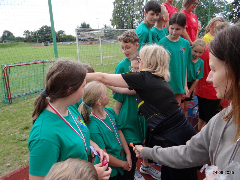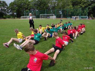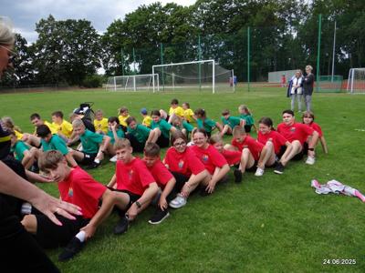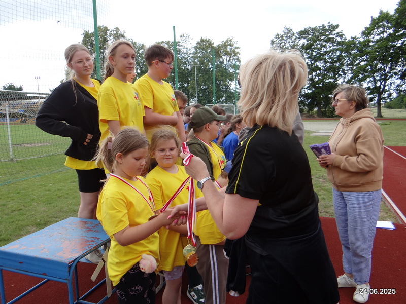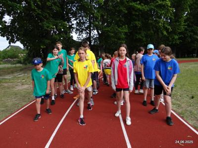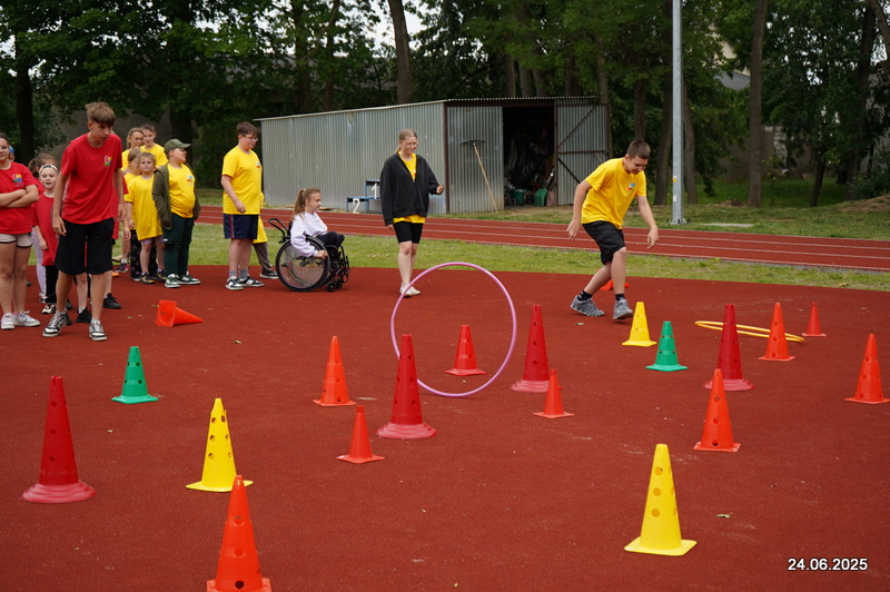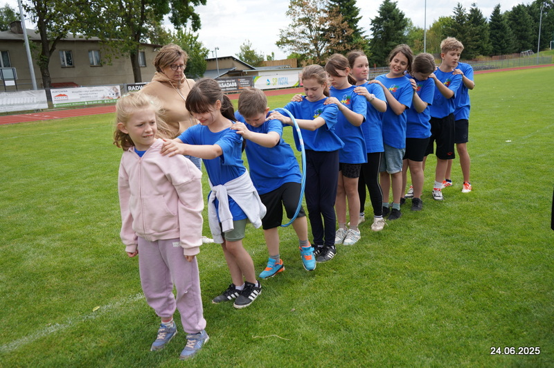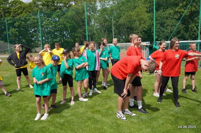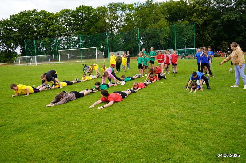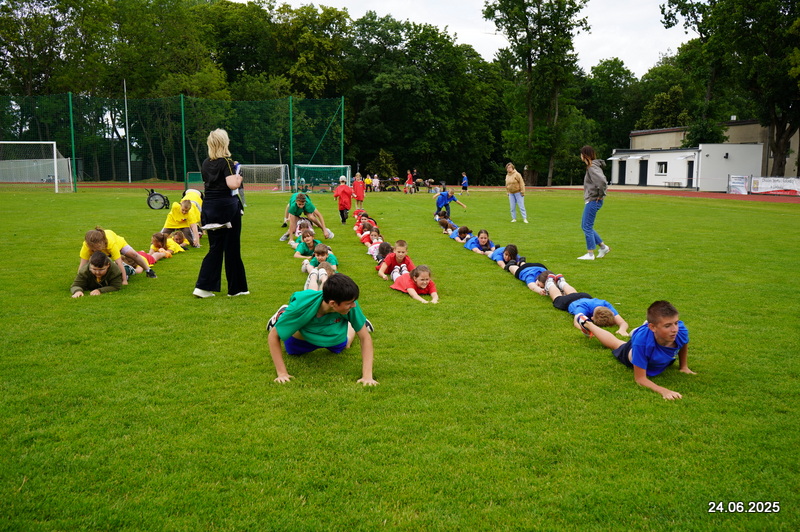 24 czerwca uczniowie naszej szkoły wzięli udział w Kolorowych Zmaganiach Sportowych. Dzieci podzielone na cztery kolory rywalizowały w konkurencjach lekkoatletycznych oraz zabawach sportowych tj.: wyścig gąsienic, wspinaczka czy zdobądź trzy piłki. Uczniowie z wielkim zaangażowaniem starali się o jak najlepsze wyniki dla swojej grupy. Najlepszą drużyną okazała się grupa czerwonych. Na koniec wszyscy uczniowie otrzymali pamiątkowe medale oraz słodki poczęstunek sponsorowany przez Radę Rodziców.
