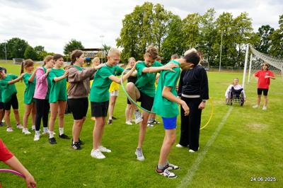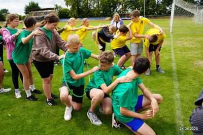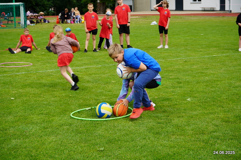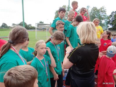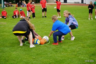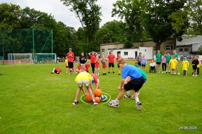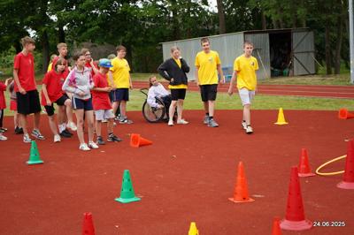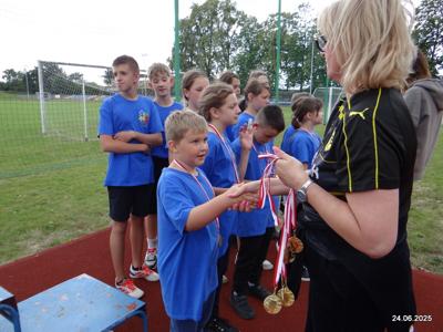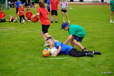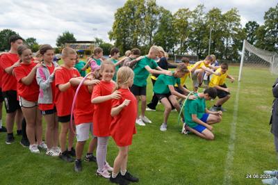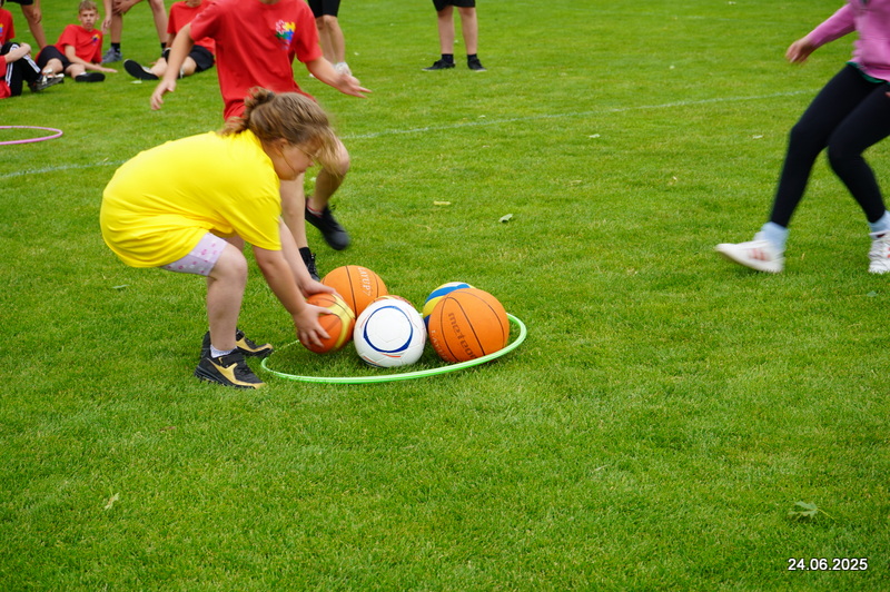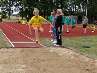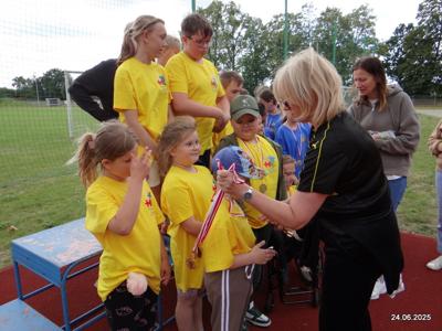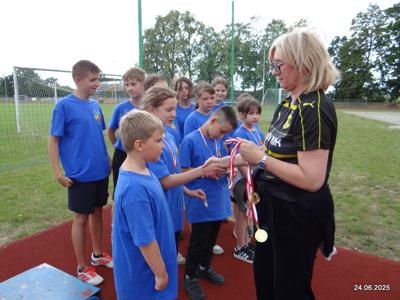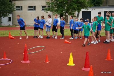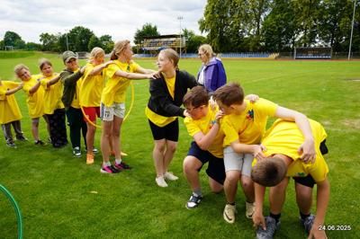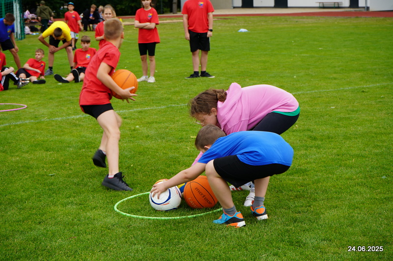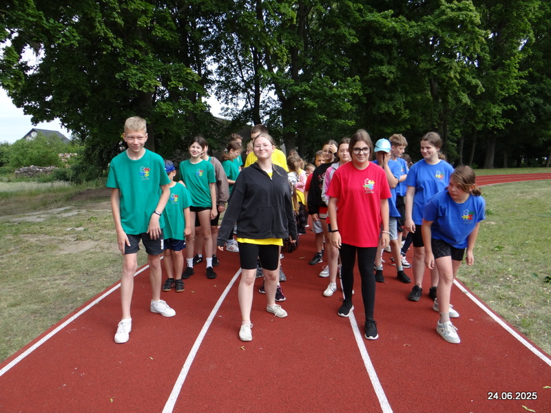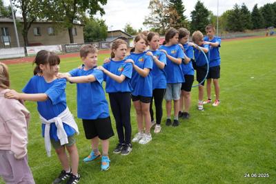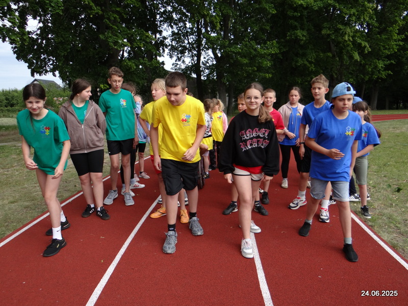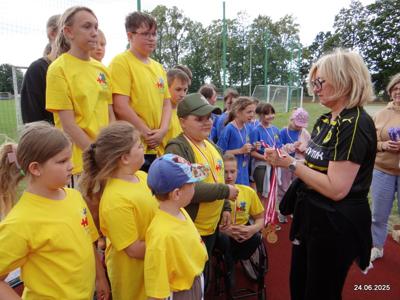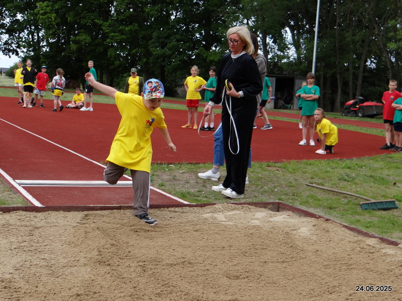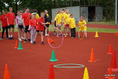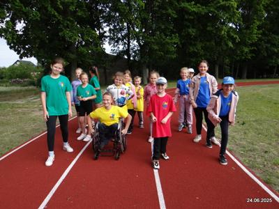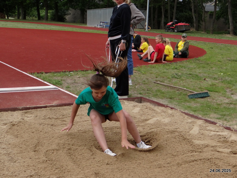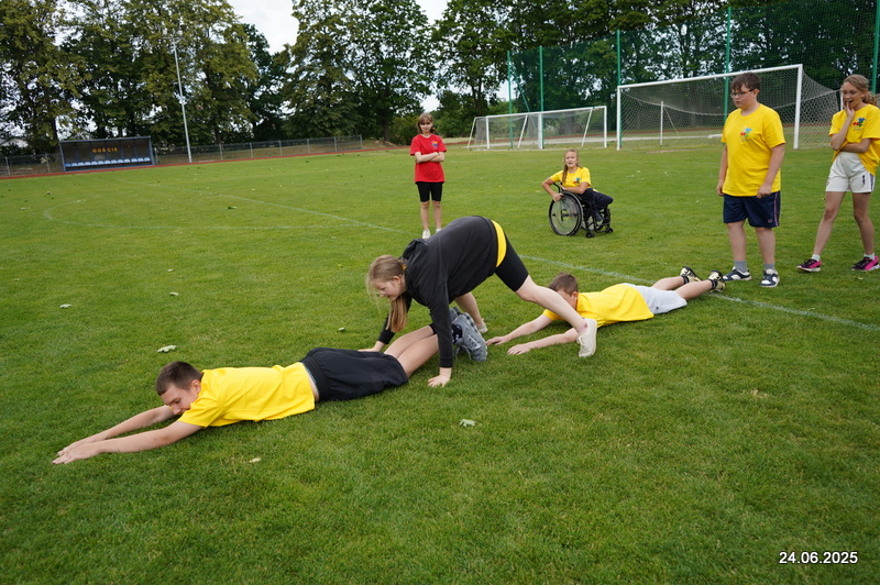 24 czerwca uczniowie naszej szkoły wzięli udział w Kolorowych Zmaganiach Sportowych. Dzieci podzielone na cztery kolory rywalizowały w konkurencjach lekkoatletycznych oraz zabawach sportowych tj.: wyścig gąsienic, wspinaczka czy zdobądź trzy piłki. Uczniowie z wielkim zaangażowaniem starali się o jak najlepsze wyniki dla swojej grupy. Najlepszą drużyną okazała się grupa czerwonych. Na koniec wszyscy uczniowie otrzymali pamiątkowe medale oraz słodki poczęstunek sponsorowany przez Radę Rodziców.