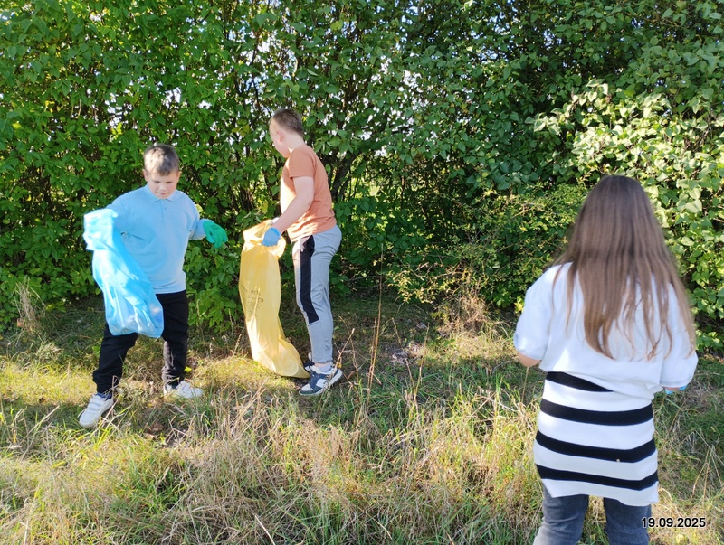 W dniu 19 września 2025r. odbyła się 32. akcja „Sprzątanie Świata” pod hasłem „W naturę z kulturą”. W wydarzeniu wziął udział cały Zespół Szkoły Podstawowej i Przedszkola