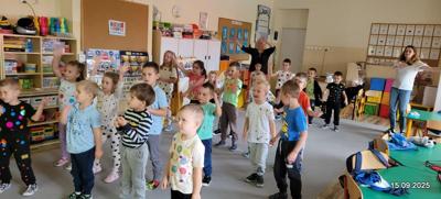Nie zabrakło również zabaw ruchowych, które pozwoliły dzieciom wyładować energię i świetnie się bawić w rytmie kropkowych aktywności.