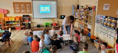 Dużo radości sprawiła także interaktywna książka „Naciśnij mnie”, w której przedszkolaki odkrywały magiczny świat kropek – sprawiając, że znikały, zmieniały kolory, a nawet nagle gasło światło, dodając zabawie niespodzianki i emocji.