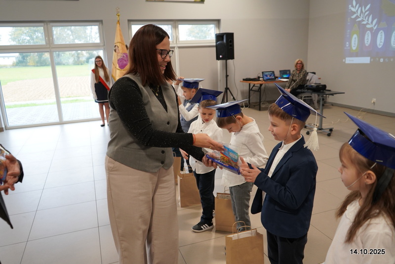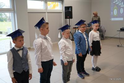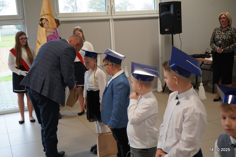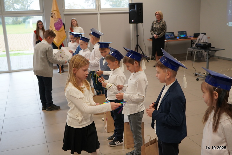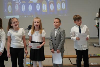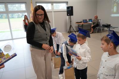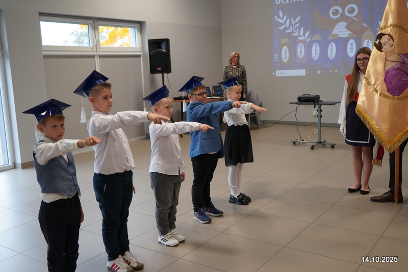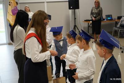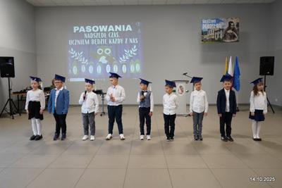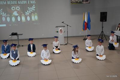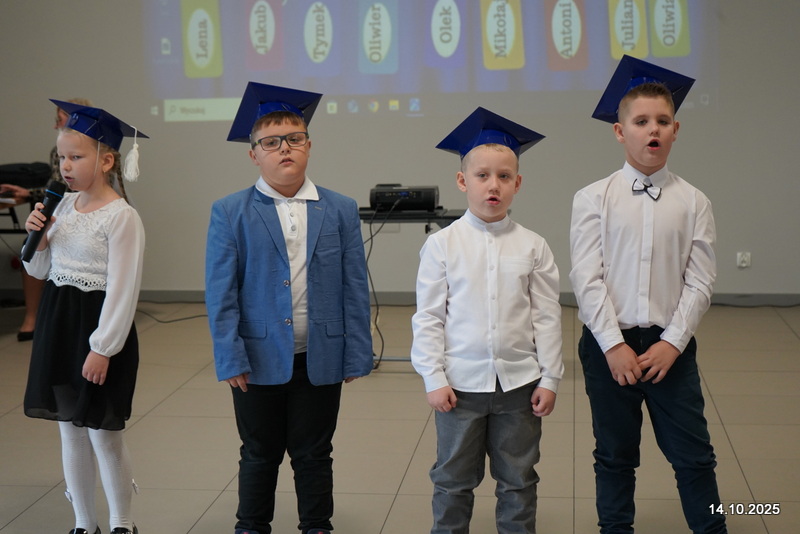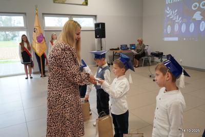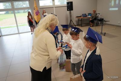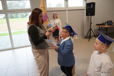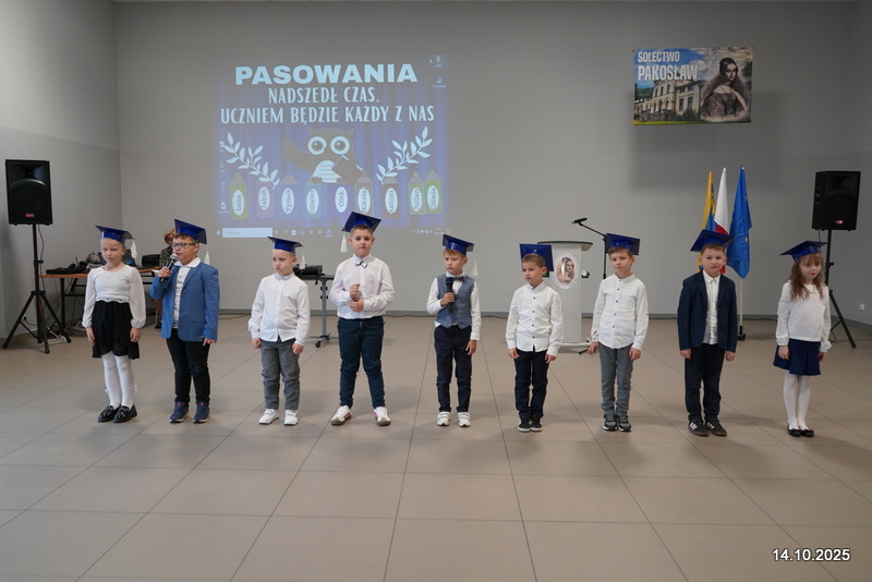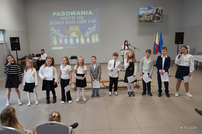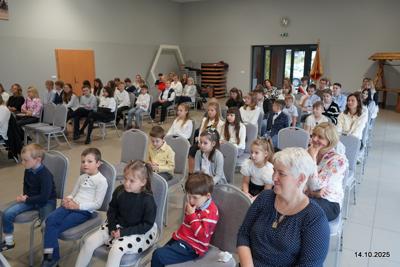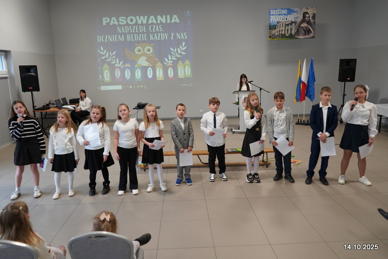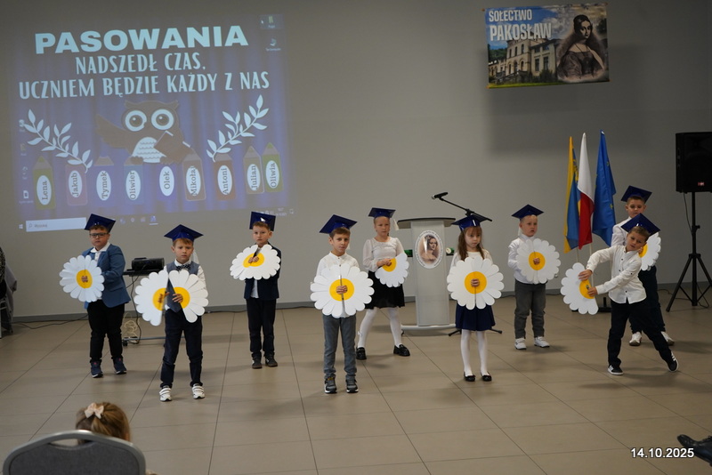 14 października 2025 roku obchodziliśmy w naszej szkole Dzień Edukacji Narodowej – wyjątkowe święto dedykowane wszystkim pracownikom oświaty. Z tej okazji uczniowie Zespołu Szkoły Podstawowej i Przedszkola im. Emilii Sczanieckiej w Pakosławiu przygotowali krótką, ale pełną ciepła i wdzięczności inscenizację, którą zaprezentowali przed całą społecznością szkolną. Podczas uroczystości miało również miejsce niezwykle ważne wydarzenie dla naszych najmłodszych uczniów – Uroczyste Pasowanie na Ucznia Klasy Pierwszej. Pan Dyrektor Radosław Musiał, przy pomocy magicznego ołówka, oficjalnie włączył pierwszoklasistów do grona uczniów naszej szkoły. Każde dziecko otrzymało pamiątkowy dyplom oraz swój pierwszy ważny dokument – legitymację szkolną. Pierwszoklasiści pod opieką wychowawczyni, Pani Moniki Kufel, zaprezentowali swoje umiejętności wokalne i taneczne, zdobywając serca publiczności. Nie zabrakło także pamiątkowego zdjęcia, które uwieczniło tę ważną chwilę w ich życiu szkolnym.