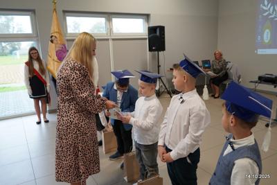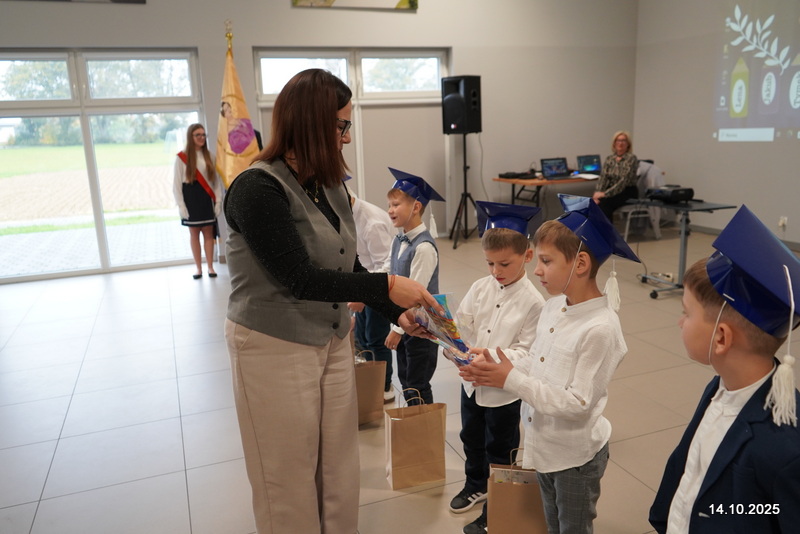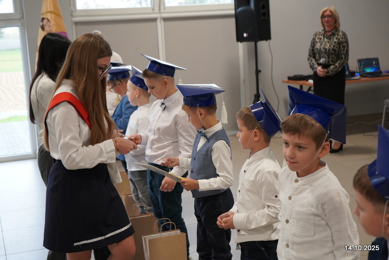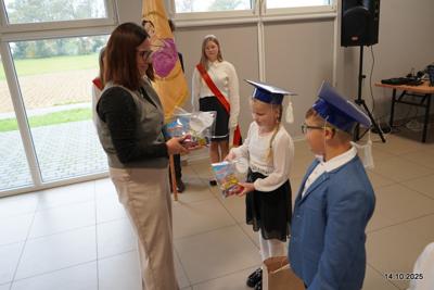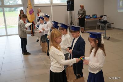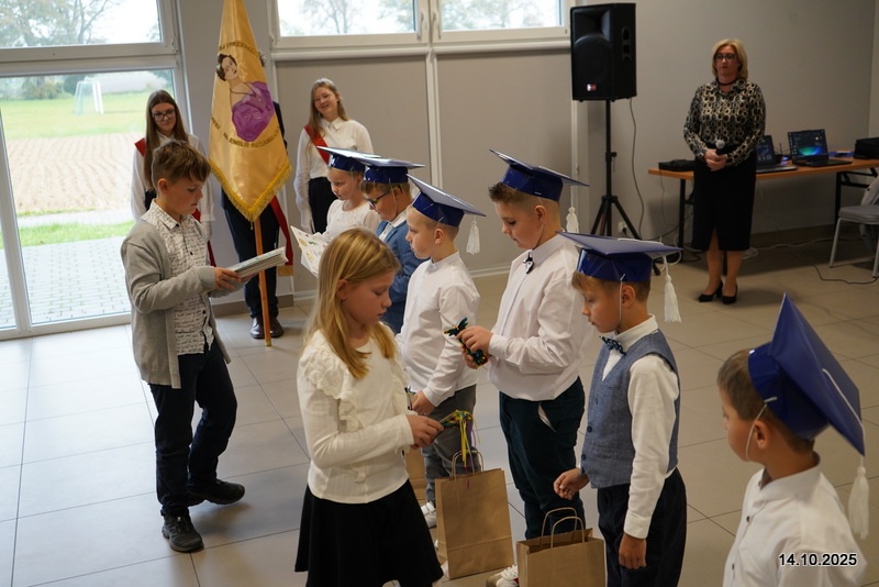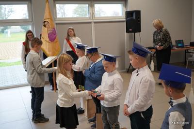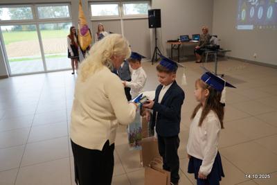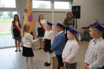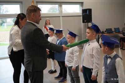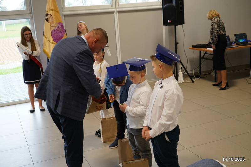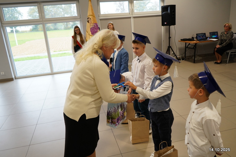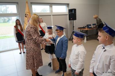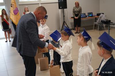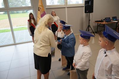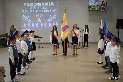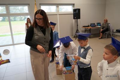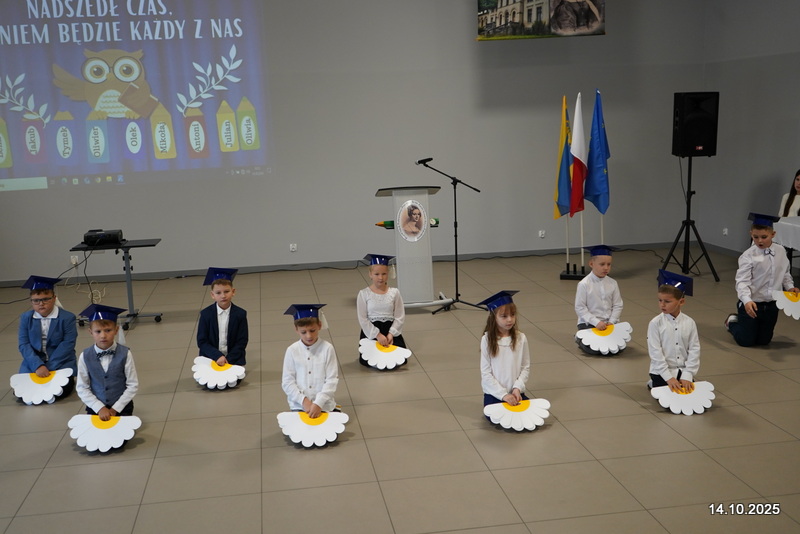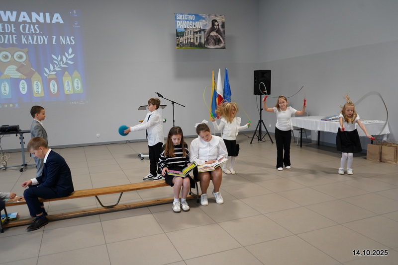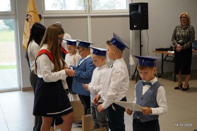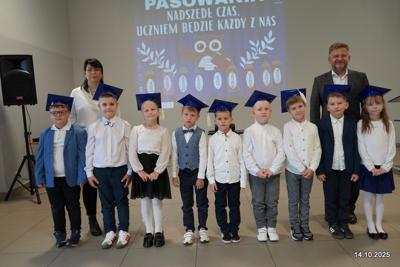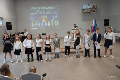 14 października 2025 roku obchodziliśmy w naszej szkole Dzień Edukacji Narodowej – wyjątkowe święto dedykowane wszystkim pracownikom oświaty. Z tej okazji uczniowie Zespołu Szkoły Podstawowej i Przedszkola im. Emilii Sczanieckiej w Pakosławiu przygotowali krótką, ale pełną ciepła i wdzięczności inscenizację, którą zaprezentowali przed całą społecznością szkolną. Podczas uroczystości miało również miejsce niezwykle ważne wydarzenie dla naszych najmłodszych uczniów – Uroczyste Pasowanie na Ucznia Klasy Pierwszej. Pan Dyrektor Radosław Musiał, przy pomocy magicznego ołówka, oficjalnie włączył pierwszoklasistów do grona uczniów naszej szkoły. Każde dziecko otrzymało pamiątkowy dyplom oraz swój pierwszy ważny dokument – legitymację szkolną. Pierwszoklasiści pod opieką wychowawczyni, Pani Moniki Kufel, zaprezentowali swoje umiejętności wokalne i taneczne, zdobywając serca publiczności. Nie zabrakło także pamiątkowego zdjęcia, które uwieczniło tę ważną chwilę w ich życiu szkolnym.
