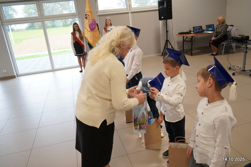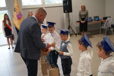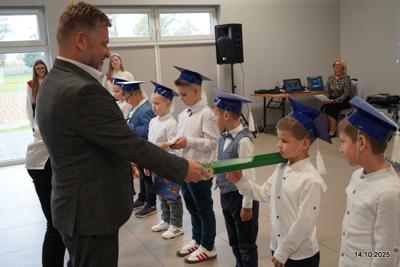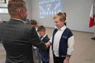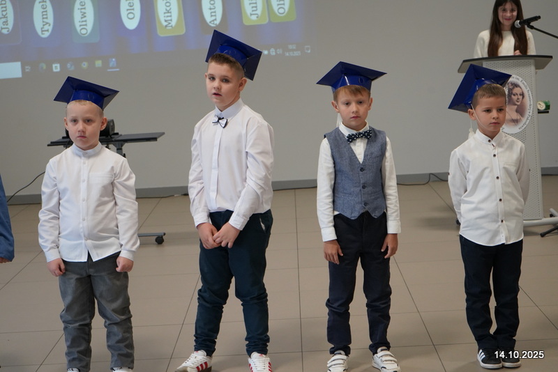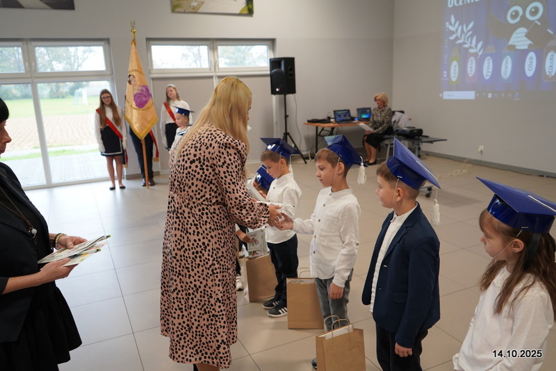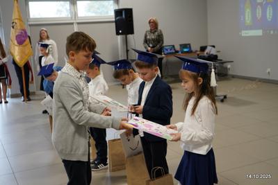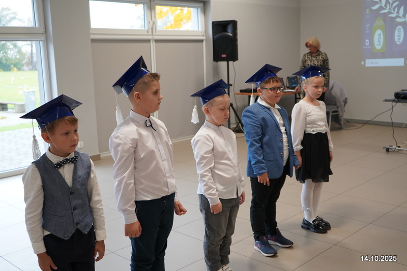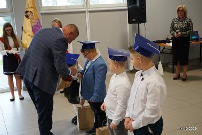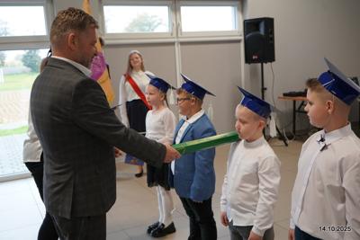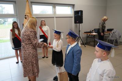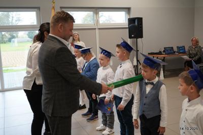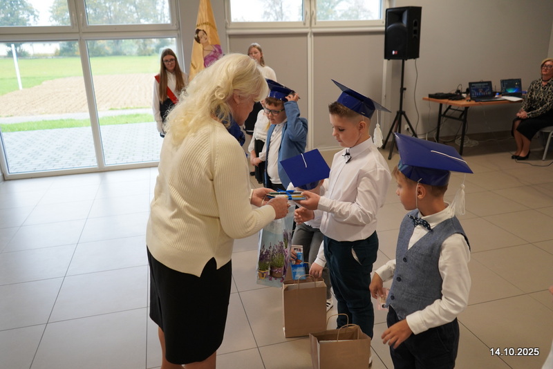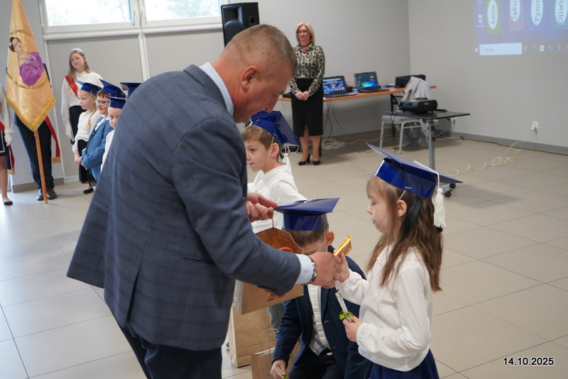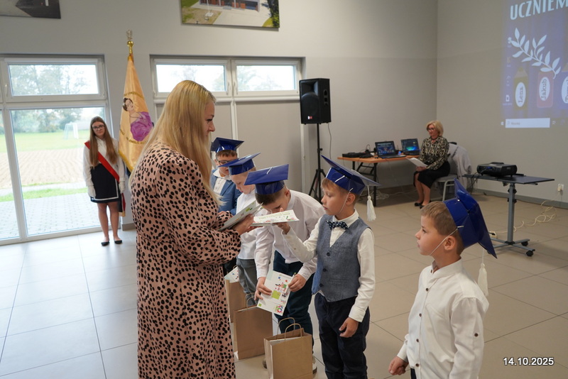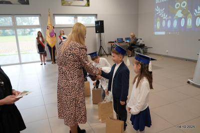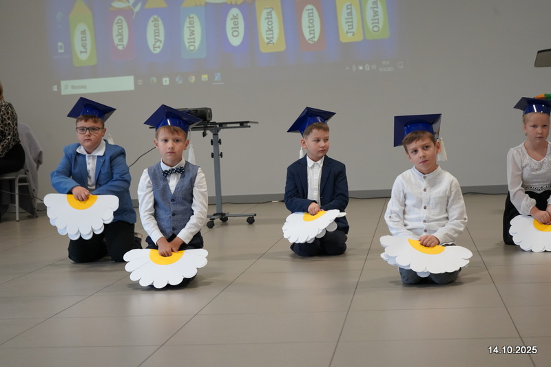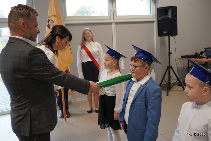 14 października 2025 roku obchodziliśmy w naszej szkole Dzień Edukacji Narodowej – wyjątkowe święto dedykowane wszystkim pracownikom oświaty. Z tej okazji uczniowie Zespołu Szkoły Podstawowej i Przedszkola im. Emilii Sczanieckiej w Pakosławiu przygotowali krótką, ale pełną ciepła i wdzięczności inscenizację, którą zaprezentowali przed całą społecznością szkolną. Podczas uroczystości miało również miejsce niezwykle ważne wydarzenie dla naszych najmłodszych uczniów – Uroczyste Pasowanie na Ucznia Klasy Pierwszej. Pan Dyrektor Radosław Musiał, przy pomocy magicznego ołówka, oficjalnie włączył pierwszoklasistów do grona uczniów naszej szkoły. Każde dziecko otrzymało pamiątkowy dyplom oraz swój pierwszy ważny dokument – legitymację szkolną. Pierwszoklasiści pod opieką wychowawczyni, Pani Moniki Kufel, zaprezentowali swoje umiejętności wokalne i taneczne, zdobywając serca publiczności. Nie zabrakło także pamiątkowego zdjęcia, które uwieczniło tę ważną chwilę w ich życiu szkolnym.
