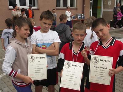 W sobotę 11 maja 2013 r. reprezentanci naszej szkoły: Wrembel Weronika, Lehmann Rafał, Janas Dawid i Matyjasik Kacper wzięli udział w XVIII Biegu Przełajowym im. E. Sczanieckiej w Michorzewie. Nasi uczniowie spisali się bardzo dobrze, gdyż wszyscy w swoich biegach zdobyli punkty w kategorii zespołowej. Na podium znaleźli się: Dawid Janas zdobywając II miejsce i Kacper Matyjasik - III miejsce. Weronika uplasowała się na VI pozycji a Rafał na V. Dziękujemy naszym uczniom, przede wszystkim za uczestnictwo w biegu, jak i wysokie miejsca.