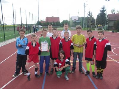Na zaproszenie Wójta Dusznik i Dyrektora Gimnazjum w Dusznikach, uczniowie naszej szkoły wzięli udział w turnieju piłki nożnej " Trzech Gmin". Turniej został przeprowadzony z okazji otwarcia obiektu sportowego "ORLIK 2012". W turnieju nasza drużyna w składzie: Weronika Wrembel, Hała Kacper, Stachowiak Marcin, Lehmann Rafał, Pilarczyk Patryk, Ochowiak Patryk, Fornalik Remigiusz, Matyjasik Kacper, Janas Dawid, Pustkowiak Alan, Pruszkowski Kacper i Stachowiak Jakub, zajęła III miejsce a statuetkę najlepszego bramkarza otrzymał Patryk Ochowiak.