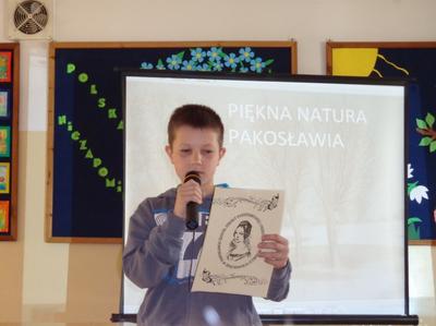 W tym roku tematem konkursu był „Piękna natura Pakosławia” W konkursie udział wzięli: Adrianna Kluge, Kinga Ratajczak, Nikola Ambroziak, Rafał Lechmann, Klaudia Ginter i Remigiusz Fornalik. Zanim ogłosiliśmy wyniki obejrzeliśmy zdjęcia konkursowe. Prezentację poprowadziła Amelia Kniat. Najlepszą pracą okazała się fotografia Nikoli Ambroziak z klasy 6, drugie miejsce zajął Remigiusz Fornalik. Trzecie miejsce zajęła Adrianna Kluge z klasy 4.