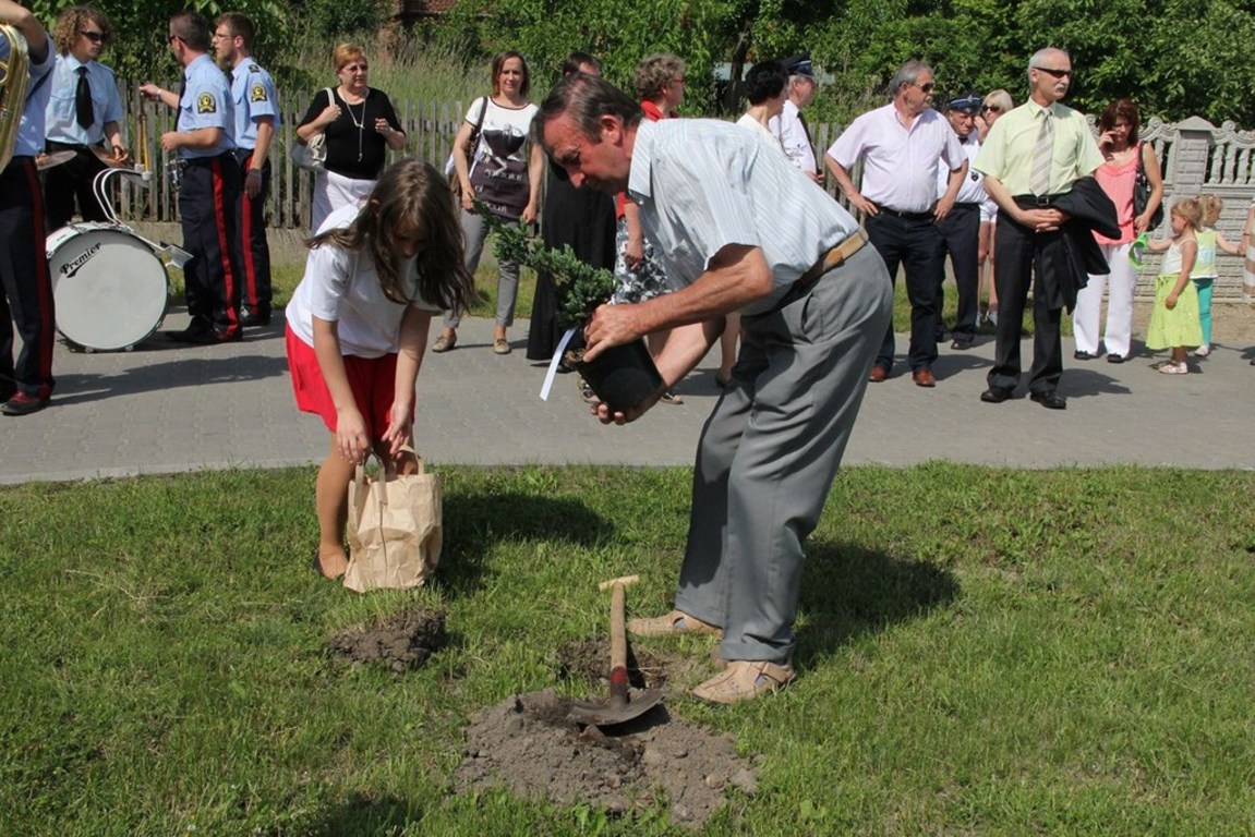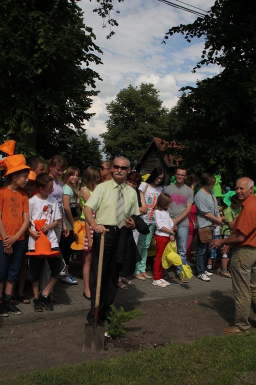 Na początku p. dyrektor Mirosława Buczkowska powitała zaproszonych gości oraz licznie zgromadzonych mieszkańców Pakosławia i okolic. Następnie wszyscy goście, uczniowie oraz mieszkańcy wyruszyli na przemarsz barwnego korowodu prowadzonego przez Orkiestrę Dętą ze Lwówka. Po przemarszu goście na terenie szkoły posadzili drzewka i krzewy.