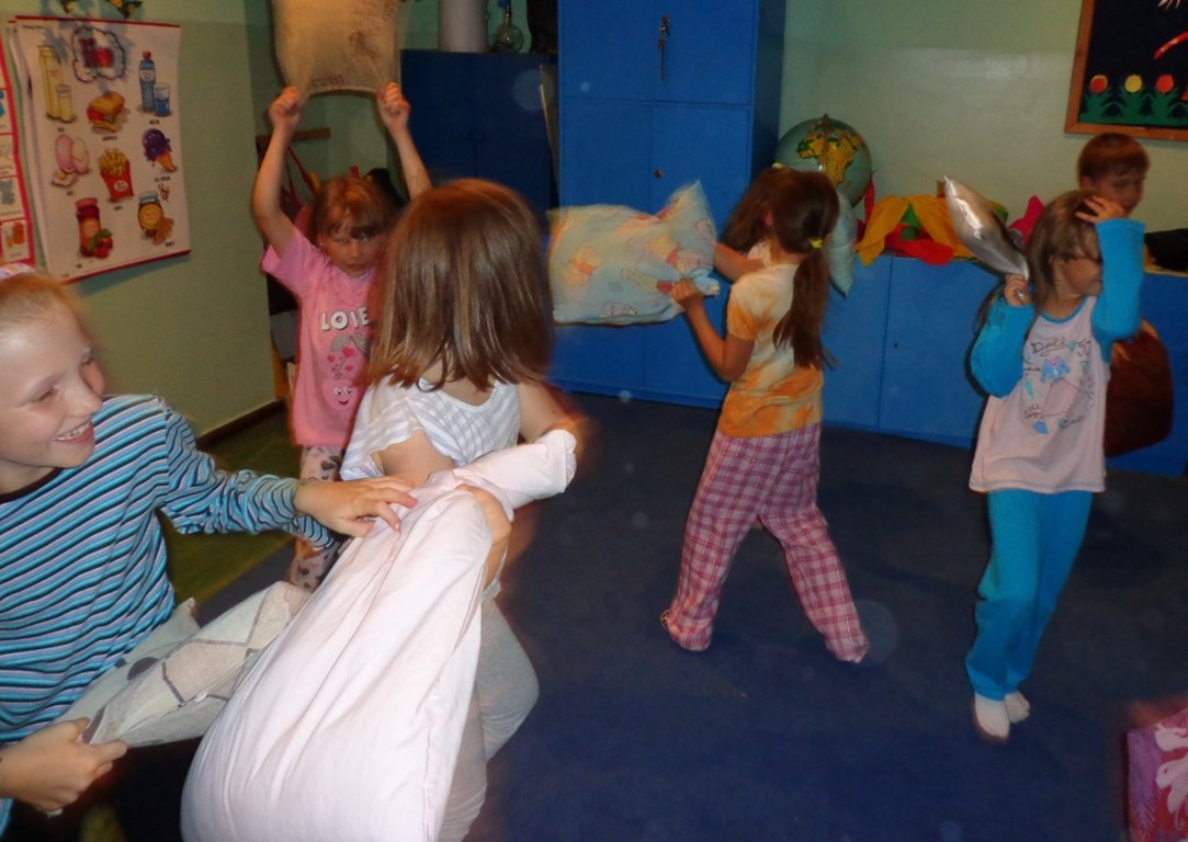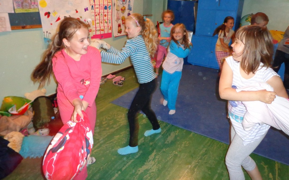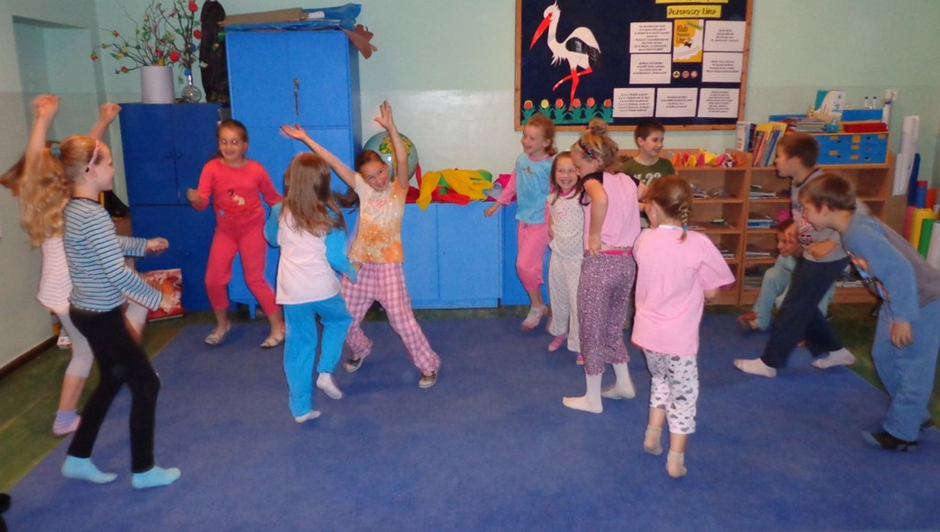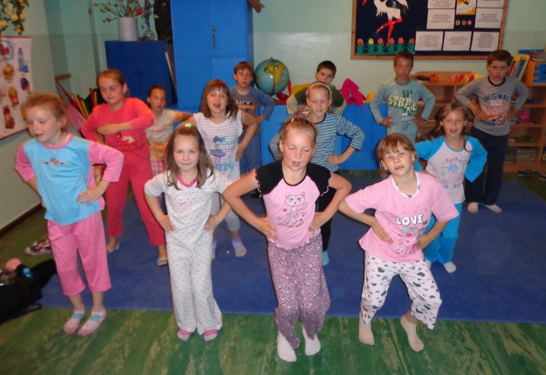 14 czerwca 2013r uczniowie klasy II ZSPiP w Pakosławiu wraz z wychowawczynią Małgorzatą Kucharską postanowili przenocować w szkole. Zanim jednak wszyscy położyli się spać, czekało na nich kilka niespodzianek. Dzieci podekscytowane z niecierpliwością czekały na to, co pani przygotowała na ten wyjątkowy wieczór. Najpierw dzieci wzięły udział w grach i zabawach na świeżym powietrzu. Następnie grupa rodziców przygotowała dla nich ognisko i pieczenie kiełbasek. Po zjedzeniu kolacji były gry i zabawy integracyjne klasie. Gdy na dworze słońce schowało się za horyzontem, przyszedł czas na „Pidżama Party”. Wszyscy uczniowie przebrani w piżamy świetnie bawili się przy skocznej muzyce. Na koniec w ruch poszły poduszki. I choć była zacięta „bitwa”, rannych nie było. Po całym dniu pełnym wrażeń dzieci przygotowały miejsca na nocleg i poszły spać. Rano, po wspólnie zjedzonym śniadaniu i posprzątaniu klasy, wszyscy rozeszli się do swoich domów.