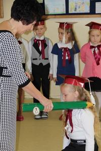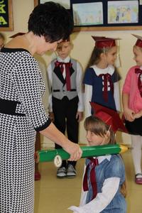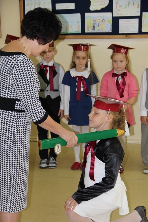 W dalszej części akademii pierwszoklasiści udowodnili, że są pełnoprawnymi uczniami naszej szkoły. W przedstawieniu zaprezentowali znajomość szkolnych zasad i obyczajów, oraz wielką chęć do zdobywania i poszerzania swojej wiedzy.Kulminacyjnym punktem uroczystości był akt ślubowania i pasowanie na ucznia. Pasowania dokonała pani dyrektor Mirosława Buczkowska, przykładając ołówek do lewego ramienia nowych uczniów.