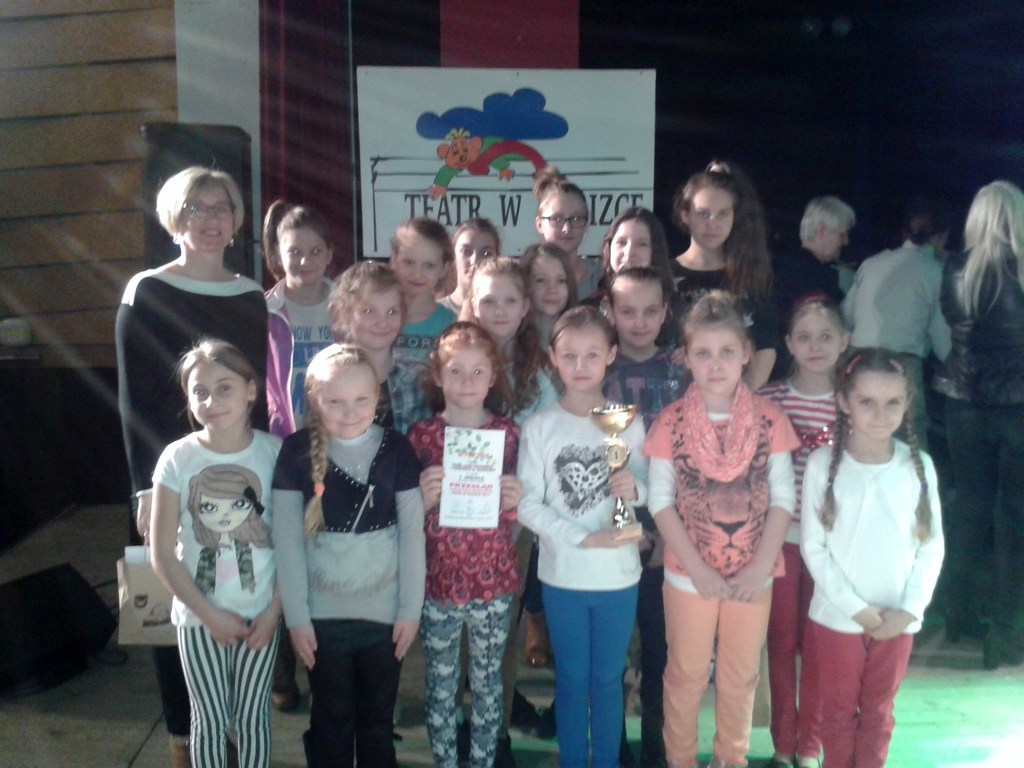 Nasi uczniowie jak i co roku również i tym razem wzięli udział w tej imprezie. Grupa w składzie: Wiktoria Łodyga, Weronika Wrembel, Paulina Robak, Kinga Ratajczak, Klaudia Niemyt, Klaudia Ambroziak, Amelia Kniat, Adrianna Kluge, Weronika Wyrwał, Julia Gierczyk, Maja Hadyniak, Amelia Szczepańska, Zuzanna Białek, Paulina Świderska, Julia Napierała, Otylia Hadyniak oraz Rozalia Ambroziak zaprezentowała się w przedstawieniu "Kot w butach". Cytując przewodniczącą jury panią Renatę Knop nasz spektakl powalił ich na kolana. W kategorii dzieci starszych zajęliśmy I miejsce.