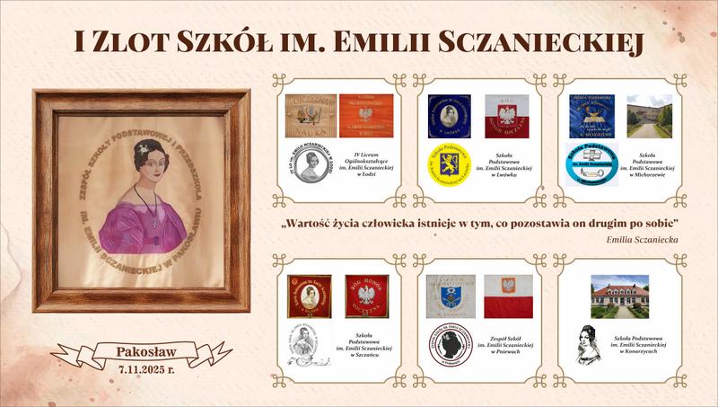 07 listopada 2025 Aktualności I Zlot Szkół imienia Emilii Sczanieckiej 7 listopada 2025 roku w Pakosławiu odbył się I Zlot Szkół imienia Emilii Sczanieckiej. W spotkaniu wzięli udział uczniowie, nauczyciele i dyrektorzy wszystkich placówek... Czytaj więcej